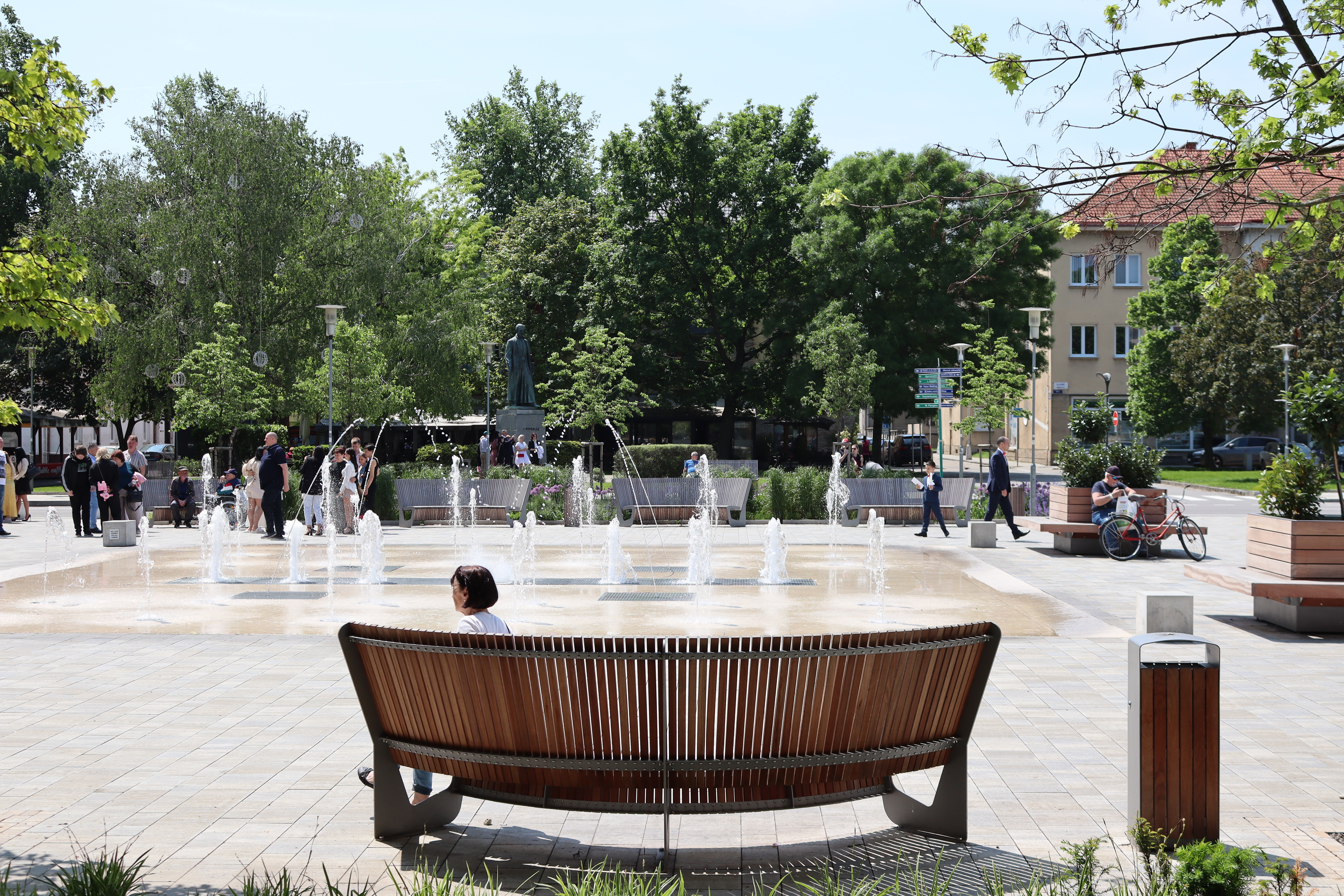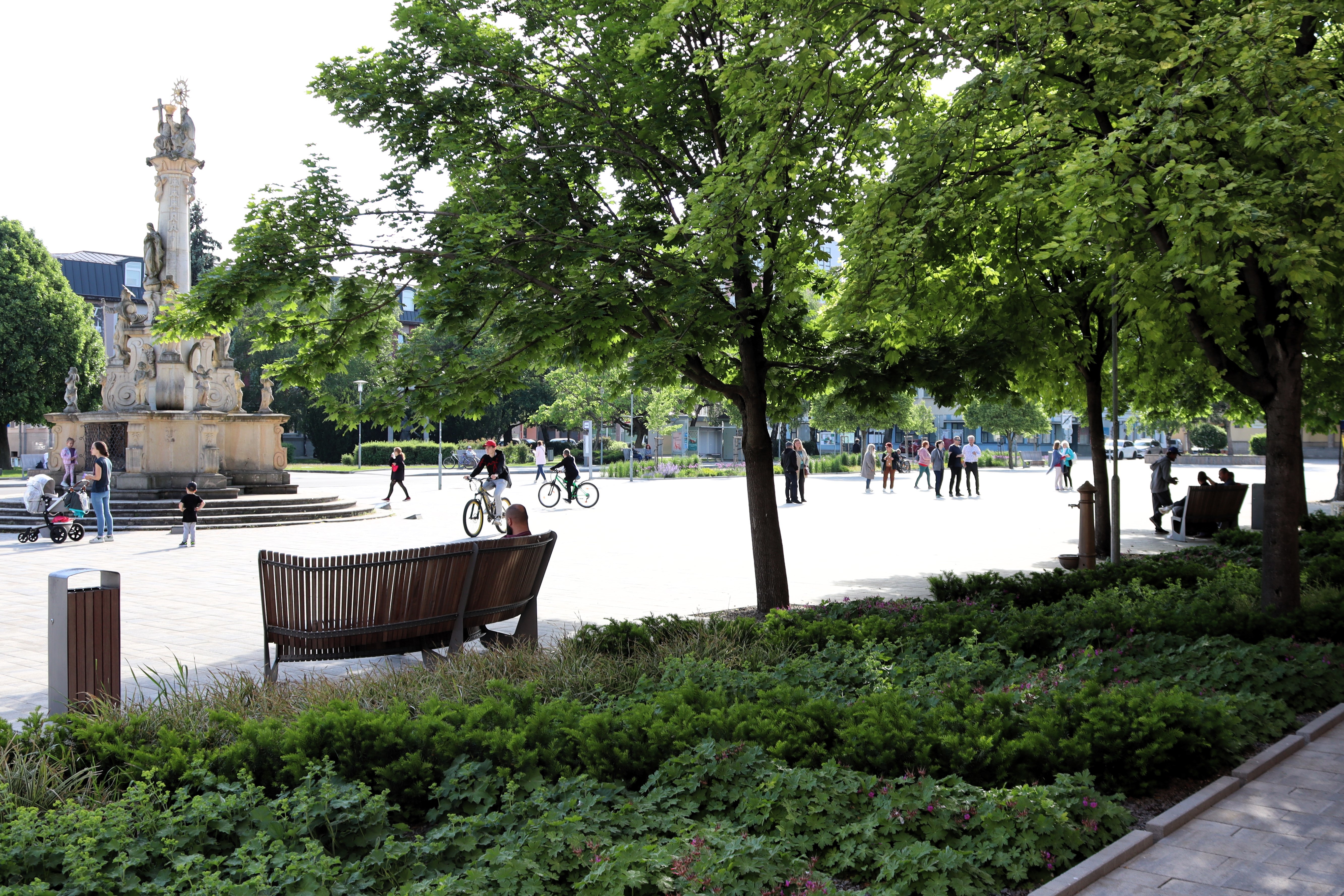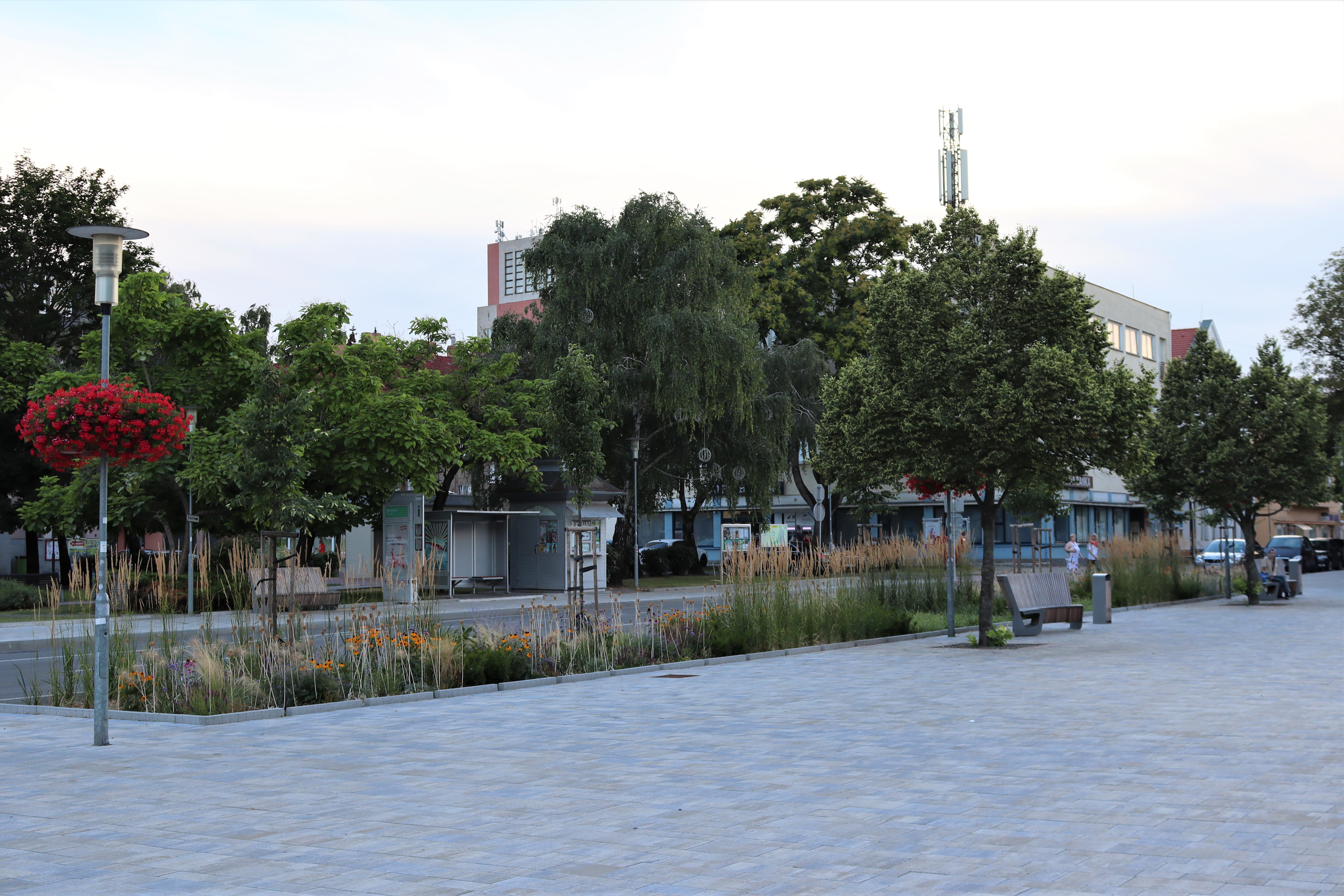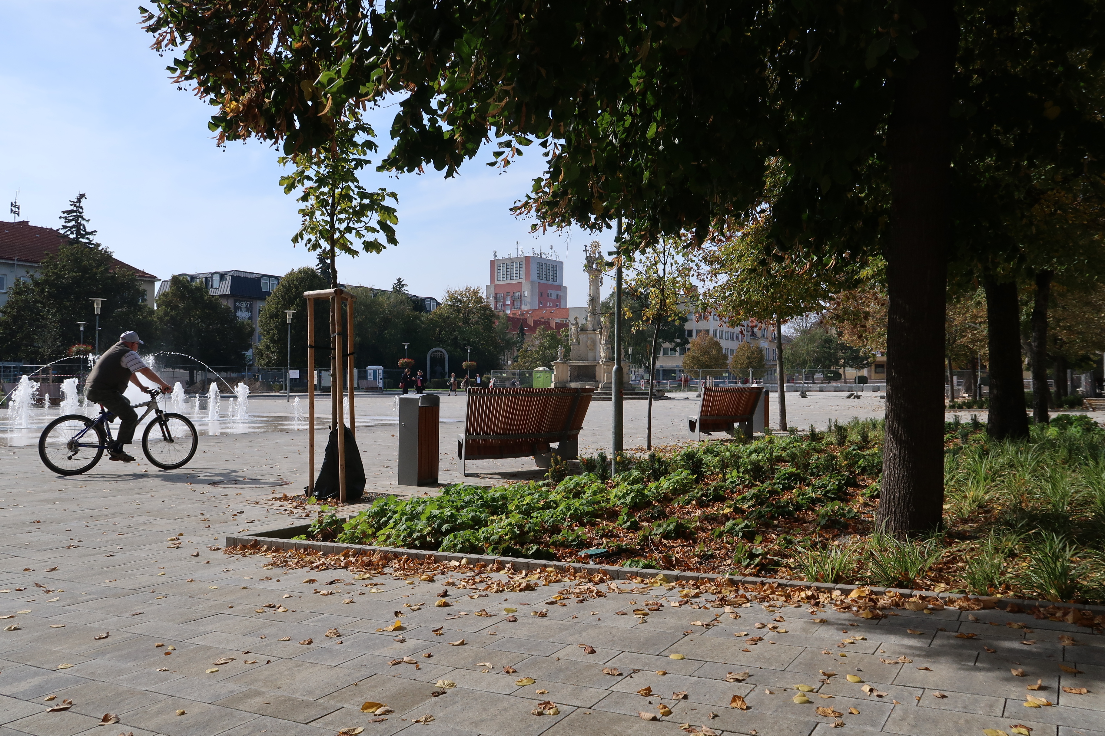 Obnovené námestie v prvom roku po realizácii (Foto: Attila Tóth, VII 2023)