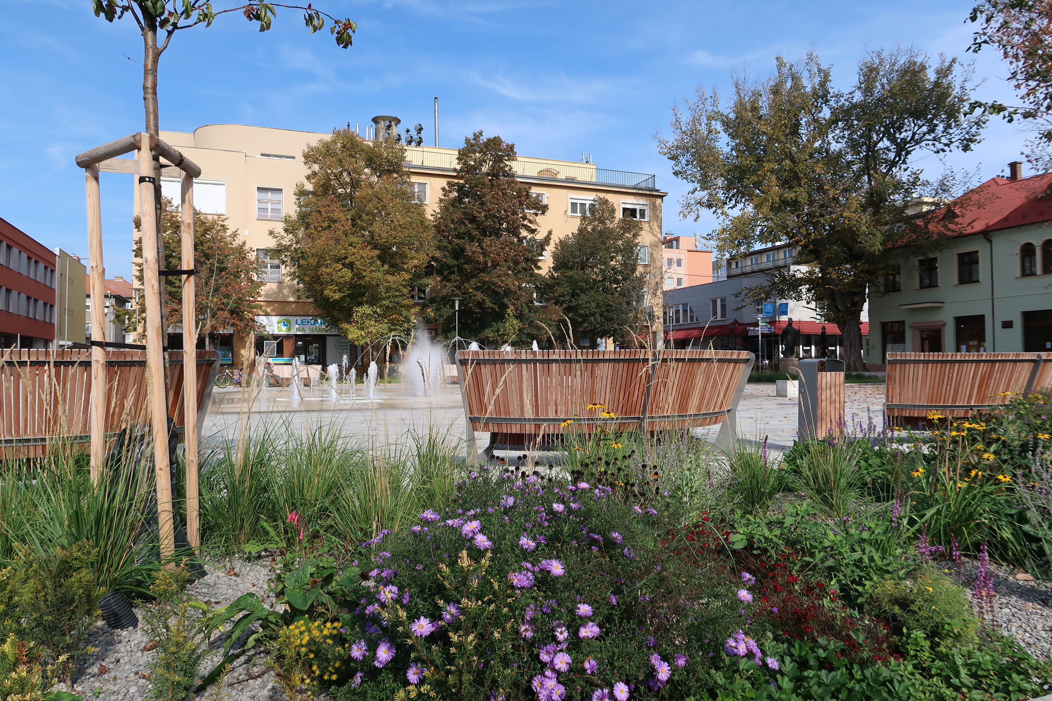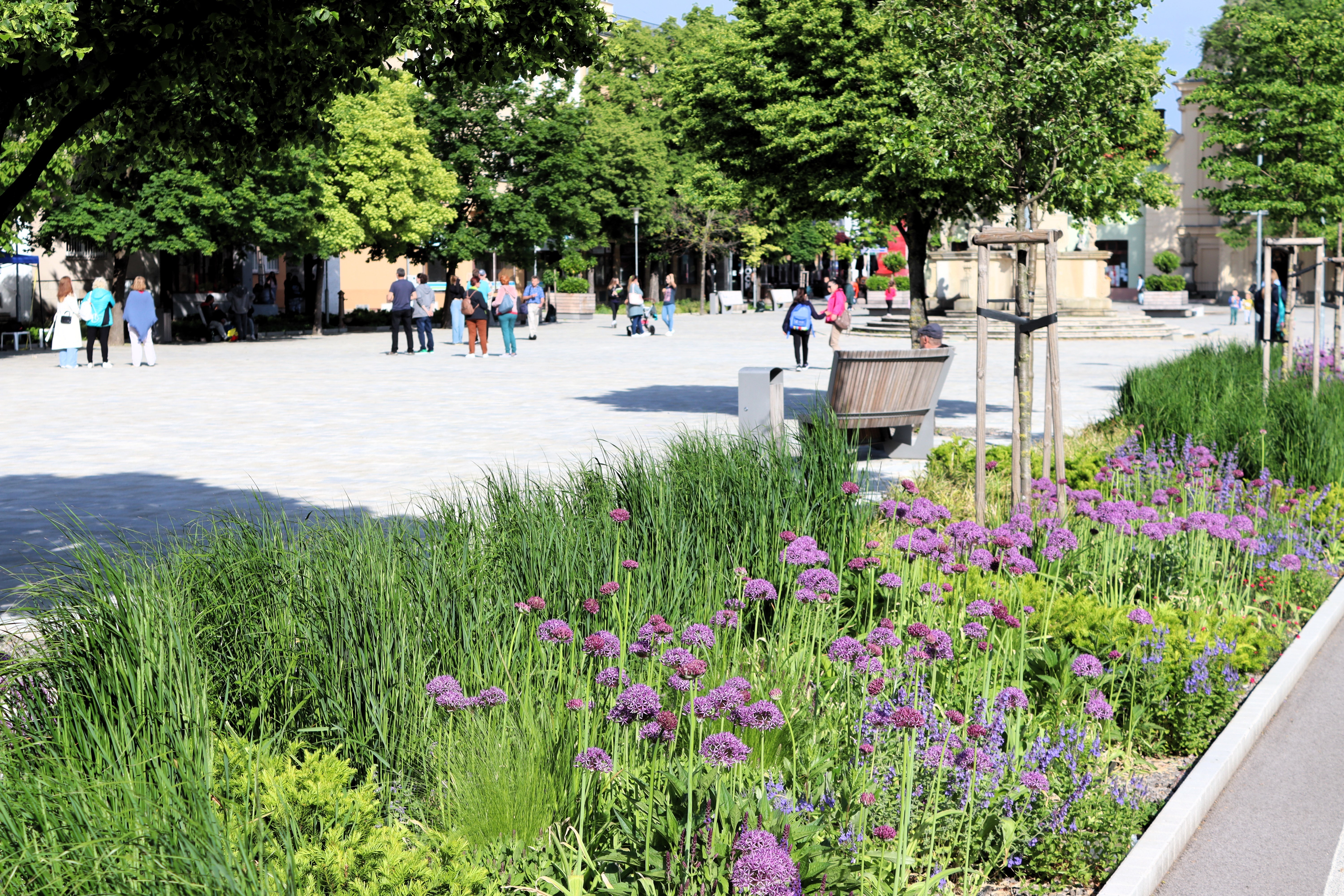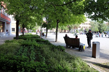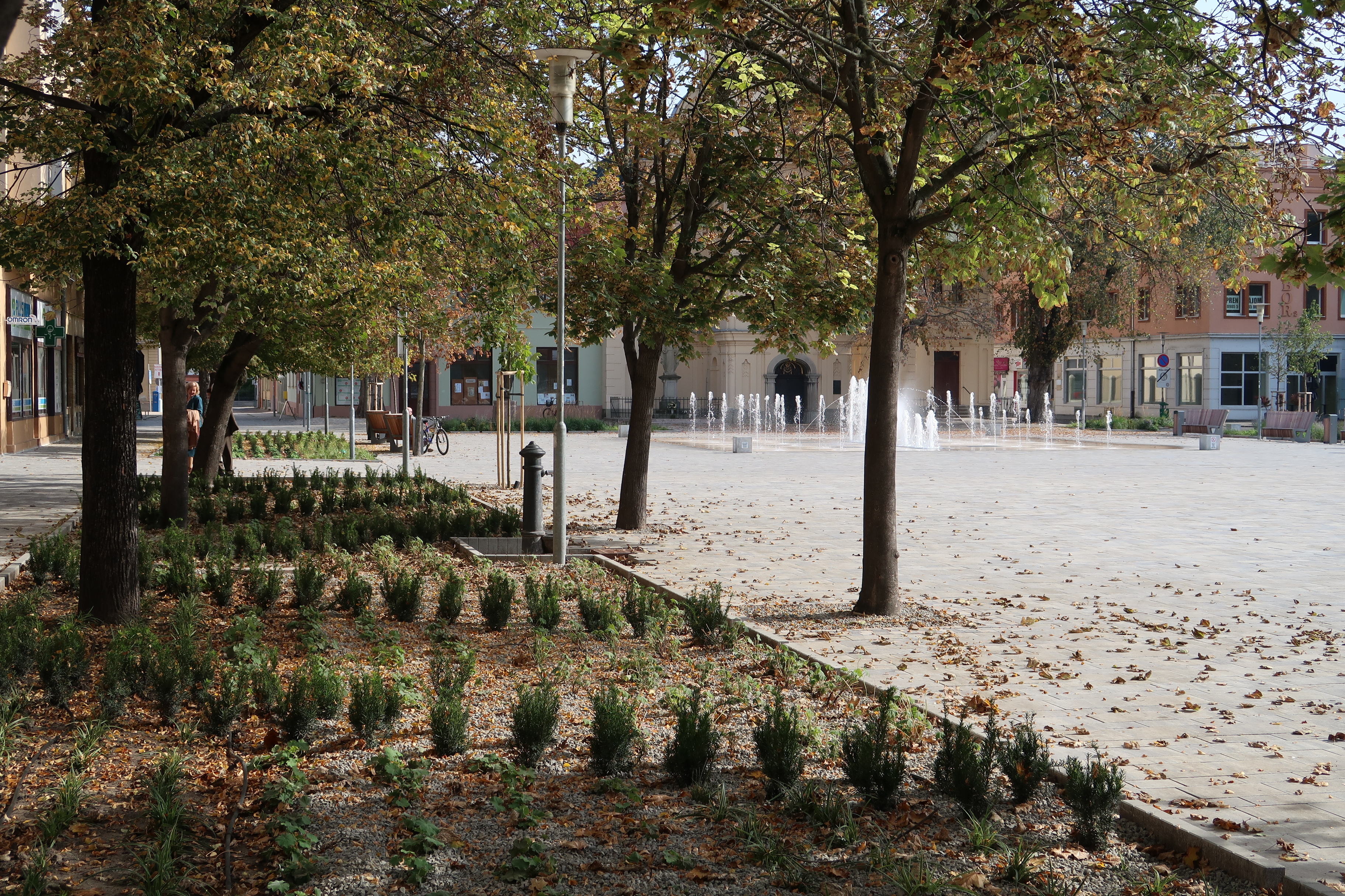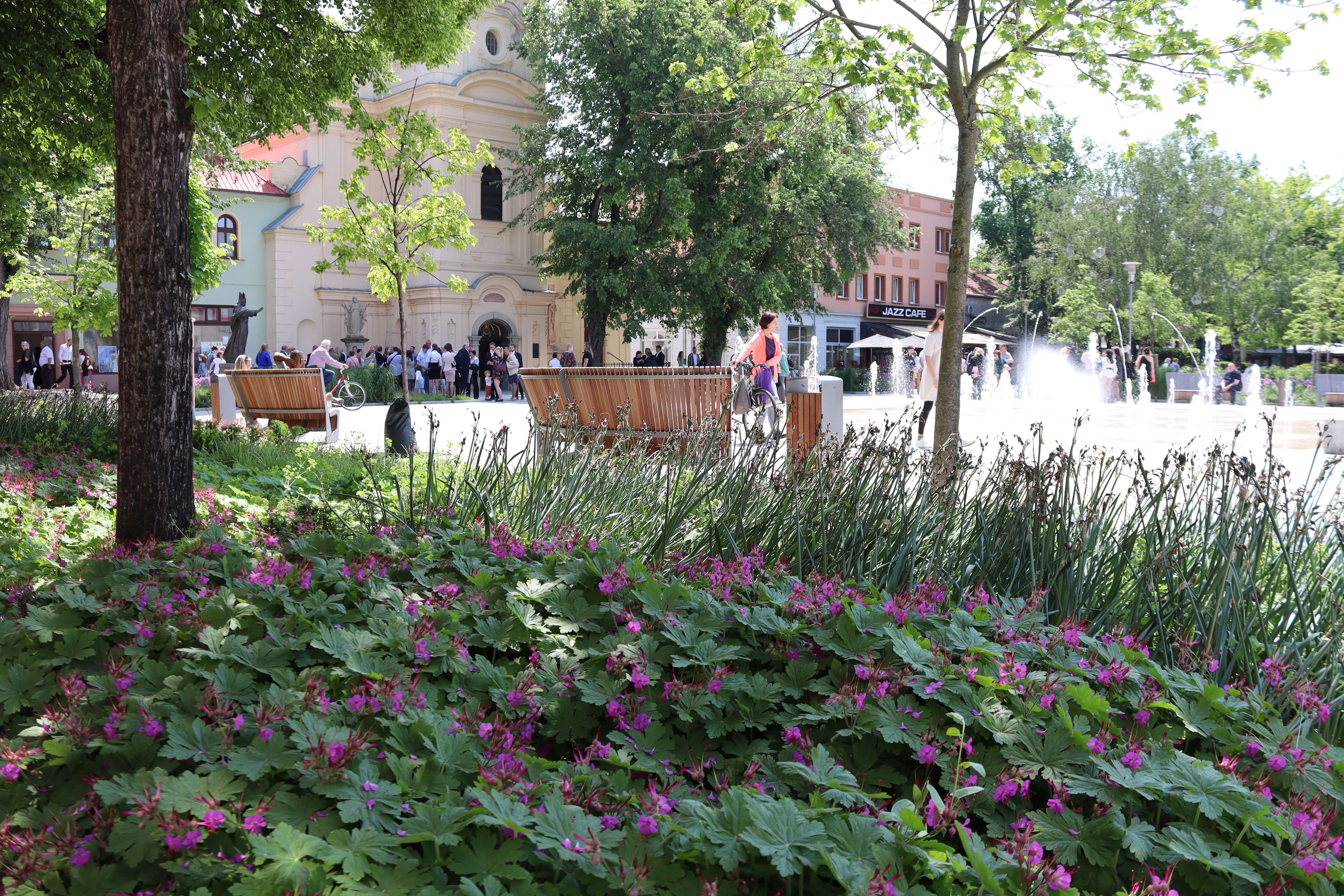 Obnovené námestie v prvom roku po realizácii (Foto: Attila Tóth, VII 2023)