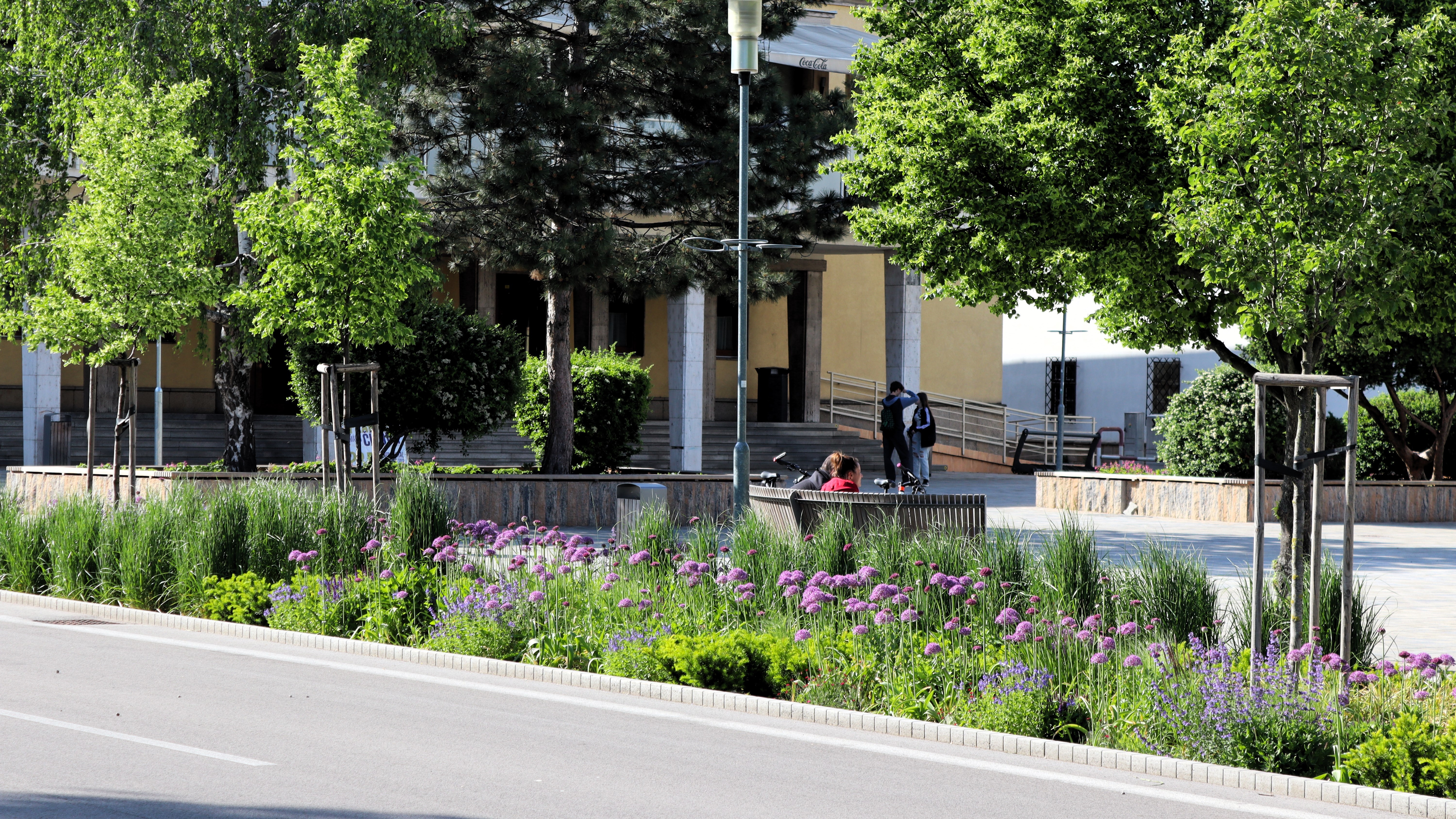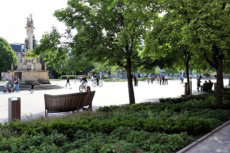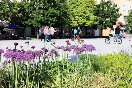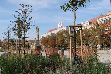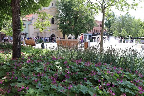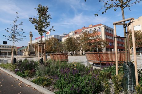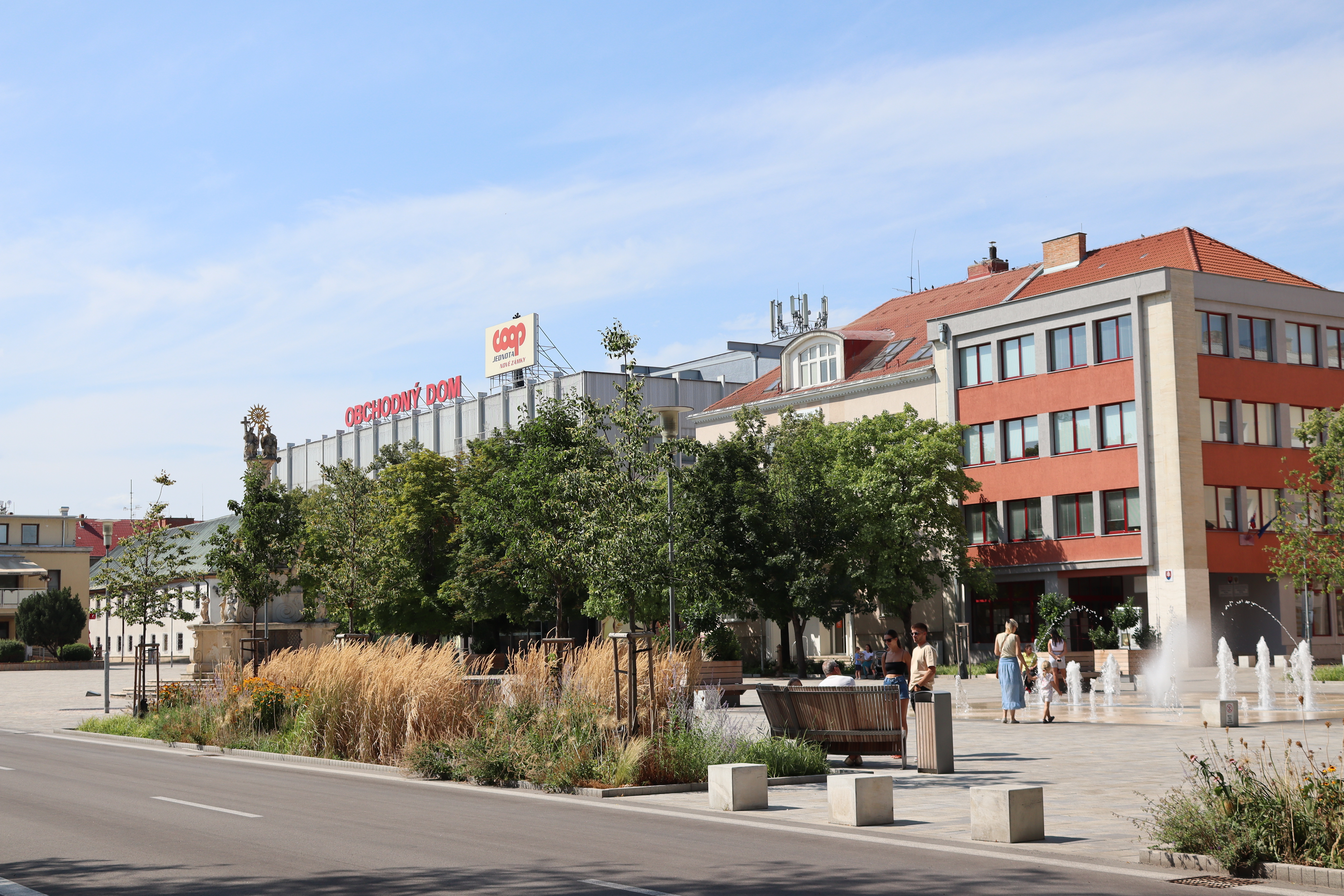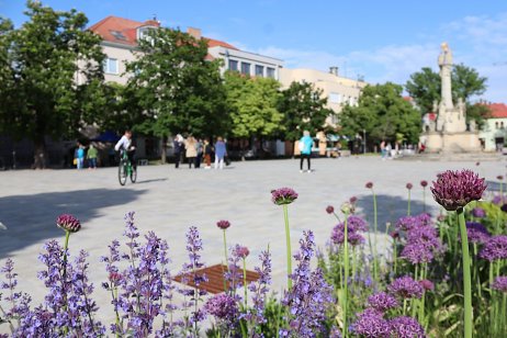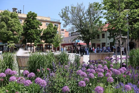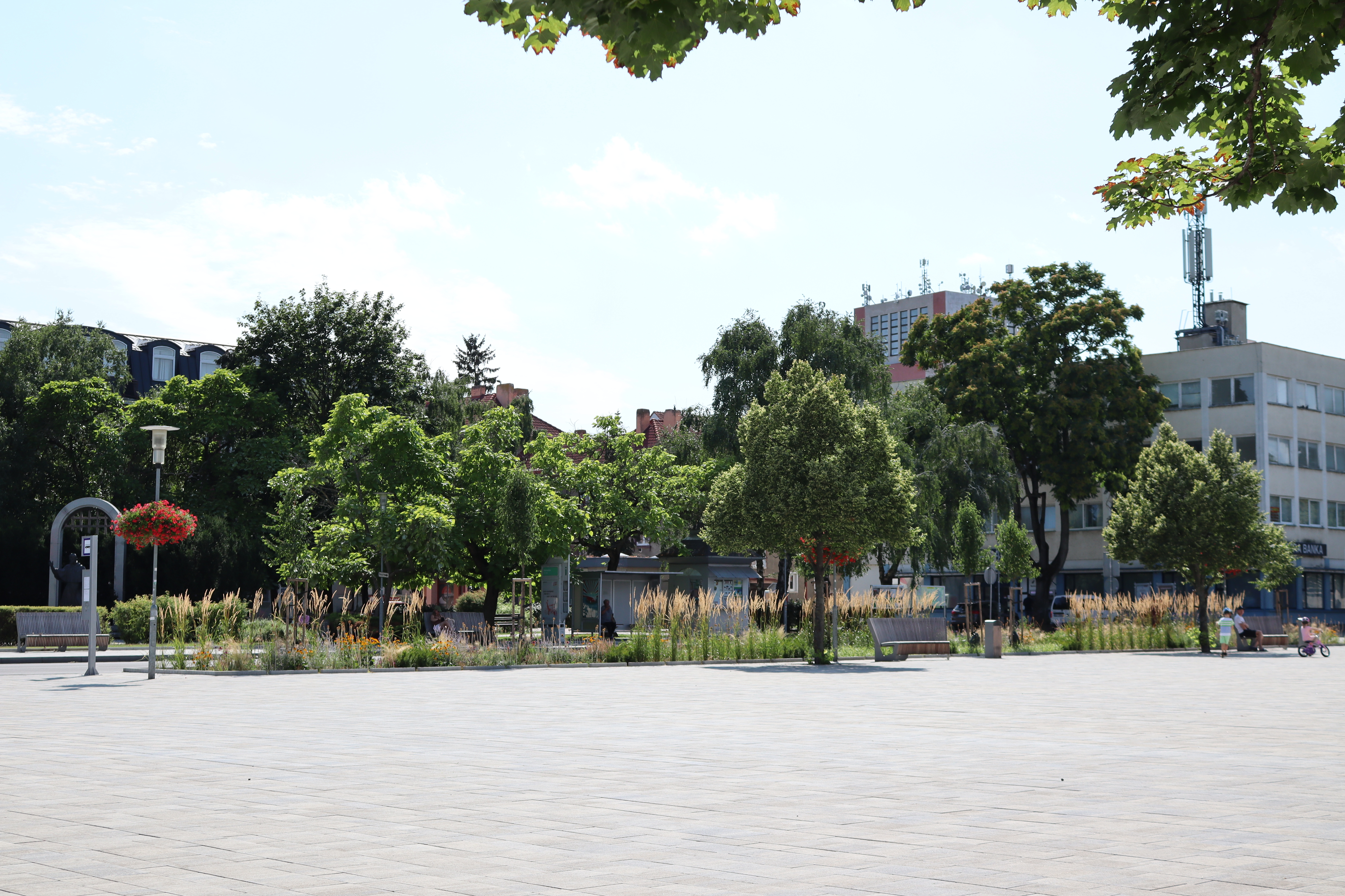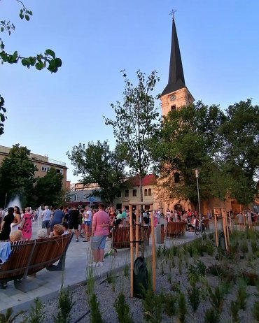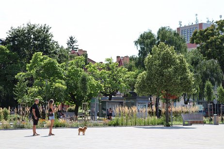 Obnovené námestie v prvom roku po realizácii (Foto: Attila Tóth, VII 2023)