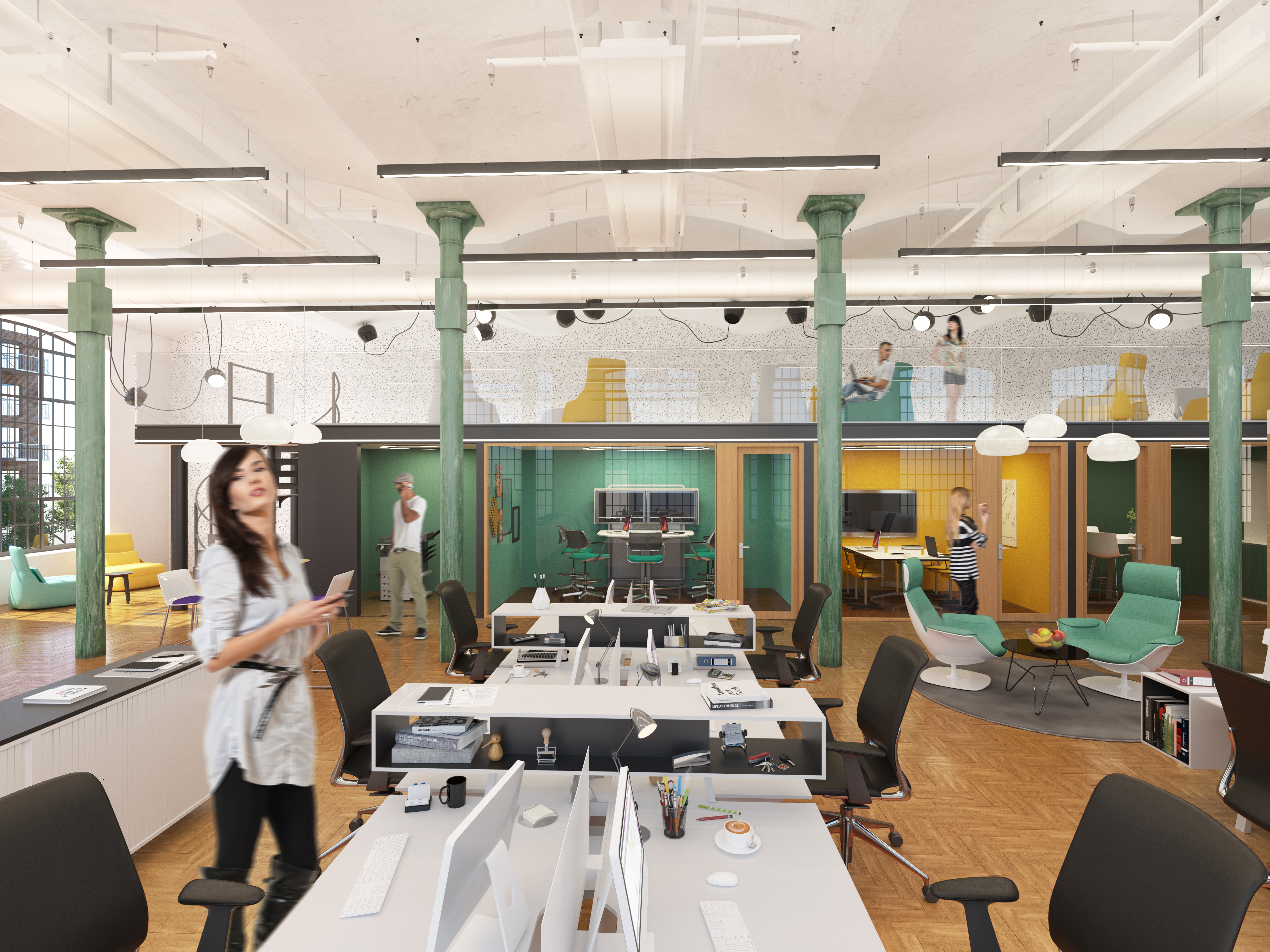 Projekt obnovy vyzdvihuje hodnoty a potenciál objektu Pradiarne otvorením priestoru a priznaním industriálnych prvkov v interiéri. Nadštandardná svetlá výška viac ako 4m umožňuje vytvorenie galériových priestorov. Subtílne originálne liatinové stĺpy umocňujú pocit veľkorysého priestoru.
