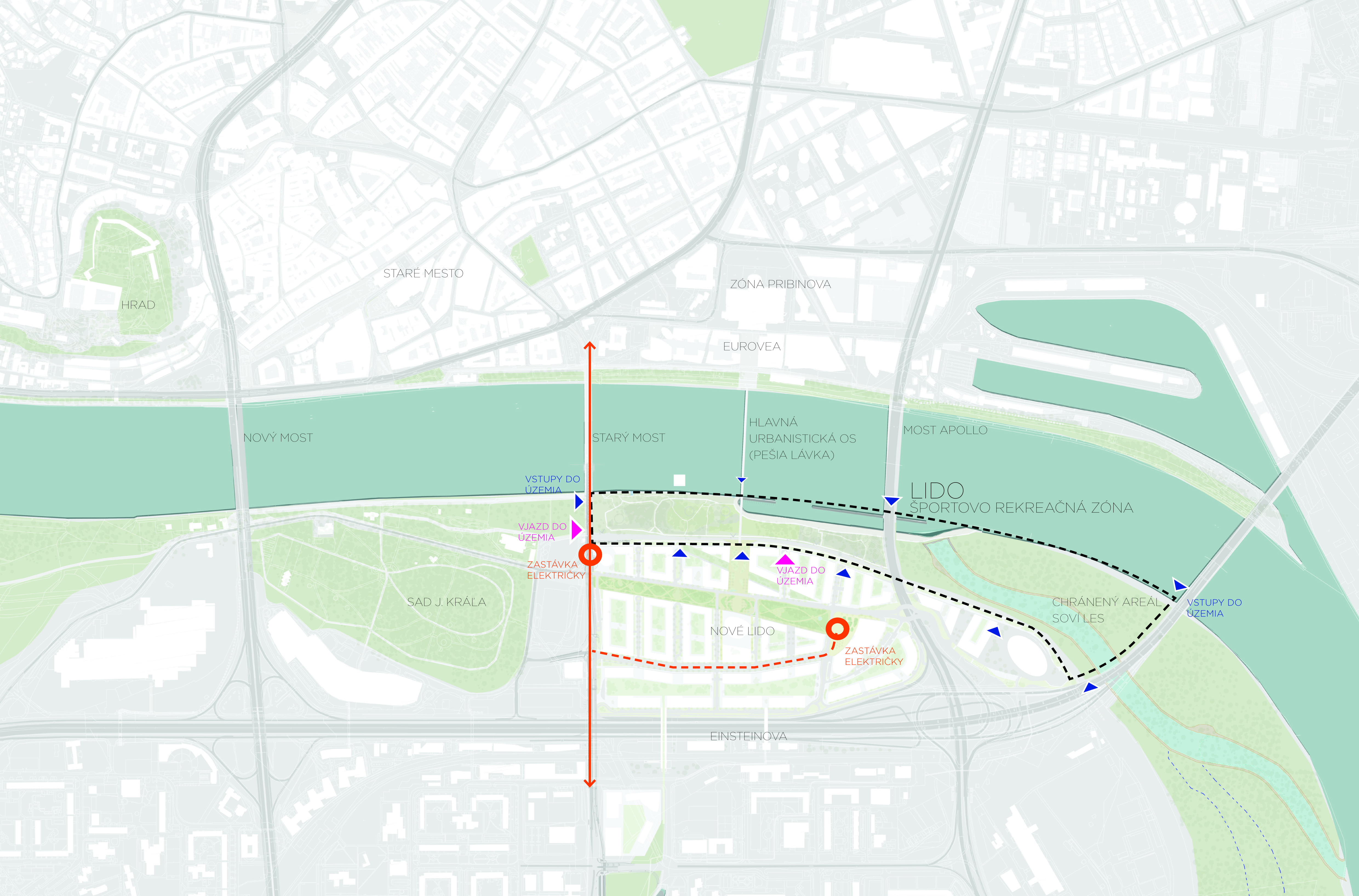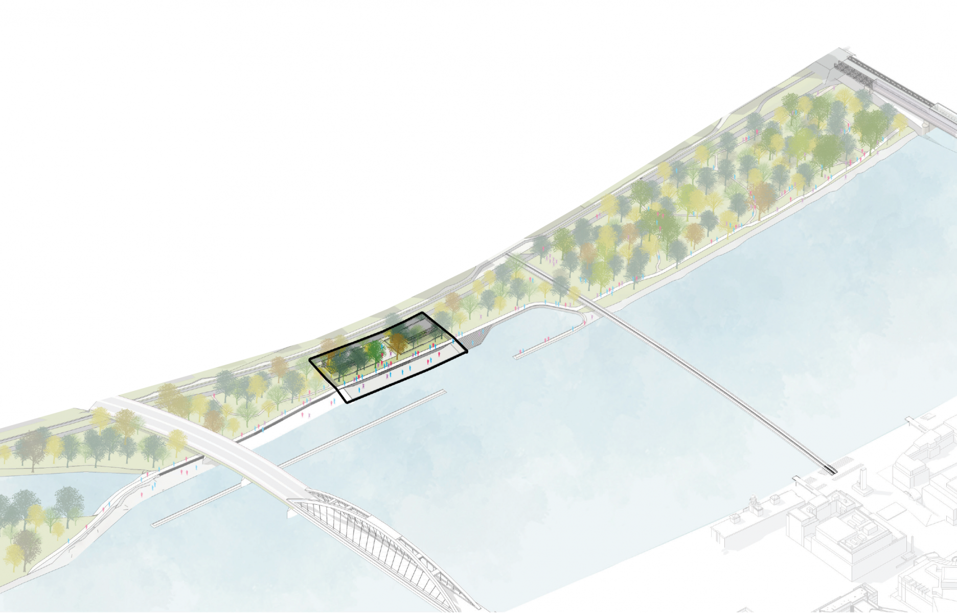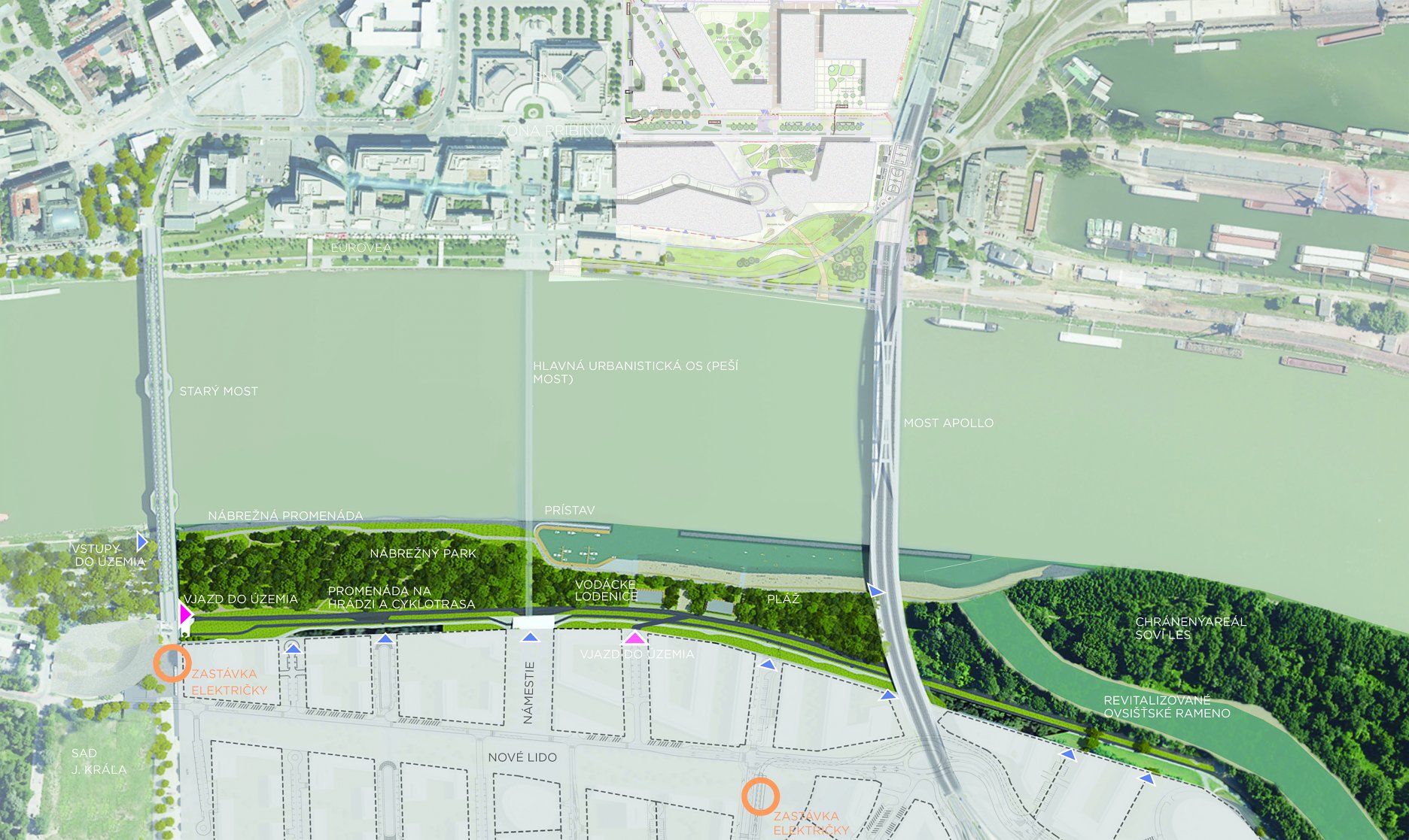 Tento koncept nábrežia nadväzuje na predošlú štúdiu okolitého územia - Urbanistickú štúdiu (UŠ) zóny časti celomestského centra CMC – Petržalka, v ktorej bolo nábrežie navrhnuté ako športovo-rekreačná zóna pre širokú verejnosť.