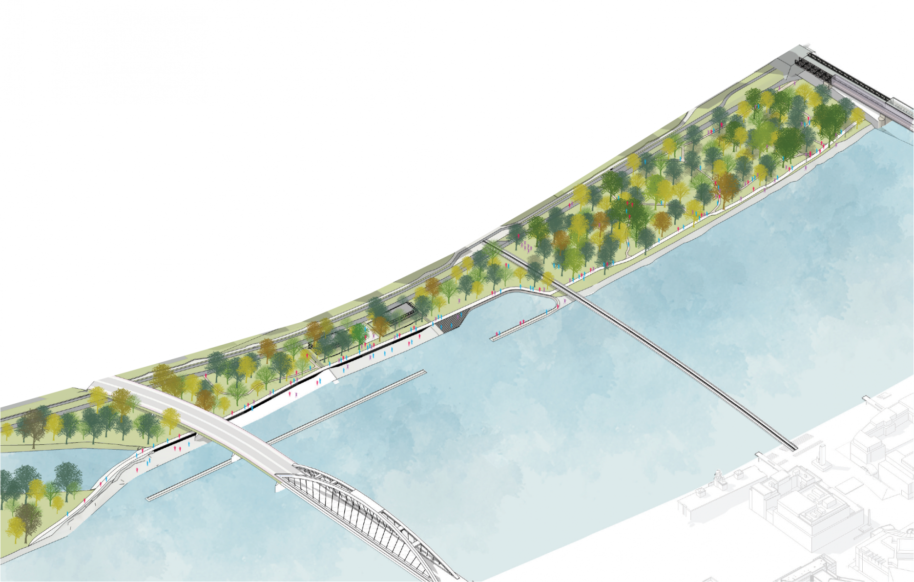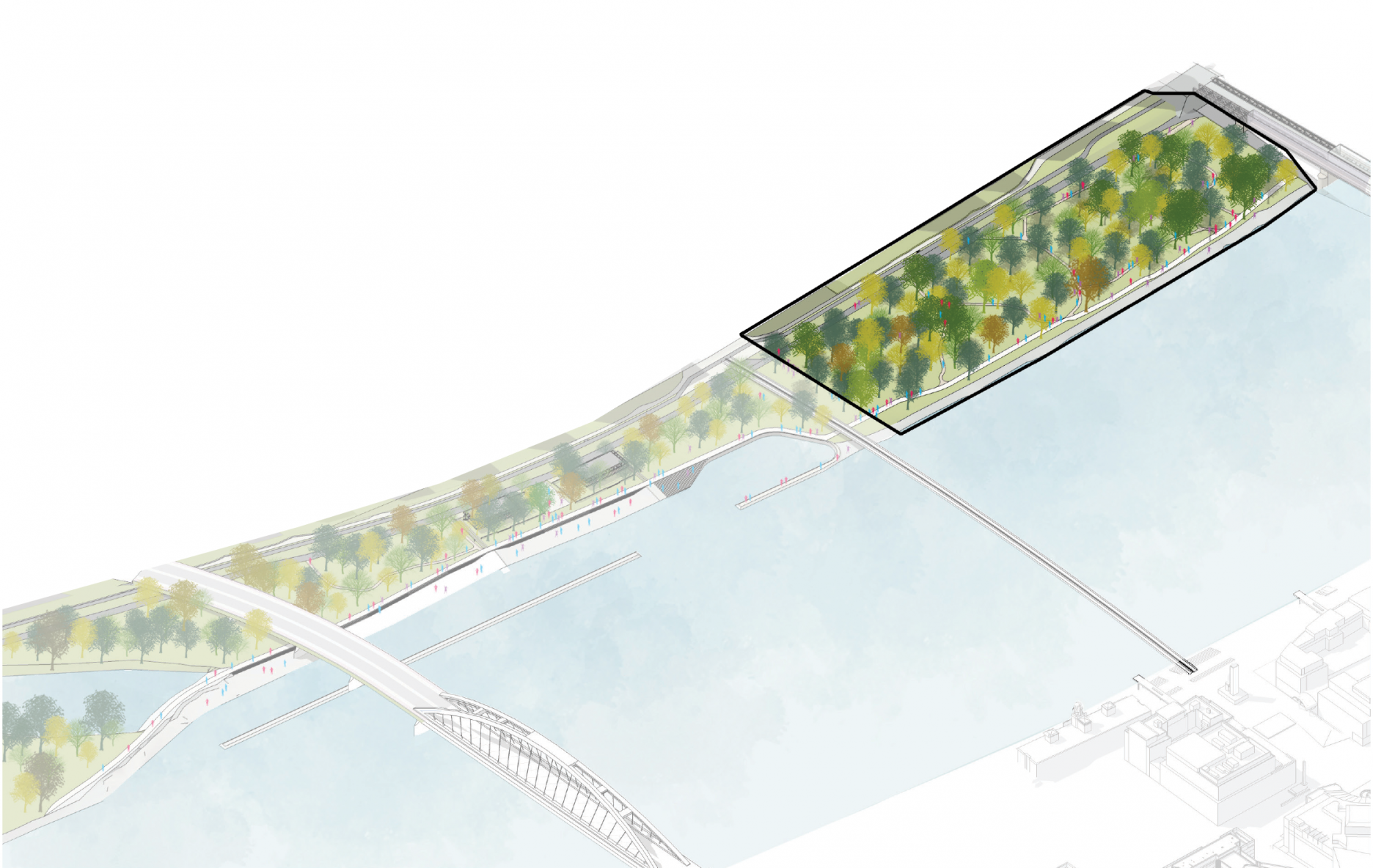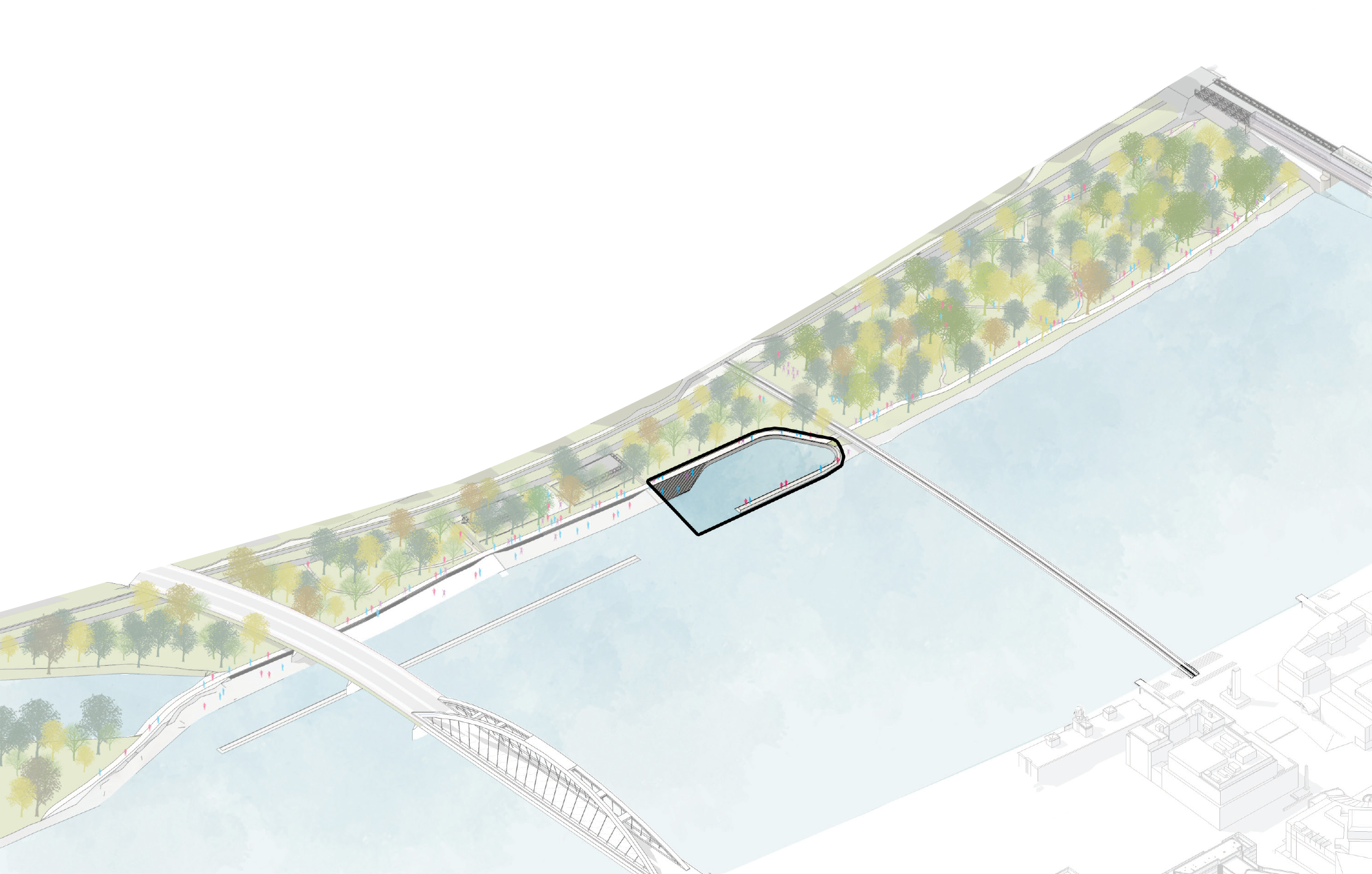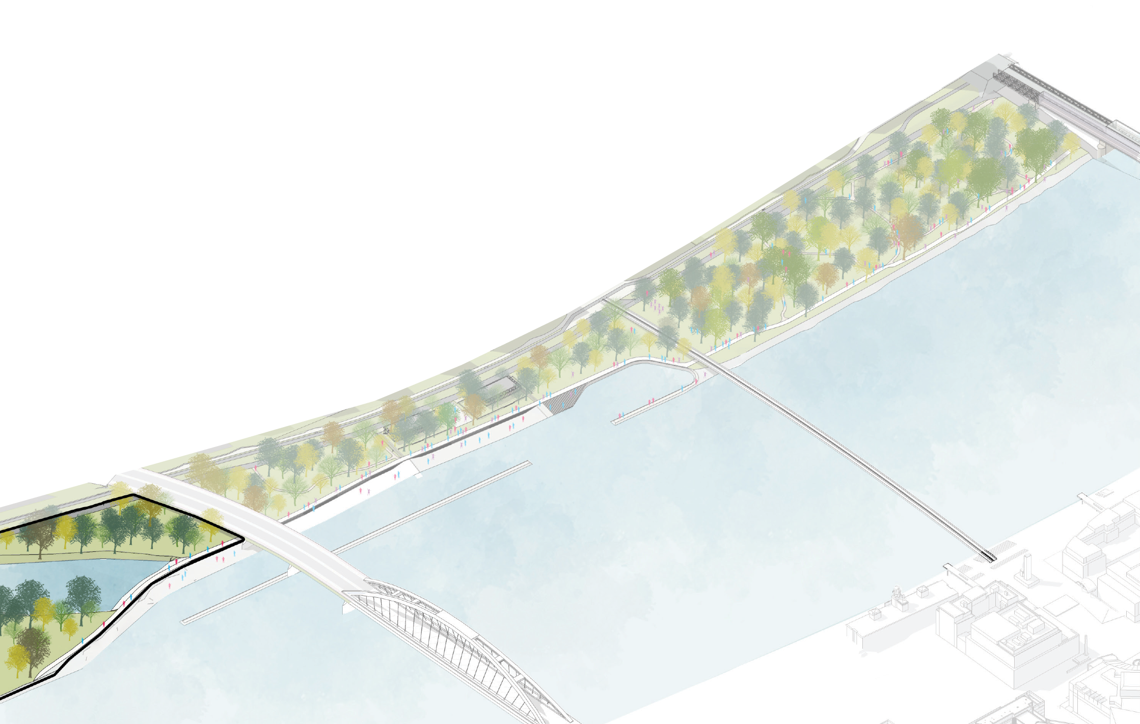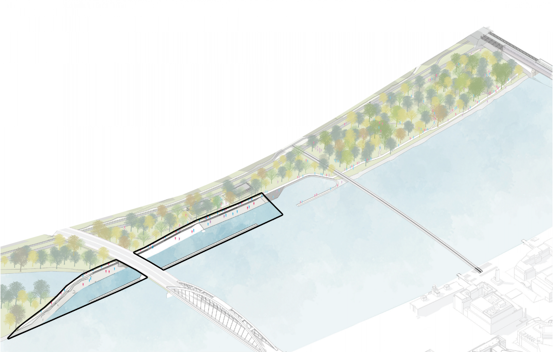 Pri Starom moste navrhujú iniciatívy neformálny prírodný park, ktorý má slúžiť na šport, oddych a prechádzky. Okrem toho navrhujú vznik súvislej nábrežnej promenády. Ďalšia promenáda pôjde aj po hrádzi, čím sa územie napojí na chodníky a cyklotrasy v okolí.
