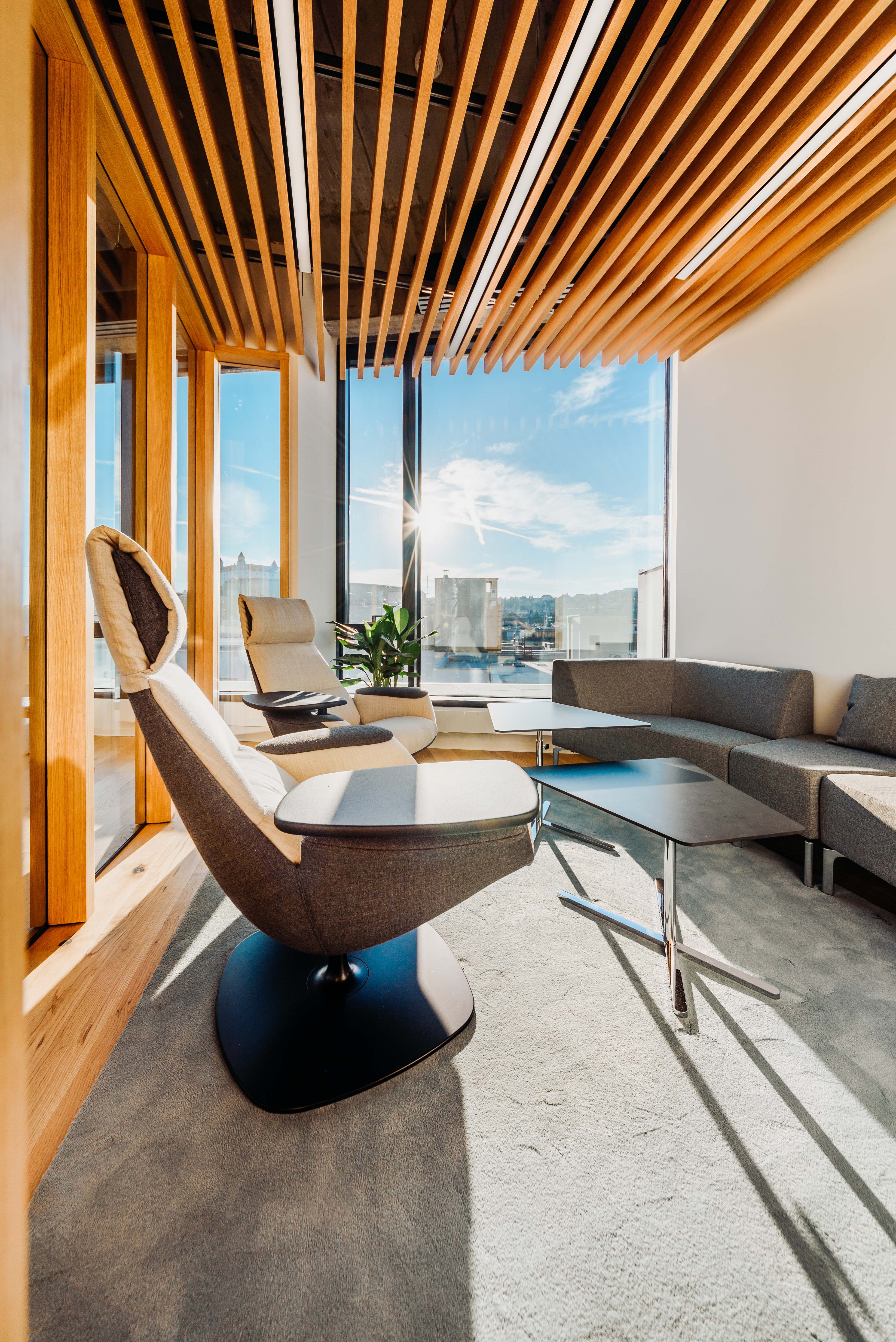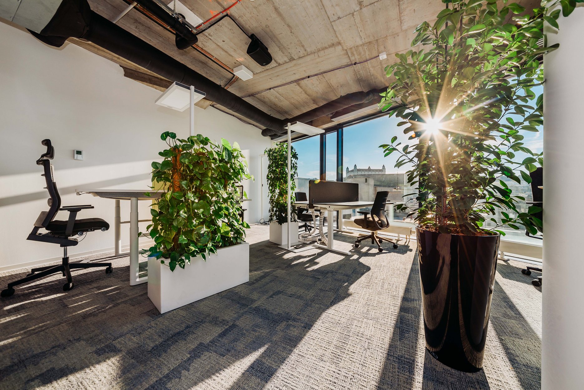 Ak úroveň kyslíku v miestnosti klesne, zamestnanci sú unavení a menej sústredení. Vtedy treba vyvetrať alebo zmeniť teplotu prostredia. Pri zadaní klient prízvukoval aby sme venovali veľkú pozornosť zdraviu a wellness na pracovisku. Priestory sme doplnili množstvom zelene, pretože práve ona okrem toho, že pohlcuje CO2 aj produkuje kyslík. Navyše má aj príjemný estetický charakter a pôsobí upokojujúco. Kancelárie CBRE majú aj priestor na rýchly odpočinok zamestnancov, kde si môžu unavení ľudia krátko zdriemnuť.