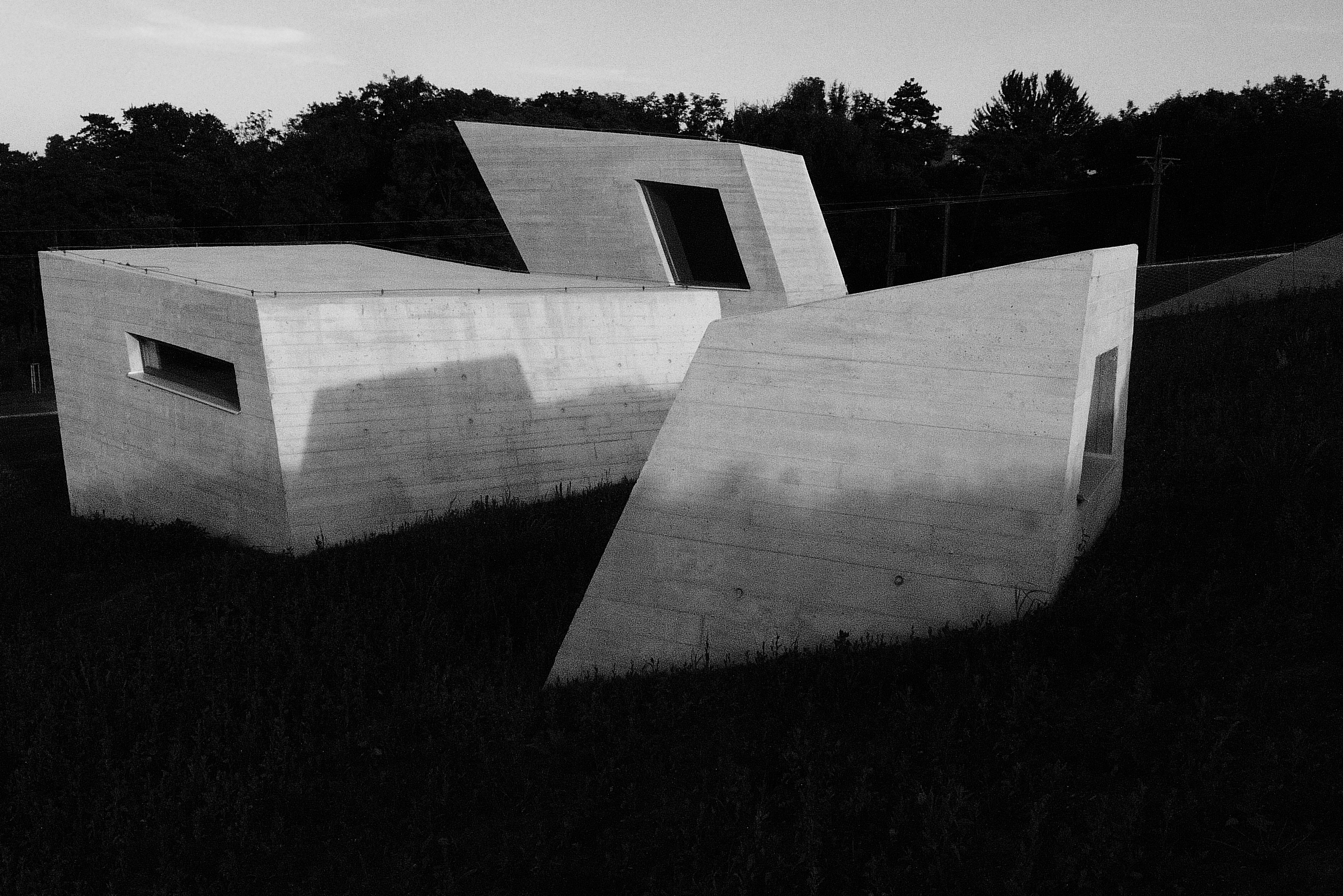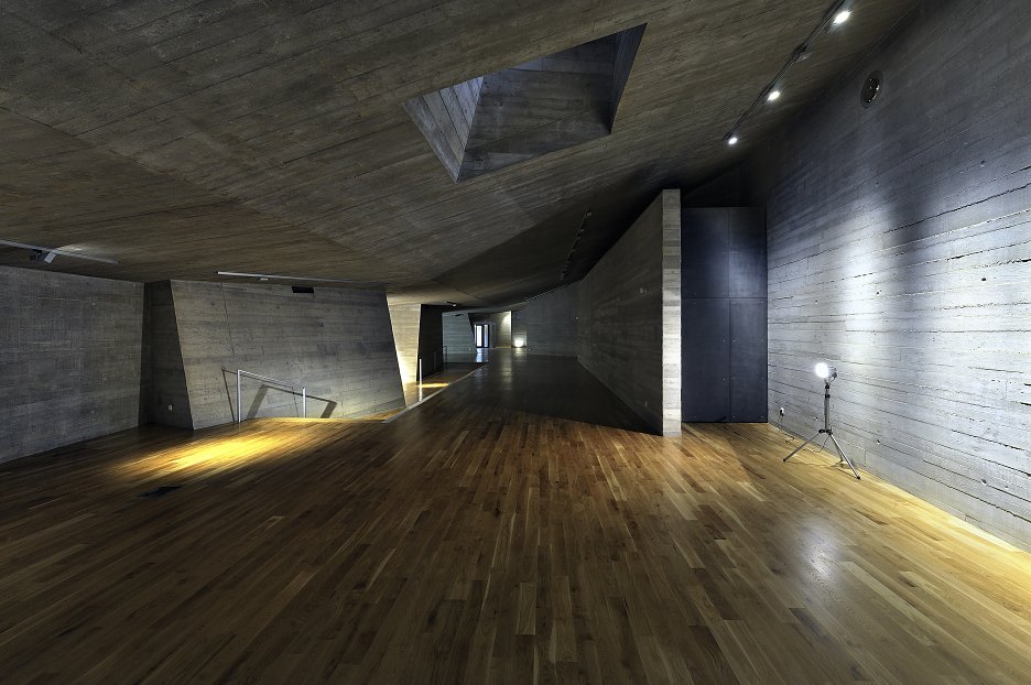 V rovine motívu je stavba spojená s plasticky tvarovanými jaskynnými priestormi. Prakticky celý výstavný priestor je skrytý v terénnej vlne. Do výšky sa týčia iba veže, ktorými sa do podzemia dostáva svetlo.
