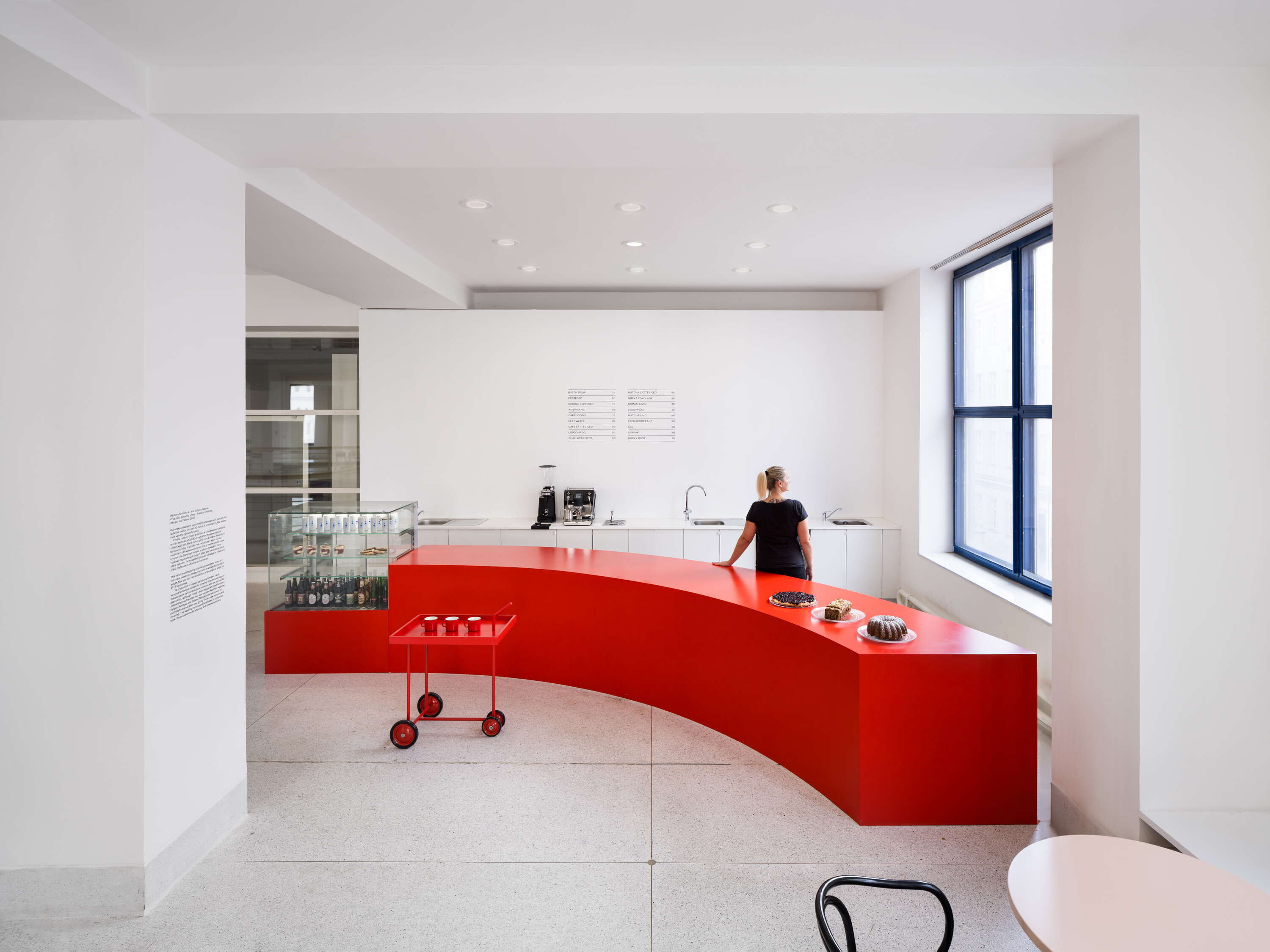 Mezi našimi projekty si tento nese několik roztomilých prvenství. Kromě asi největšího podílu využití odpadního materiálu, je to také realizace natolik úspěšná, že se musela krátce po uvedení do provozu zavřít. Oblíbilo si ji a chodilo tam totiž příliš mnoho lidí. Bezpečnostní služba nám architektům a také kurátorům, grafikům a dalším zapojeným umělcům vysvětlila, jak jsme kolektivně nezodpovědně pochybili, když jsme vysokou návštěvností ve Veletržním paláci neúměrně "zvýšili riziko". Celé patro se proto muselo uzavřít a otevřeno bylo napodruhé po dlouhých diskuzích a přijetí neviditelných "organizačních" opatření. Dalším prvenstvím je naše nejmenší dočasné stavební povolení, které zde bylo nutné pořídit kvůli připojení trubky o průměru pěti centimetrů do kanalizační stoupačky. Holt, s kulturními památkami nejsou žerty. A posledním prvenstvím je pravděpodobně minimalizace realizované "architektury" v poměru k ambicióznímu "stavebnímu programu", který nevychází jen z rozpočtových omezení. Záměrem bylo naplnit tuto část skeletu Veletržního paláce obsahem, kterému dává smysl jen a pouze přítomnost návštěvnic a návštěvníků, jejich pospolitost a svobodné počínání. My tu jen zlehka prostorově inspirujeme.