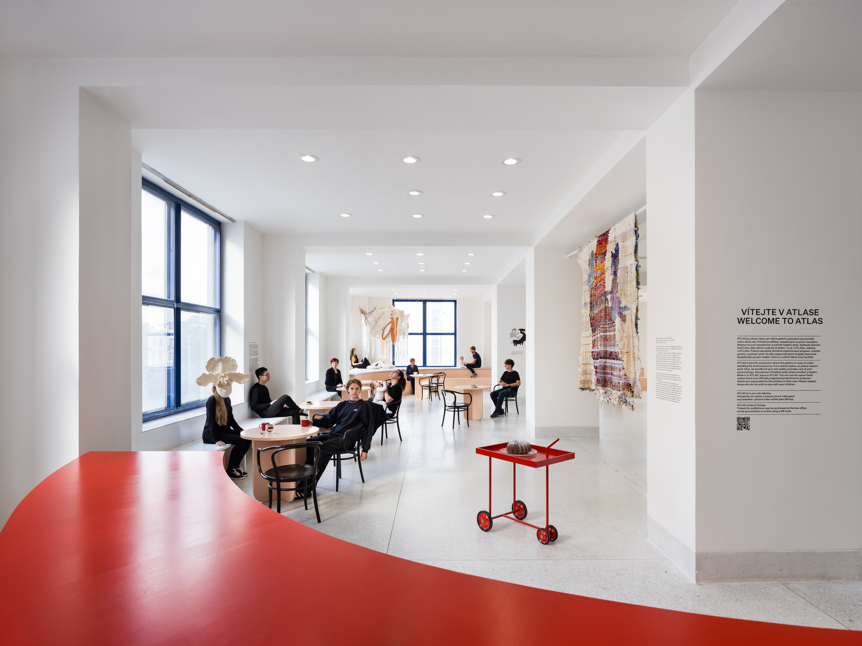 ATLAS je v podstatě veliký městský obývací pokoj, kde i vy můžete být na chvíli doma. Kultivovaně posedět, ale také se líně natáhnout na kanapi, počíst si u knihovny, zasněně koukat z okna, trénovat na hudební nástroj, popracovat na notebooku, zaseknout se v online vesmíru, hrát si, kojit, pokecat s návštěvou, dát kafíčko a v neposlední řadě se nenásilně potěšit uměním, na které smíte i beztrestně sáhnout, pokud máte potřebu. Dokonce i ta televize tu je, ale spíše ke vzdělávání. A v koutě svádějícím ke hraní se povaluje masivní stavebnice, protože všichni jsme něčí děti a nezanedbatelná část z nás i rodiče. A stejně jako doma - i zde po sobě poklízíme sami: vrátím knížku do knihovny a zmačkaný papír odnesu do koše.
