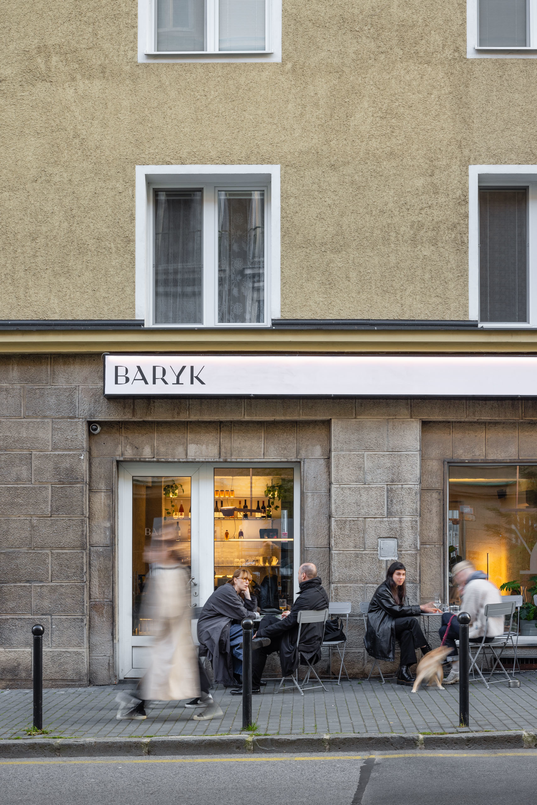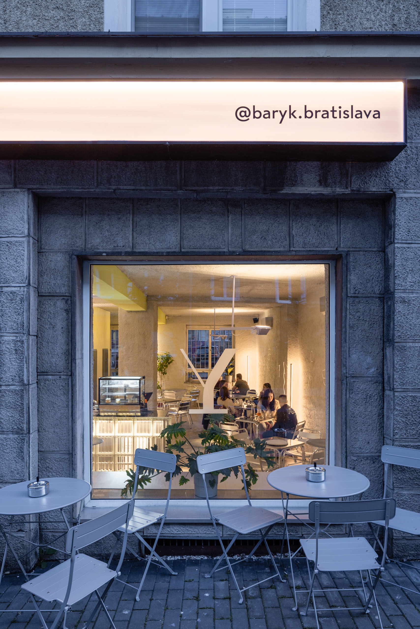 Kaviareň Baryk, situovaná do Bratislavskej štvrte známej aj pod názvom Radiohood kvôli blízkosti budovy Slovenského rozhlasu, sa nachádza na prízemí bytového domu v kompaktnej mestskej zástavbe. Zadaním bolo vytvoriť priestor pre lokálnych zákazníkov - štamgastov, obyvateľov tejto štvrte a zároveň sa zamerať na širokú klientelu. Od detí, ktorým je dedikovaný detský kútik, až po neskoré návštevy po práci.