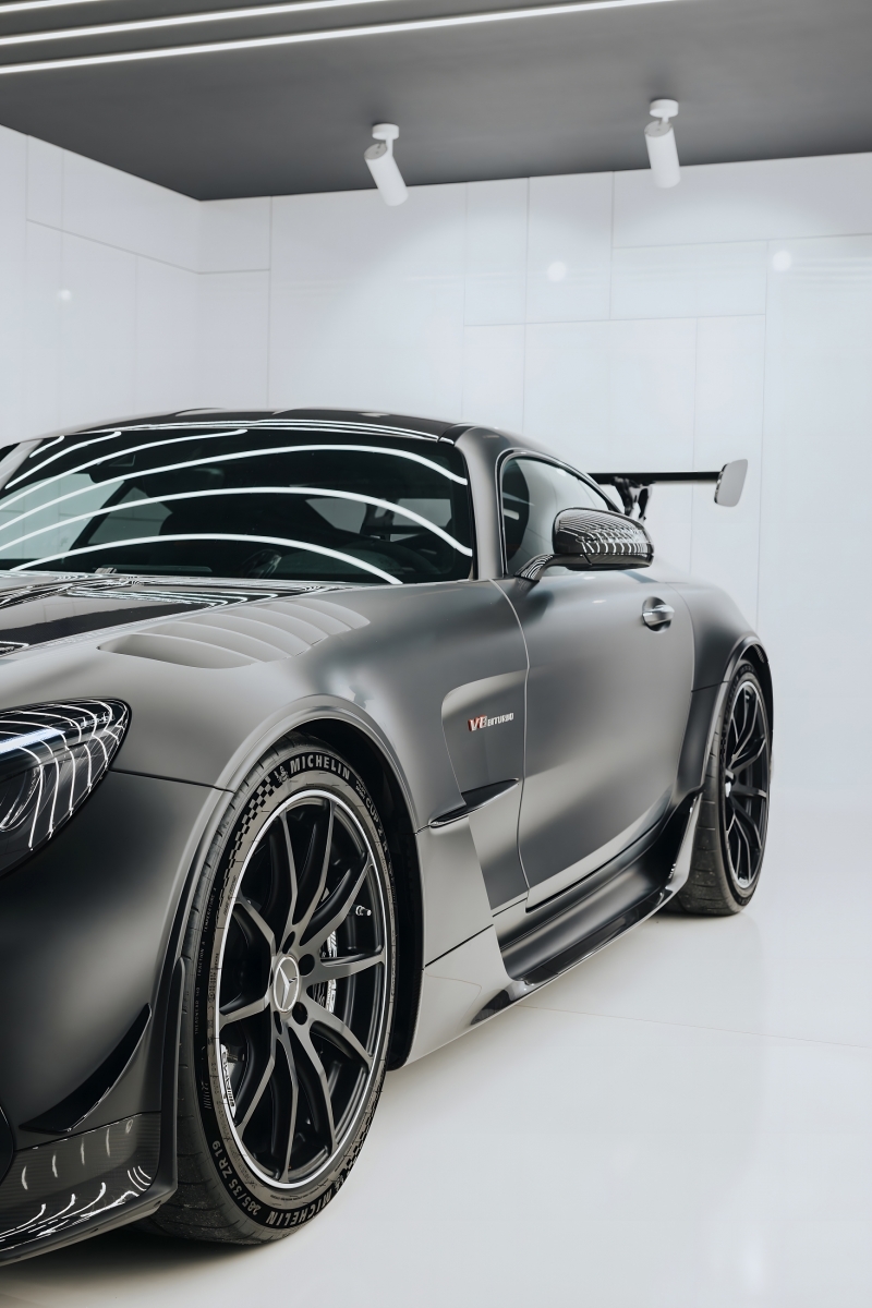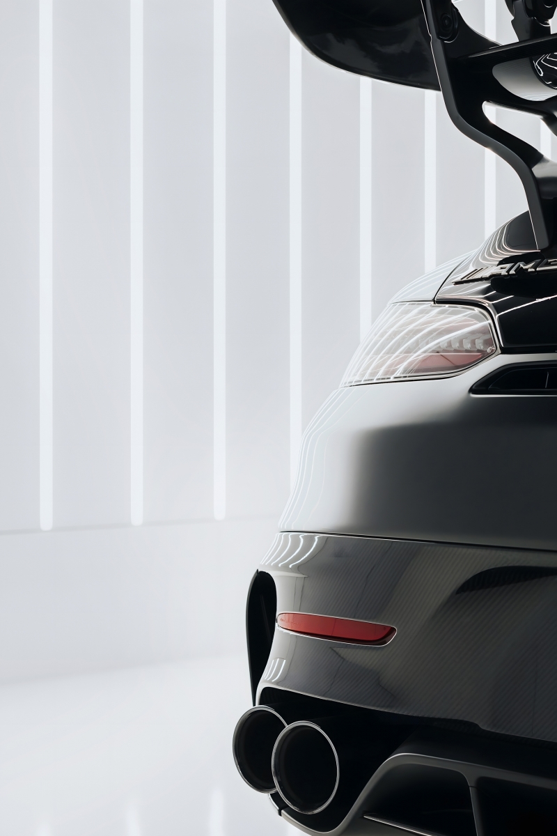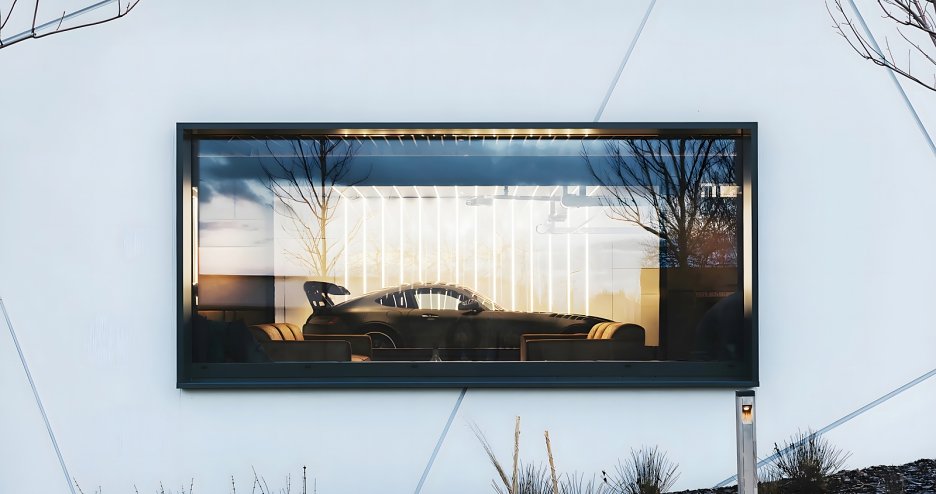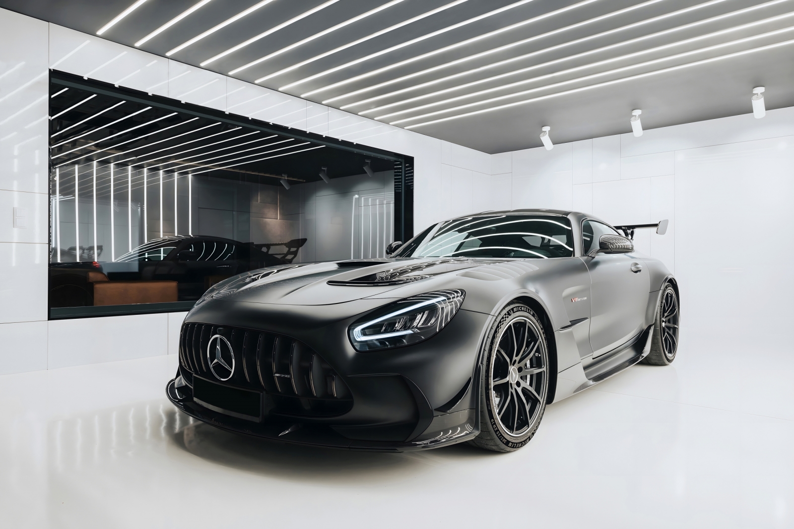 Z lounge sa prechádza do srdca objektu "showroomu" kde sa nachádza limitované auto Mercedes-AMG GT Black Series. Tieto priestory sú rovnako ako exteriér a interiér medzi sebou prepojené panoramatickým oknom. Interiérové dvere sú zo strany lounge plne zapracované do čalúneného obkladu a pre návštevníkov neviditeľné.