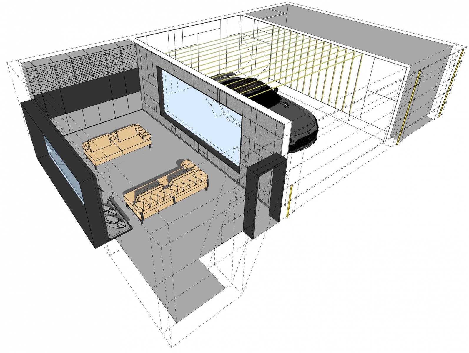 Projekt reagoval na dopyt po originálnom priestore, ktorý bude v symbióze pracovne a showroomu pre auto. V zahraničí tento koncept nie je novinkou.