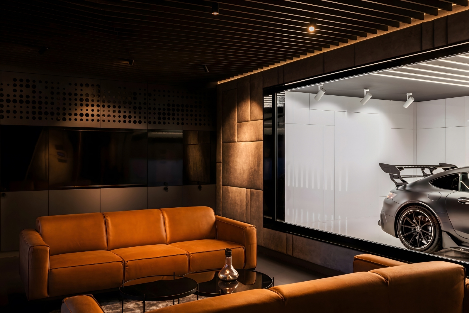 Interiér bol typologicky aj obsahovo neobvyklím, zadaním. Sny si predsa treba plniť… O tom, že autá sú vášňou investora niet pochýb.