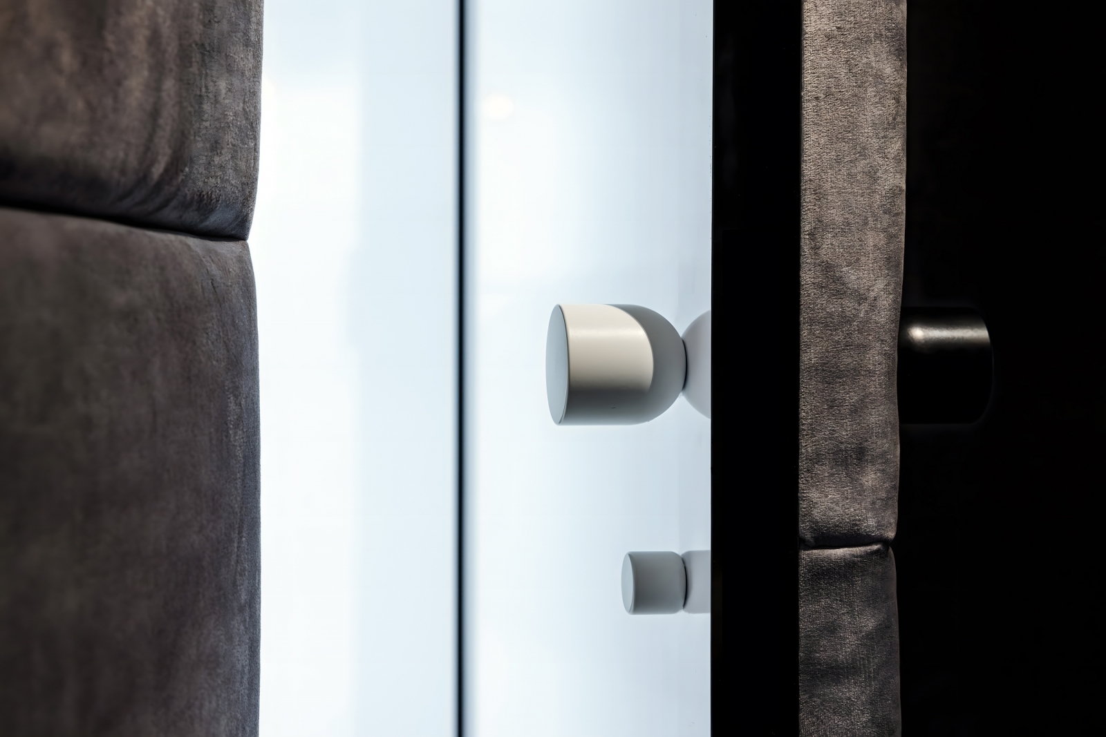 Dôraz sme kládli vysokú kvalitu zhotovenia a detaily, z ktorých by sme radi spomenuli napríklad atypické kľučky na dverách. Kruhové otáčacie prvky vždy vo farbe dverí, zabezpečujú bezproblémové otváranie magnetického zámku, ale neprezrádzajú na prvý pohľad, že sa jedná o interiérové dvere.