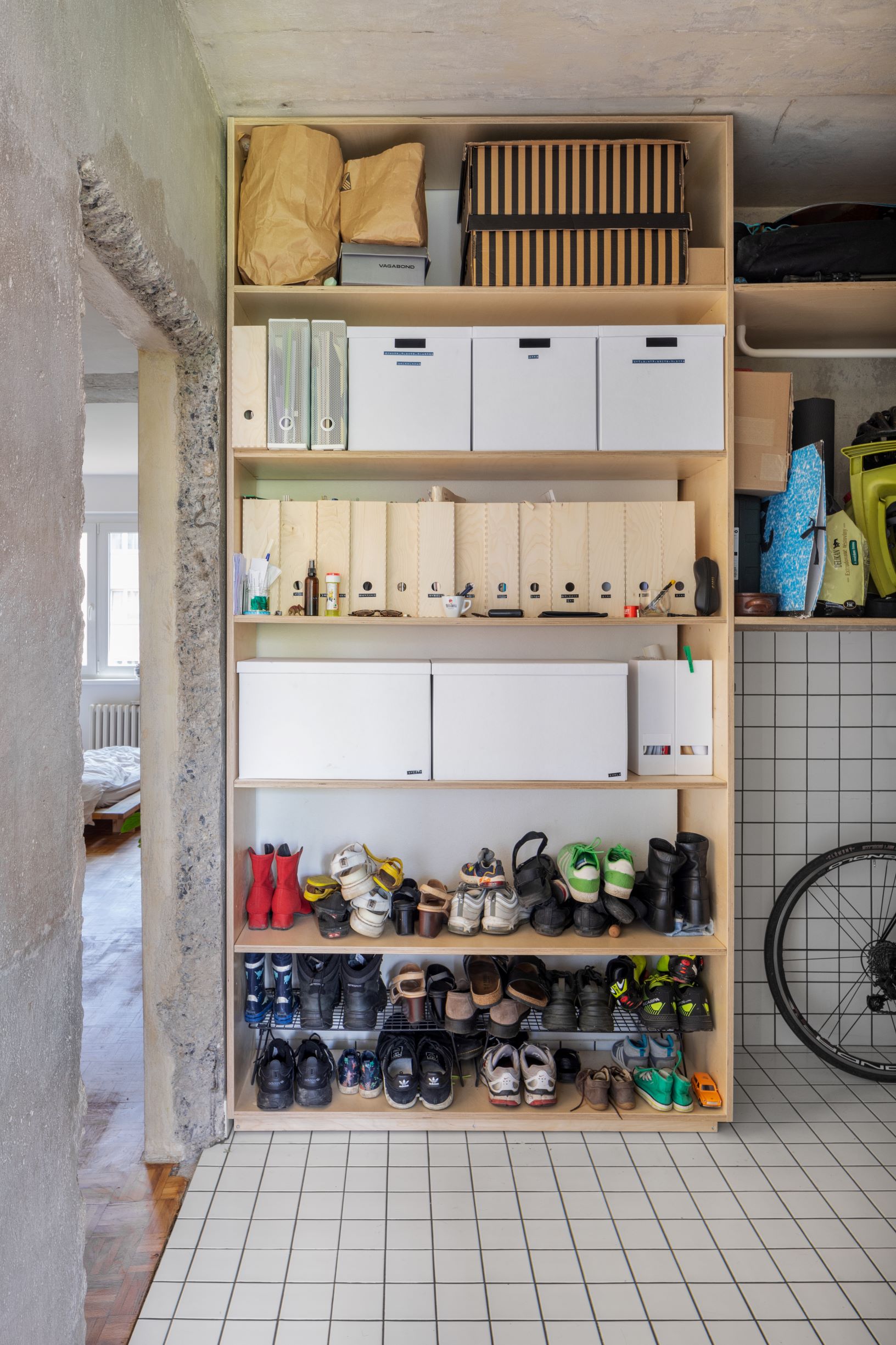 S tvorbou Davida Neuhäusla a Matěja Hunala sa stotožnila aj mladá rodina umelcov, ktorí oslovili architektov so zámerom "lowcostovej" prestavby panelákového bytu na pražskom sídlisku Červený Vrch. Povaha investorov umožnila architektom posunúť realizáciu do polohy experimentu, ktorý odhaľuje pôvodne skrytú materialitu a hrubé, zámerne nedokonalé detaily. "Nezničiteľné" surové povrchy, ktoré odolajú farbám aj vyčínaniu najmladšieho člena domácnosti, dopĺňajú vložené nábytkové prvky zo svetlej preglejky. Dispozícia sa nezmenila, nepribudlo nič nadbytočné. "Není potřeba vše dokončit. Život si najde cestu," dopĺňajú architekti.