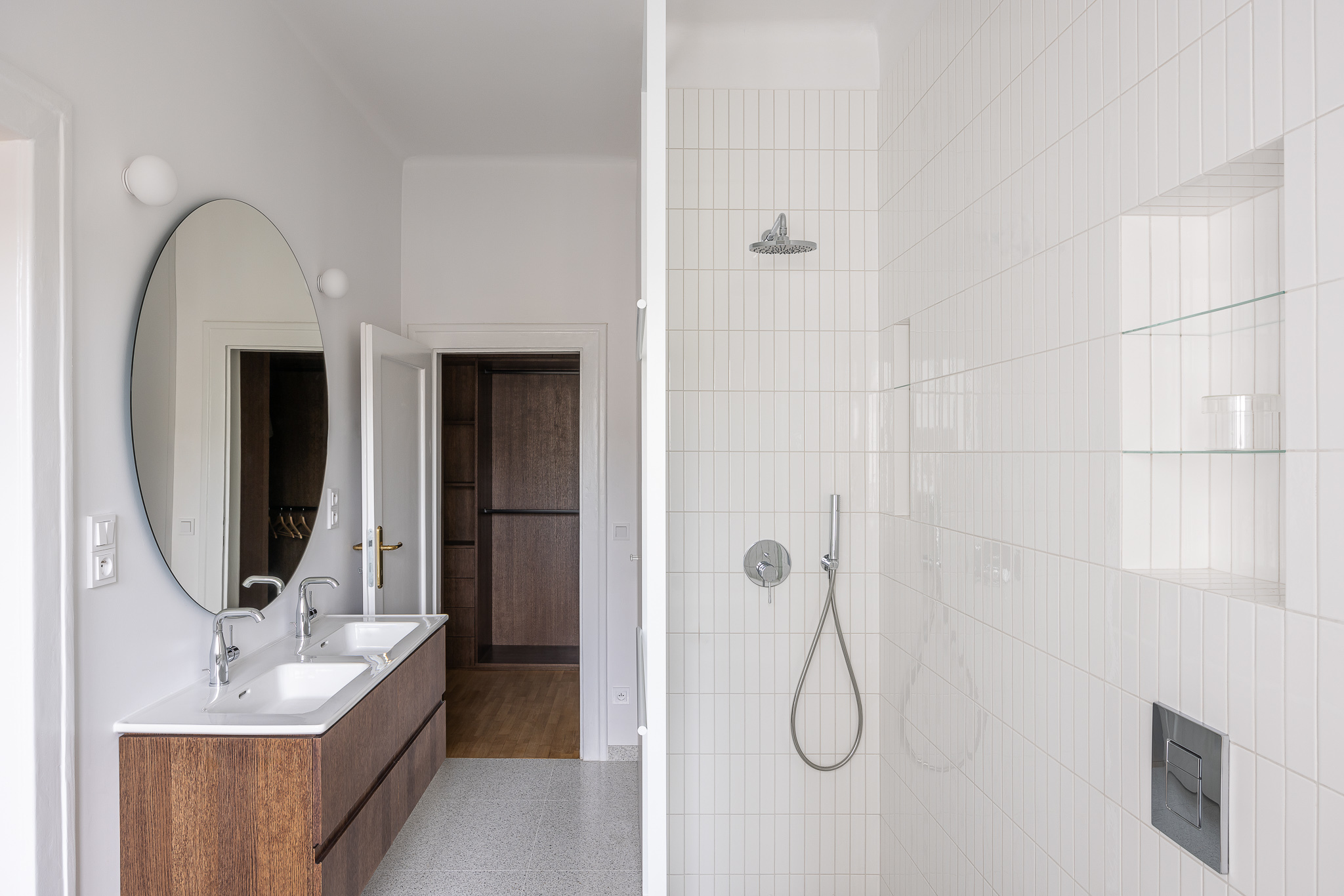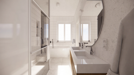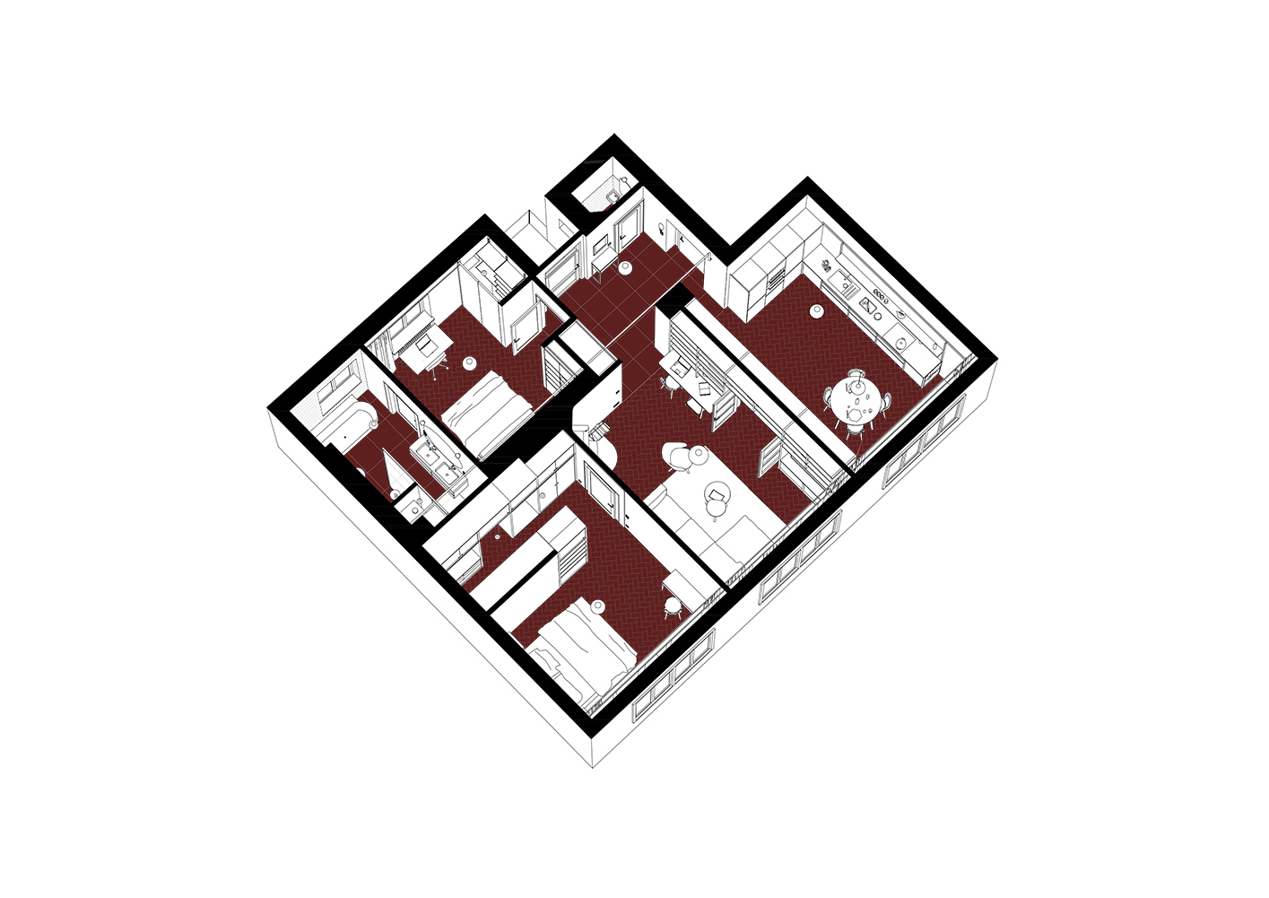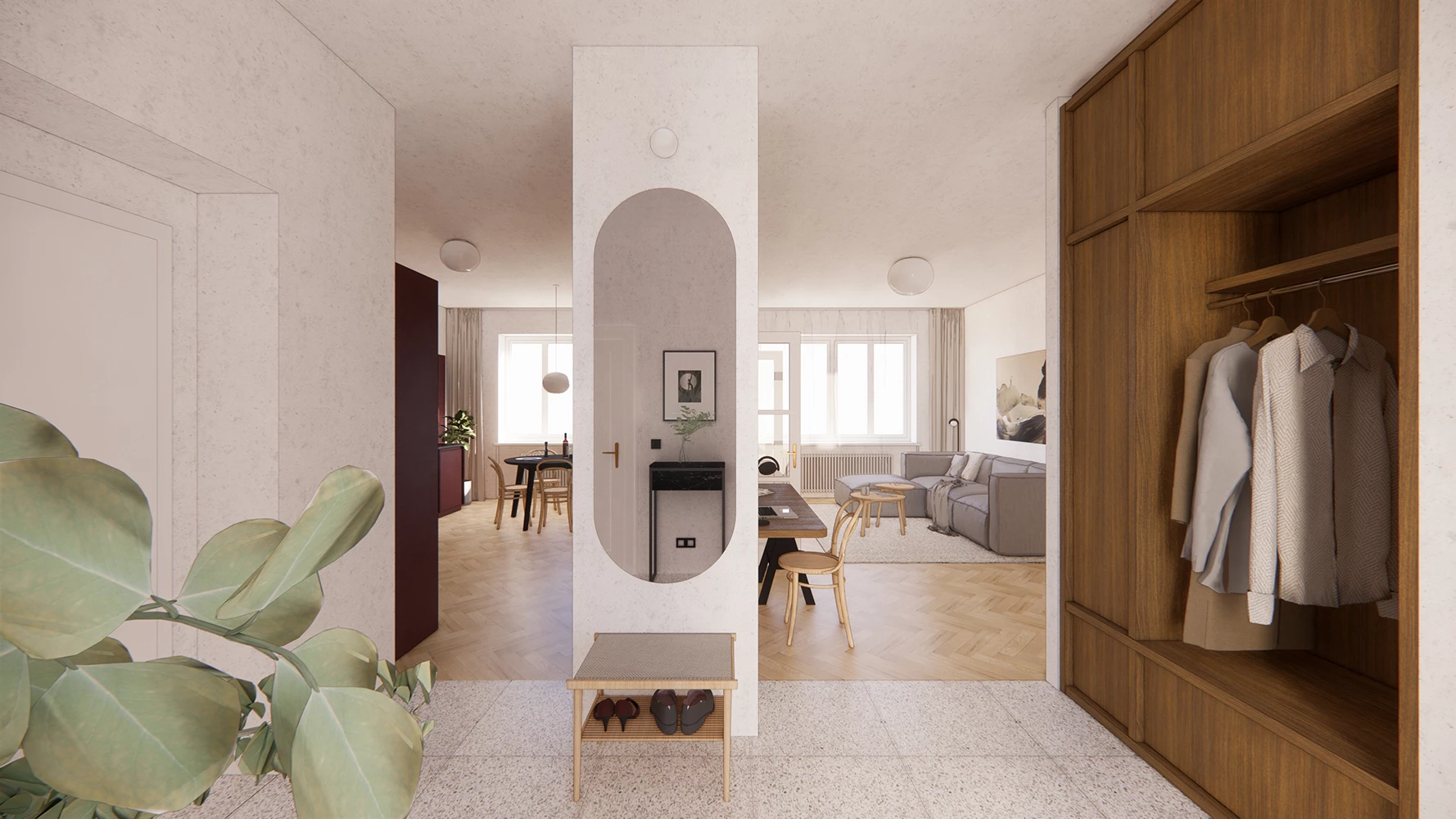 Zadaním projektu rekonštrukcie bytu v modernistickom obytnom dome Marienhof v bratislavskom Starom meste bolo nájsť dispozíciu, vhodnú pre život staršieho páru, odstrániť nánosy nevhodných rekonštrukcií a vytvoriť dôstojný interiér adekvátny kvalite objektu.