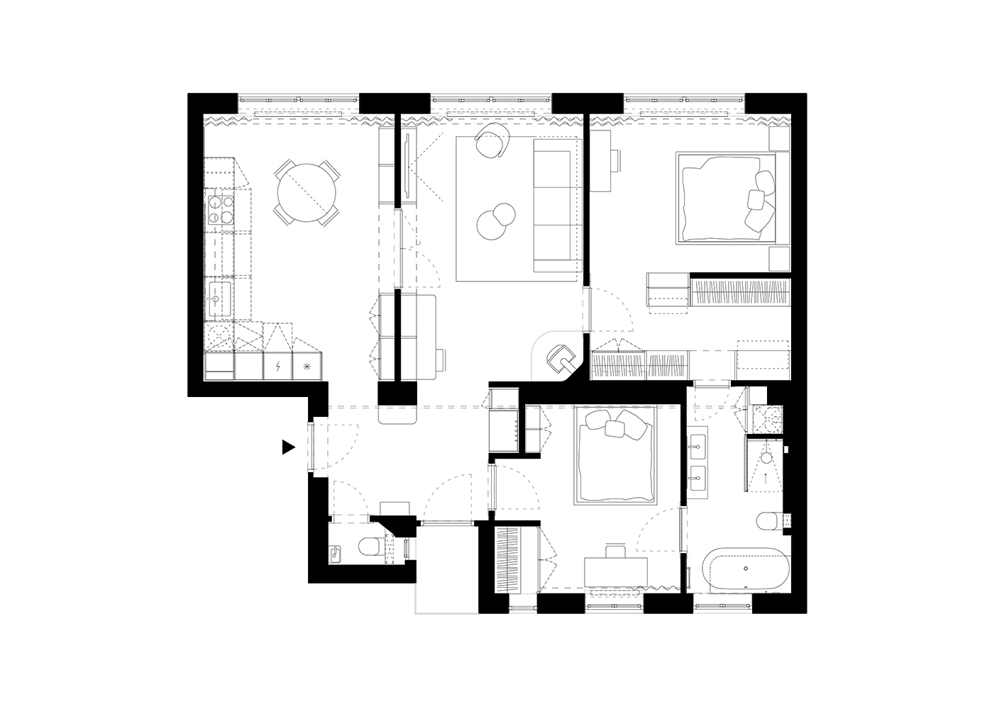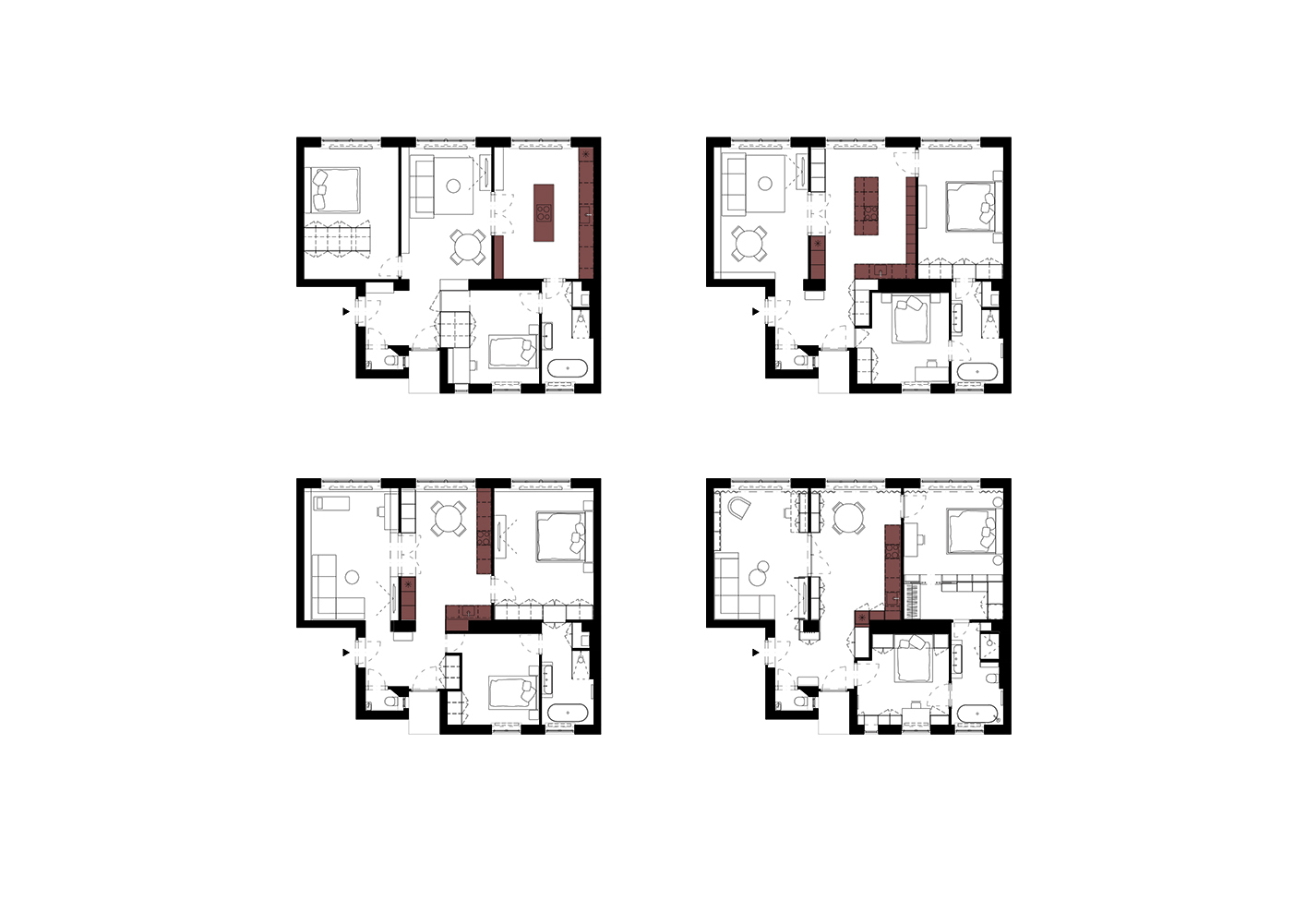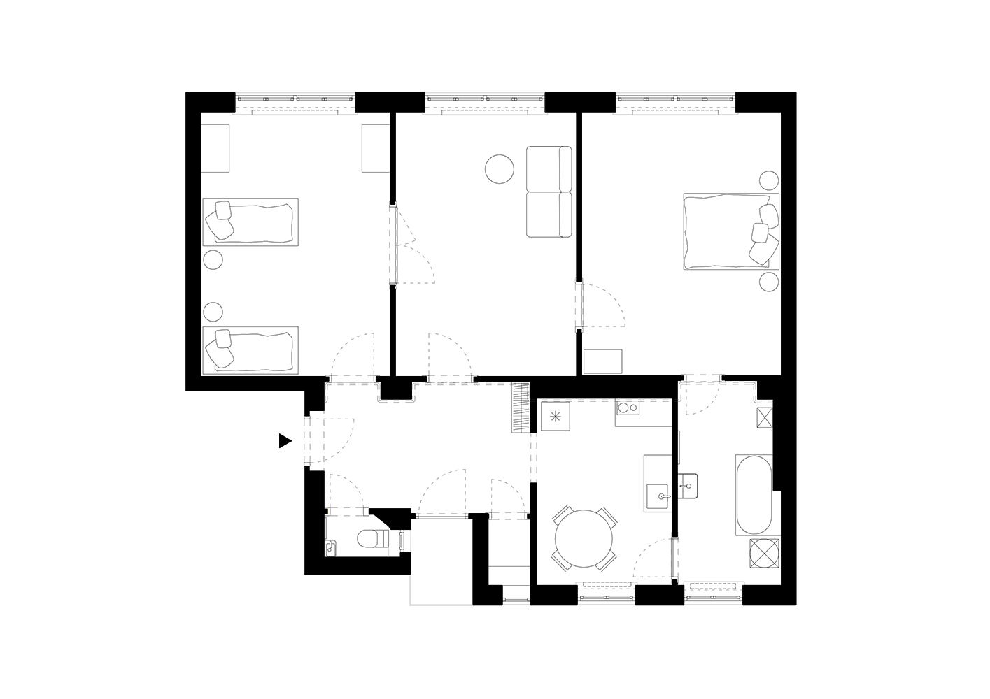 Zadaním projektu rekonštrukcie bytu v modernistickom obytnom dome Marienhof v bratislavskom Starom meste bolo nájsť dispozíciu, vhodnú pre život staršieho páru, odstrániť nánosy nevhodných rekonštrukcií a vytvoriť dôstojný interiér adekvátny kvalite objektu.
