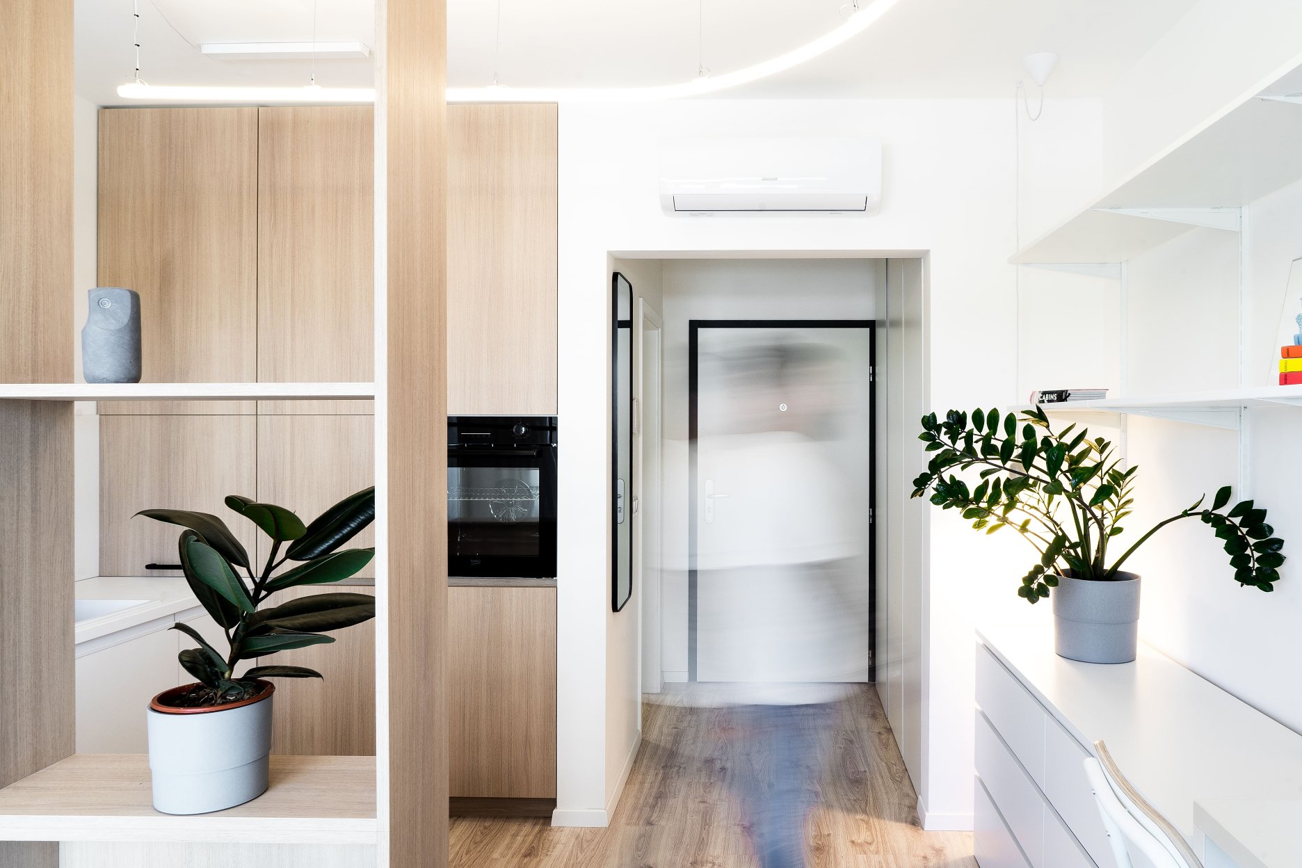 Zadaním bolo navrhnúť funkčný, nadčasový a svetlý interiér na veľmi obmedzenej ploche a s limitovaným rozpočtom. Výsledkom je kompaktná, no vzdušná garsónka s rozlohou 23 m², určená primárne na prenájom.