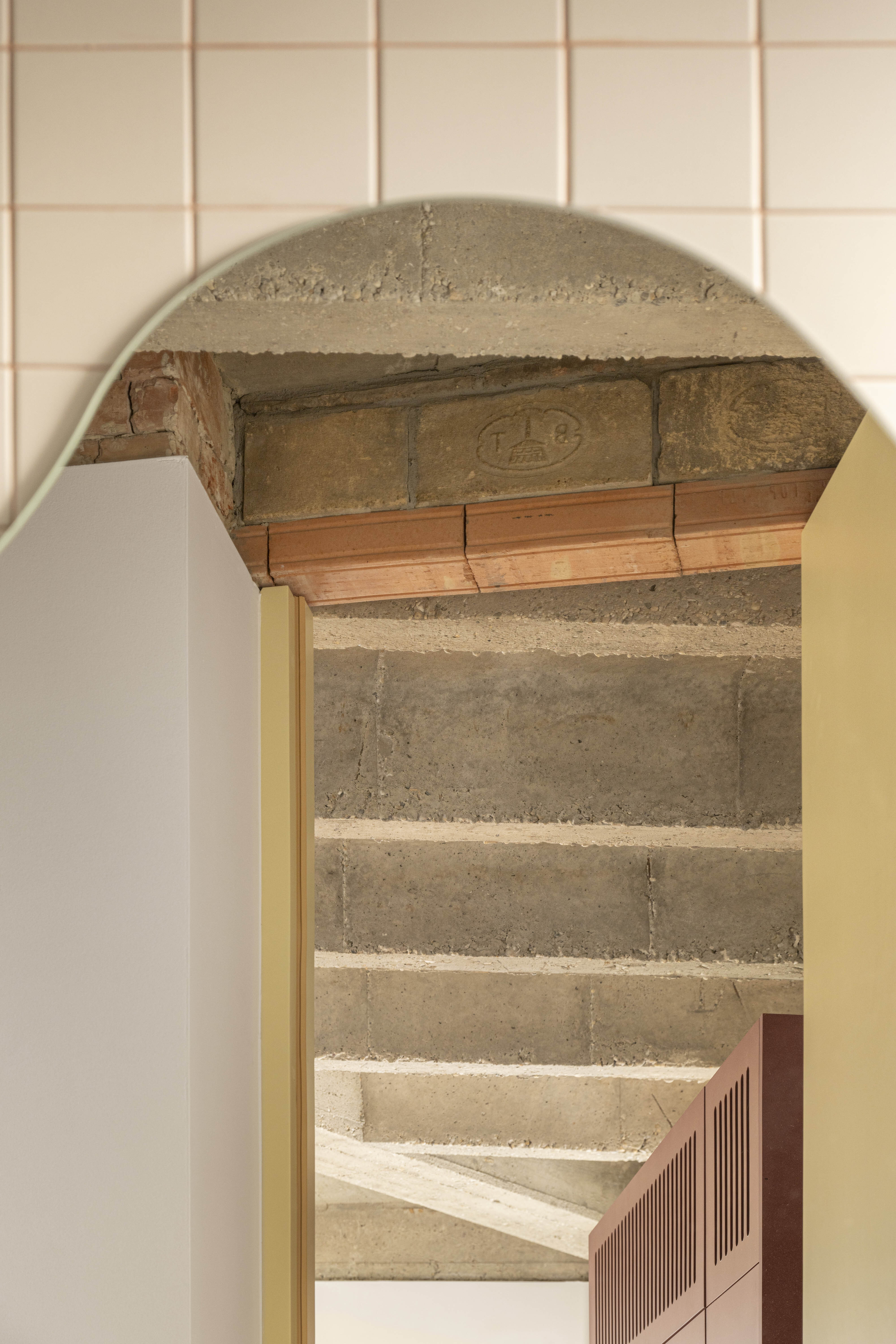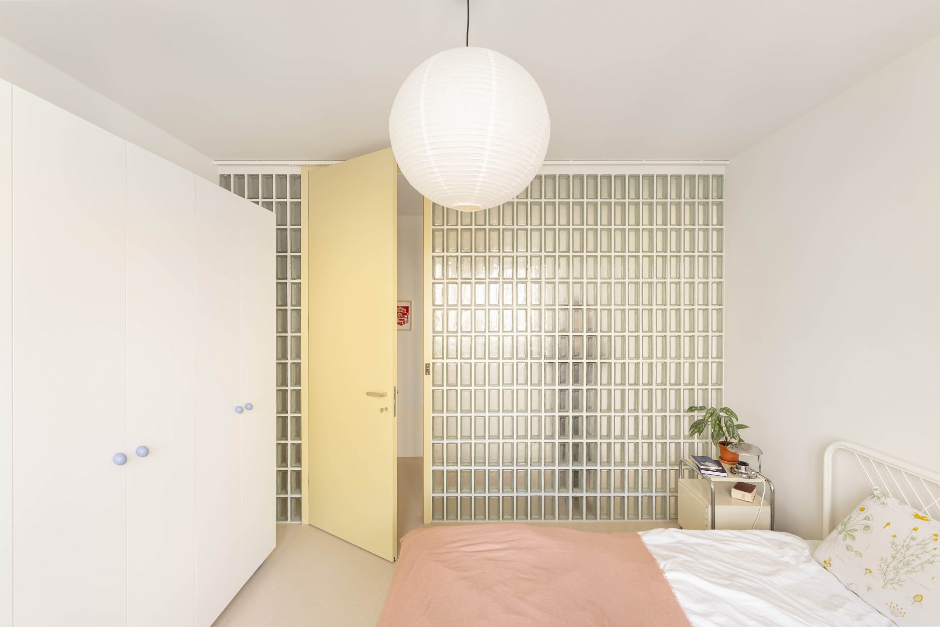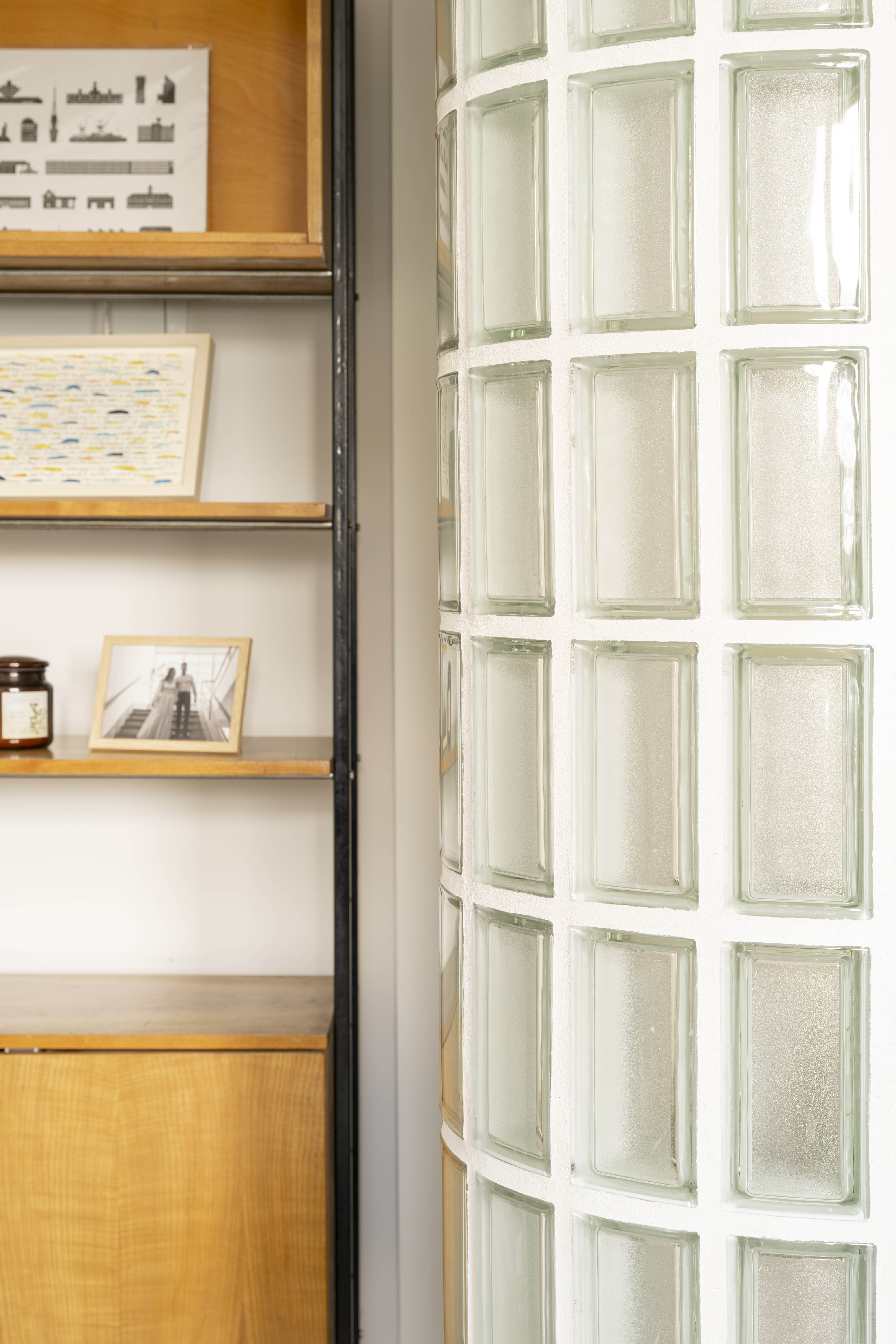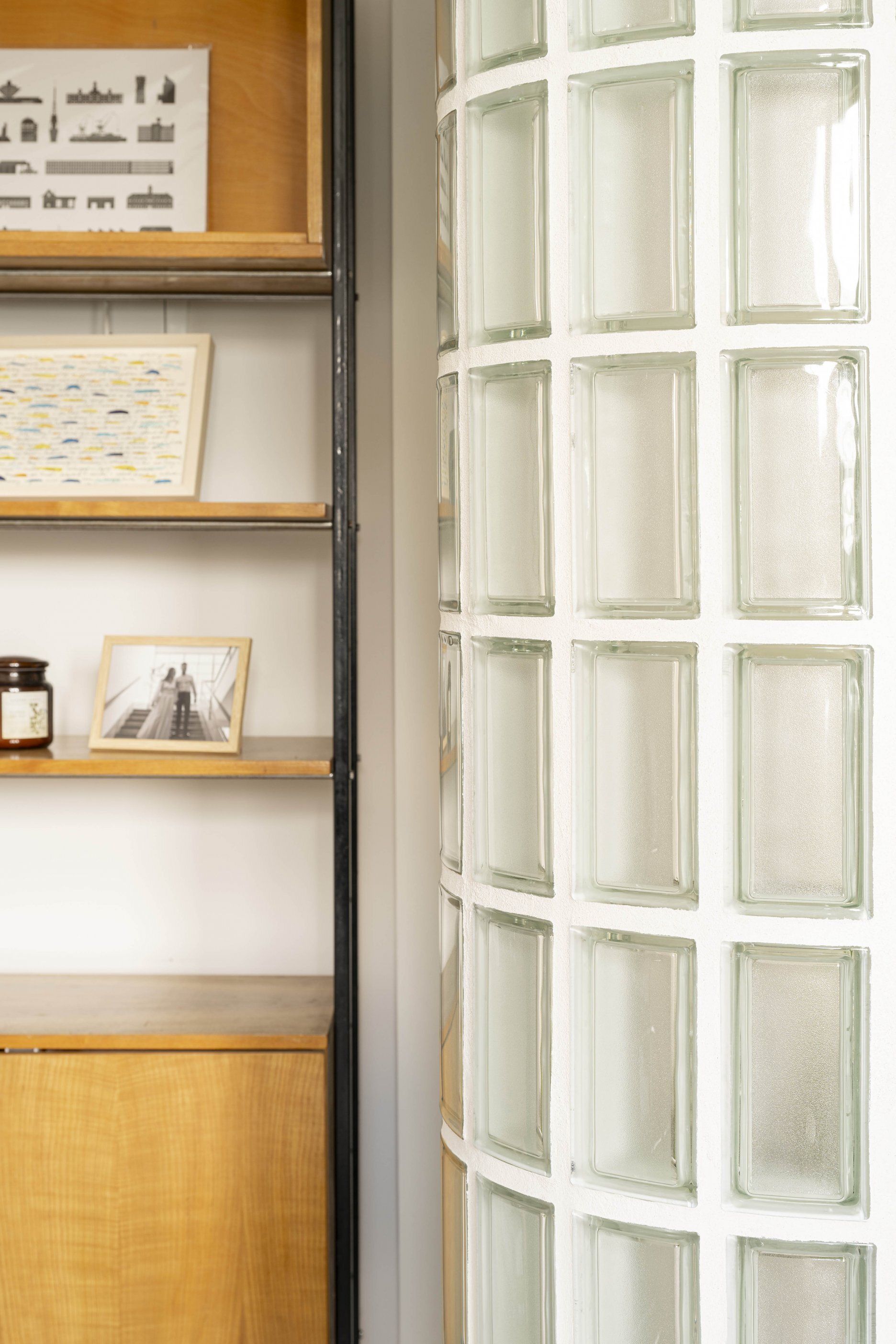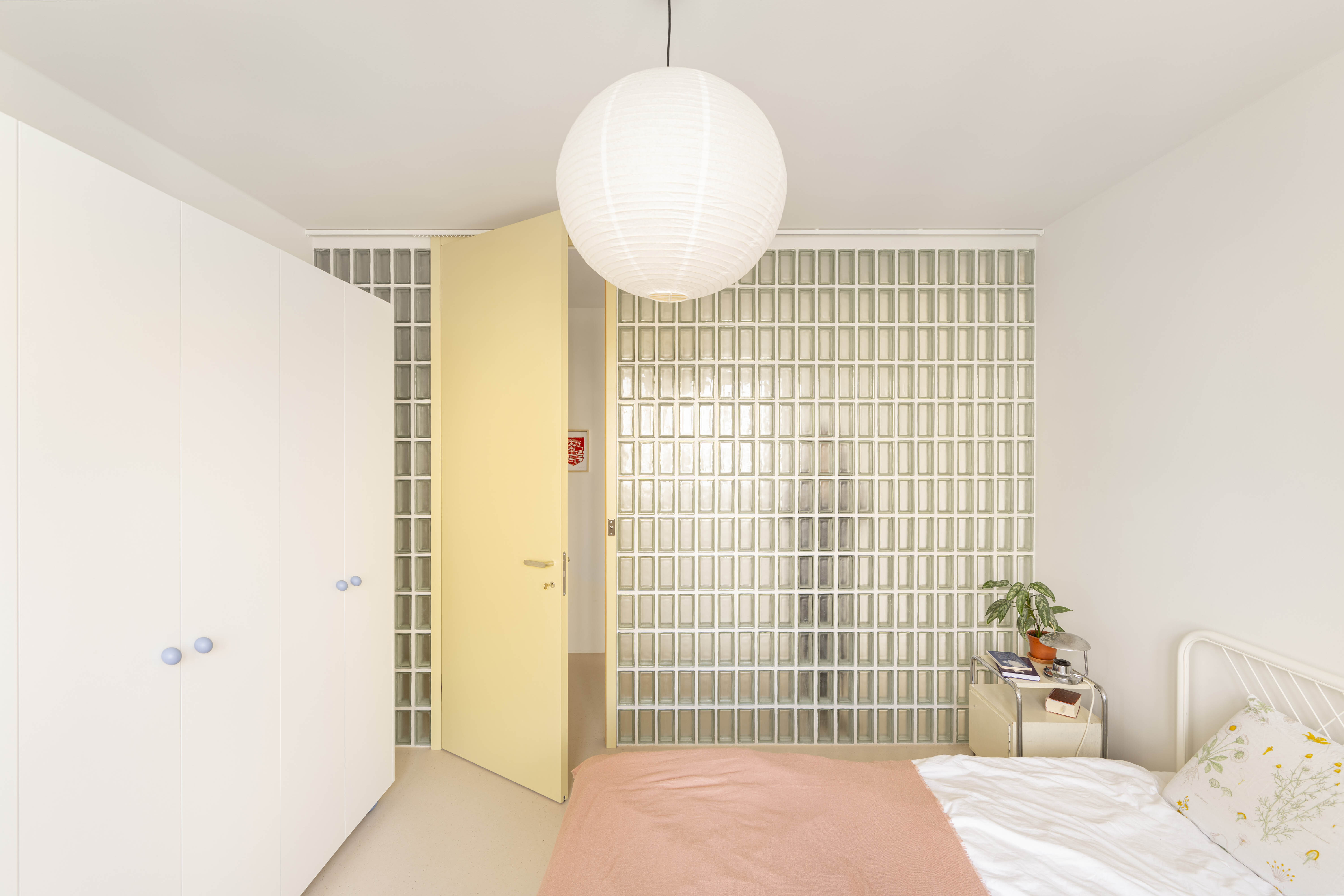 Keďže izby sú svetlé a ich hĺbka relatívne malá, priečka medzi izbami, toaletou a chodbou je z sklobetónu, čo zabezpečuje celodenné presvetlenie chodby a jej prípadné využitie ako „galerijného“ priestoru bytu. Pôvodné kastlíkové okná ostávajú zachované, čím podčiarkujú charakter bytu z 30. rokov. Ich jemne žltá farba sa objavuje aj na ďalších súčasných prvkoch v byte, čím sa moderný charakter prepája s pôvodnými detailmi. V procese rekonštrukcie sa v byte objavili mnohé vrstvy stavby, ktoré boli čiastočne alebo úplne odkryté – najmä na strope. Priestoru tento prístup dodal príjemnú surovosť a pravdivý detail.