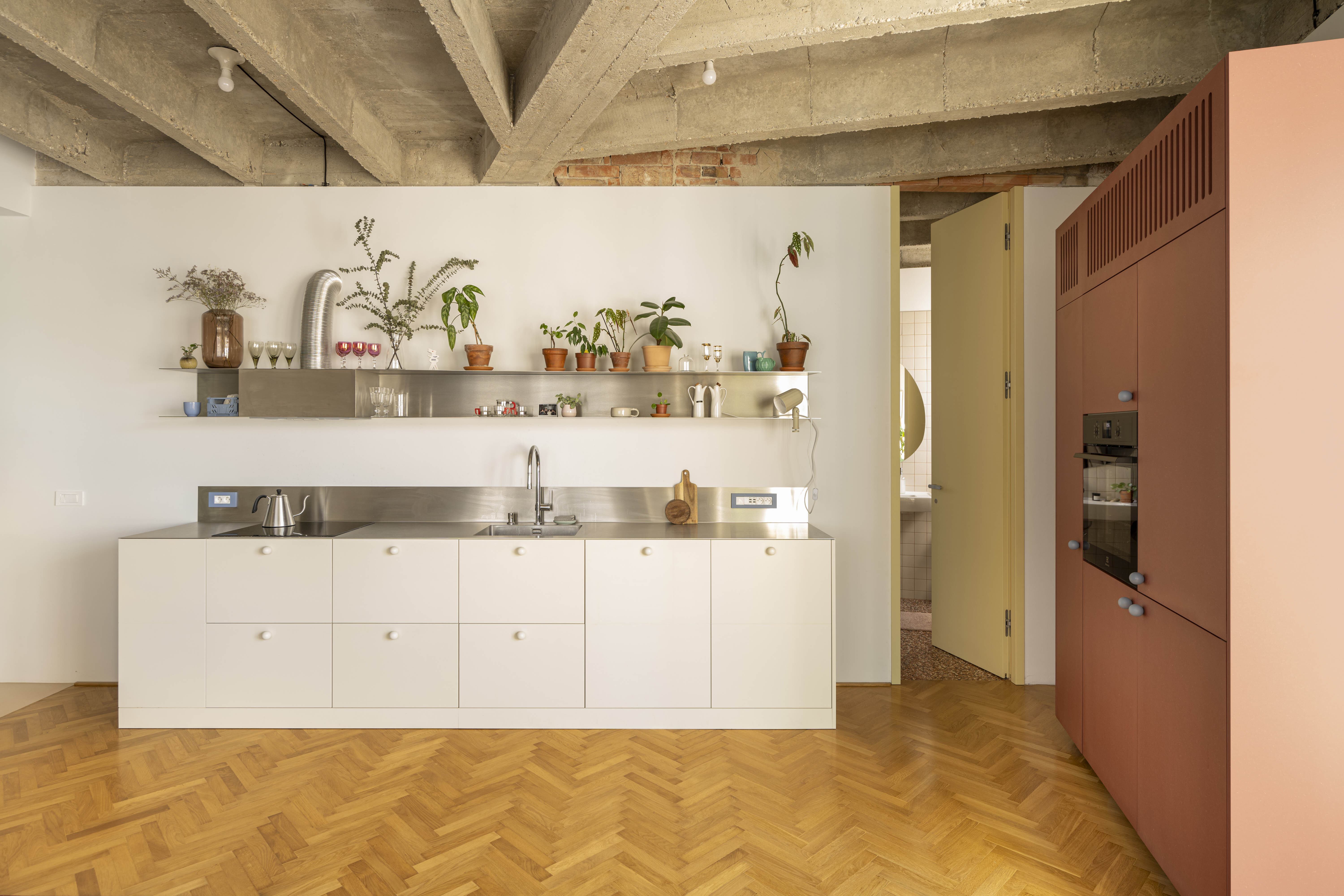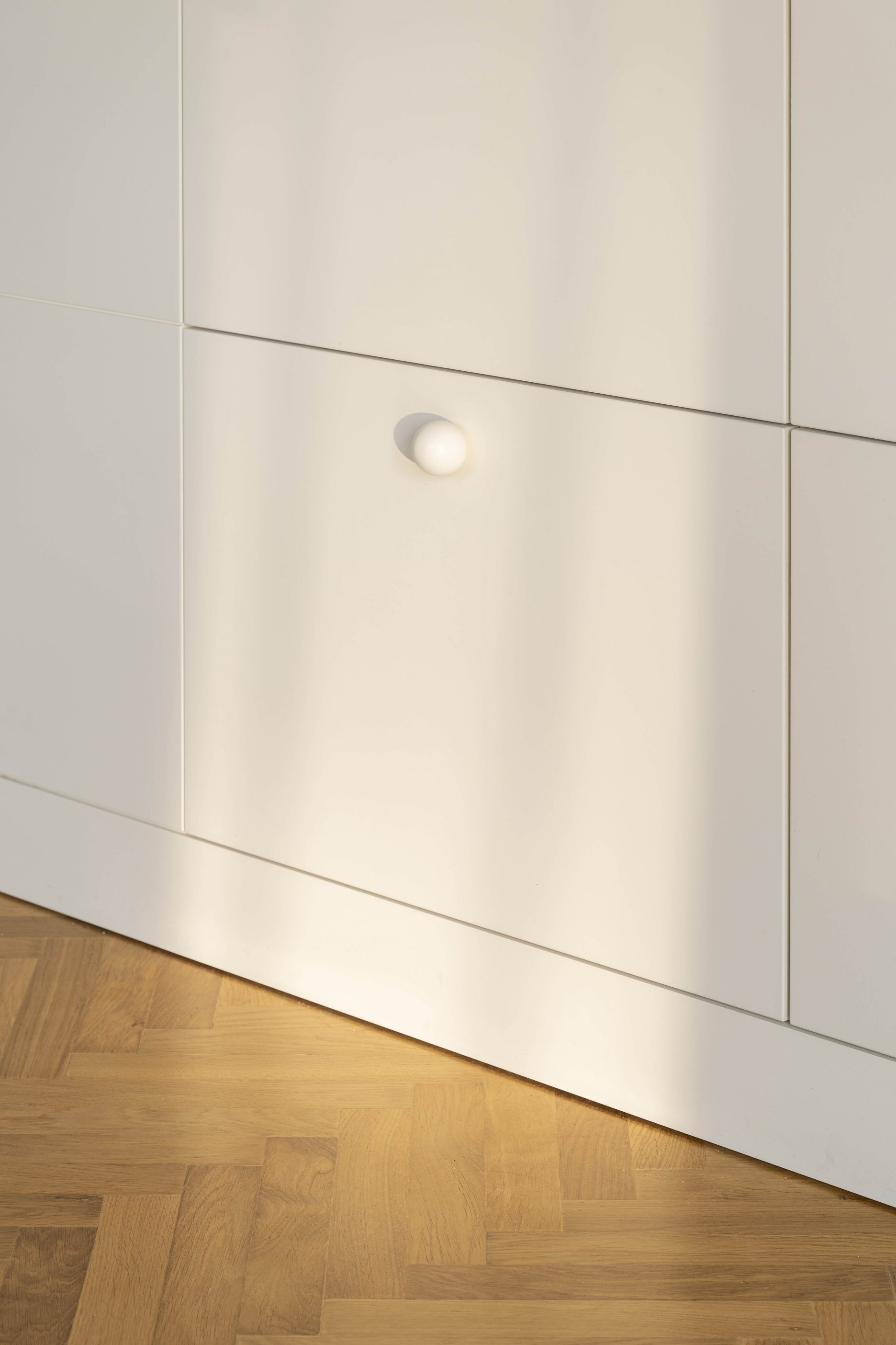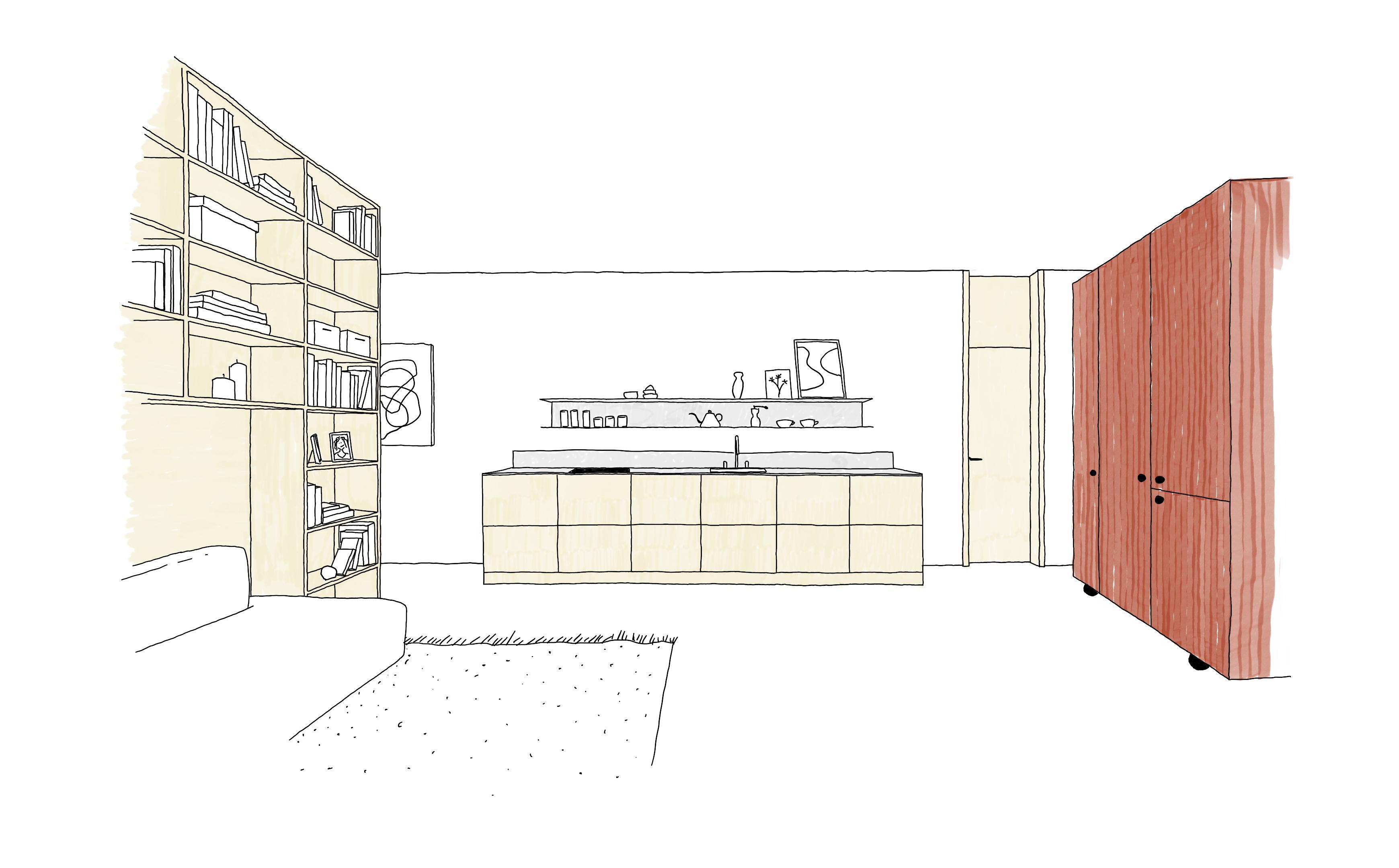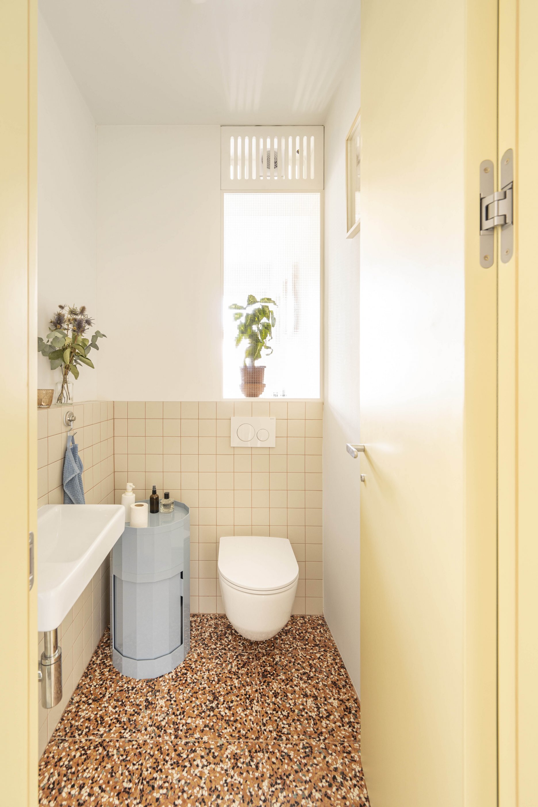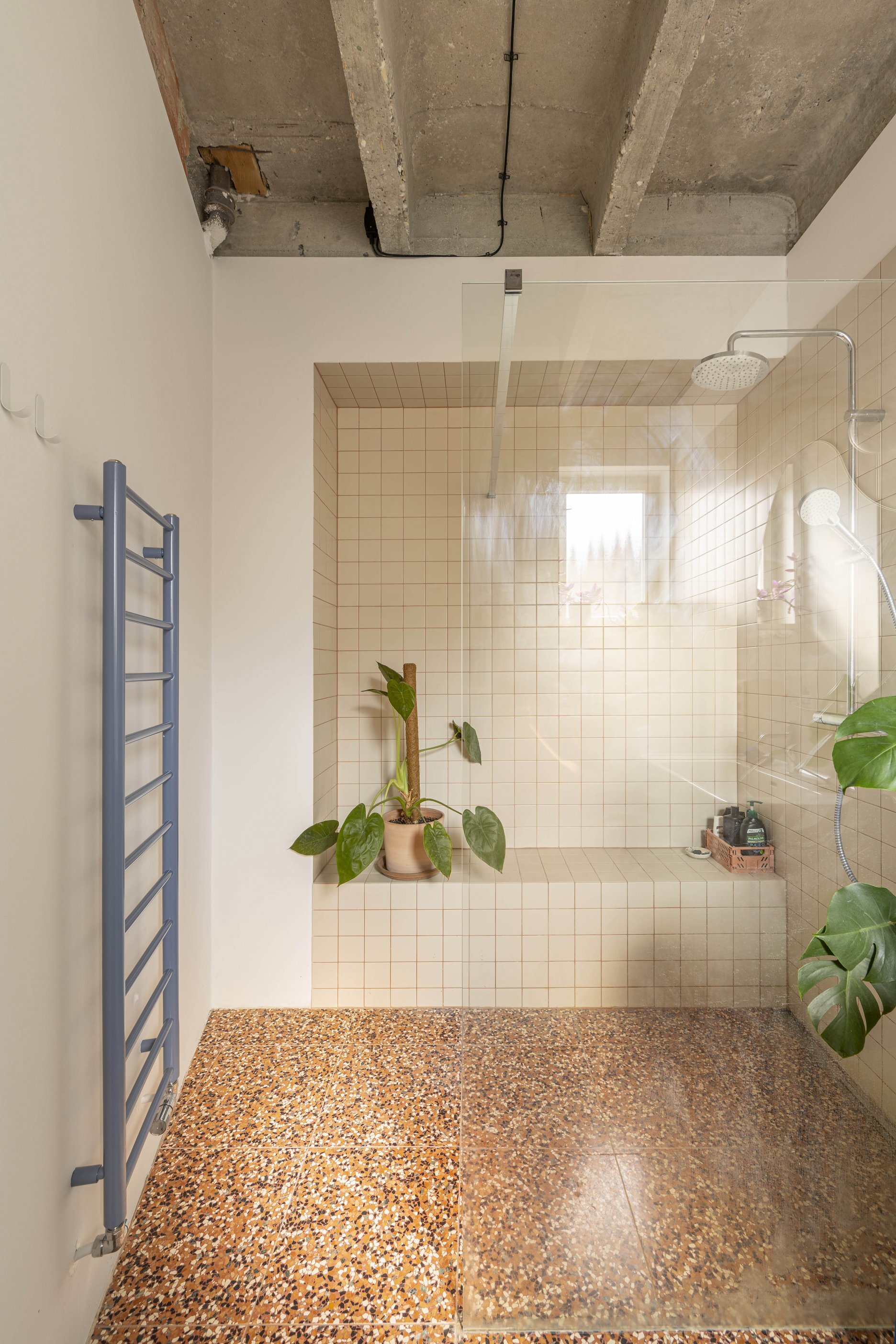 Keďže izby sú svetlé a ich hĺbka relatívne malá, priečka medzi izbami, toaletou a chodbou je z sklobetónu, čo zabezpečuje celodenné presvetlenie chodby a jej prípadné využitie ako „galerijného“ priestoru bytu. Pôvodné kastlíkové okná ostávajú zachované, čím podčiarkujú charakter bytu z 30. rokov. Ich jemne žltá farba sa objavuje aj na ďalších súčasných prvkoch v byte, čím sa moderný charakter prepája s pôvodnými detailmi. V procese rekonštrukcie sa v byte objavili mnohé vrstvy stavby, ktoré boli čiastočne alebo úplne odkryté – najmä na strope. Priestoru tento prístup dodal príjemnú surovosť a pravdivý detail.