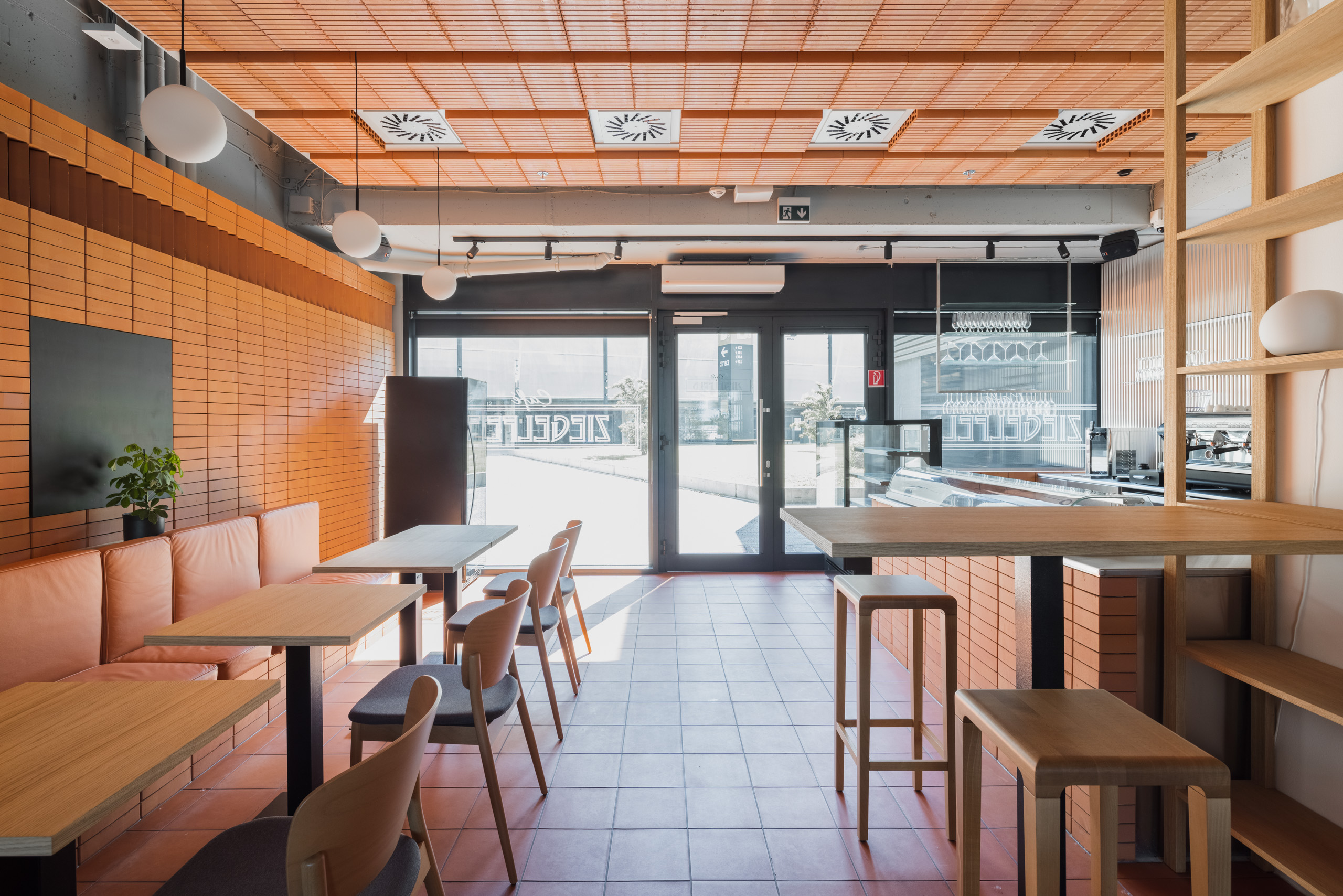 Kaviareň Ziegelfeld. Nomen est omen. Tehla v centre pozornosti. Koncept, ktorý možno stvárniť na nekonečno dobrých spôsobov. Na mieste, kde sa tehla historicky vyrábala je to prístup obhájiteľný, samozrejmý.