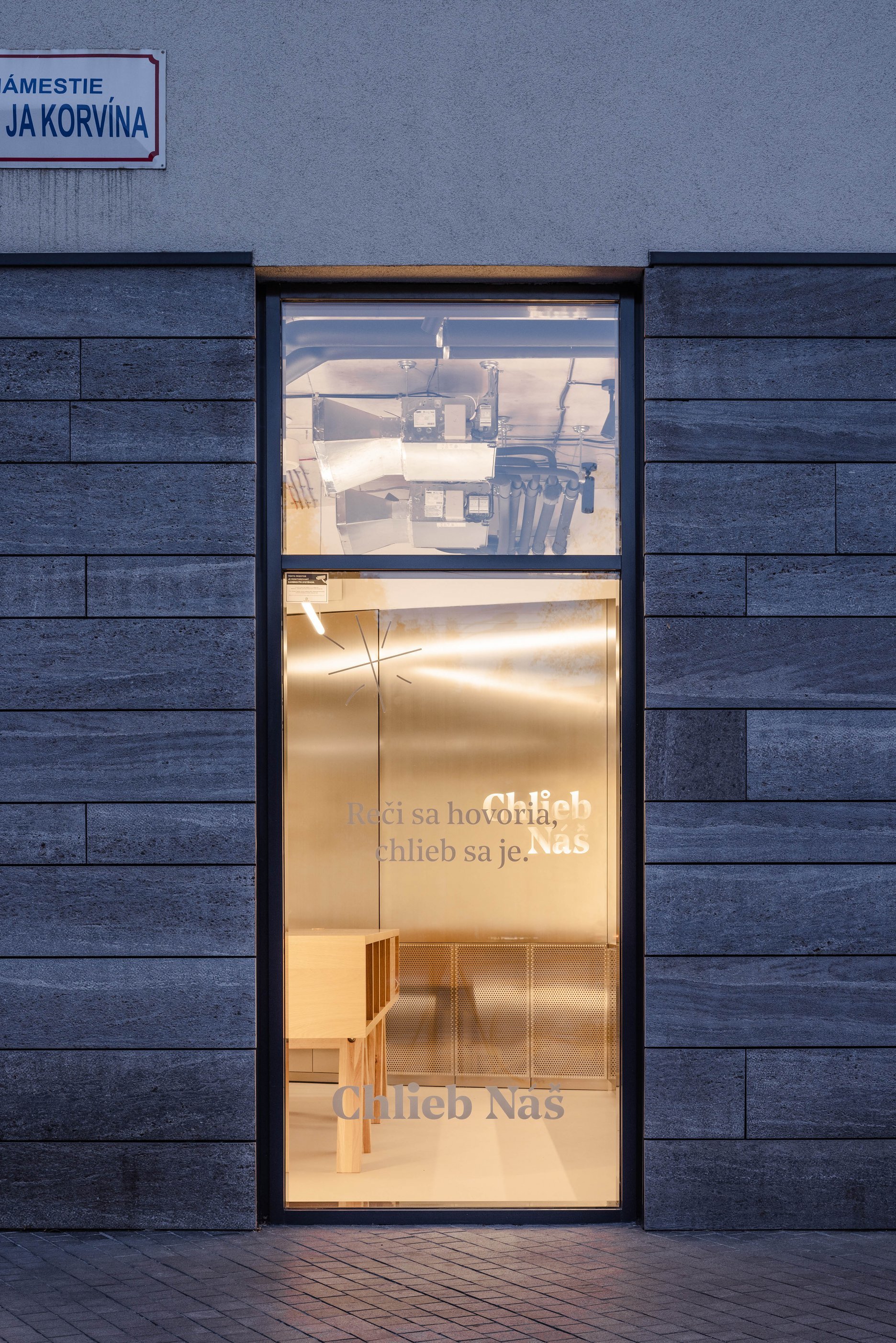 Pekáreň na námestí Mateja Korvína v Bratislave je druhou prevádzkou a nadväzuje na Pekáreň v meštianskom dome v historickom jadre Trnavy. Ako naznačuje názov "Chlieb náš" hlavným cieľom pekárne je vyrábať chlieb ako produkt každodennej potreby v tradičnej podobe s použitím kvásku, kombináciou remeselných postupov inovatívnymi technológiami z priemyslu. Toto spojenie tradície a invencie sa odráža v rámci použitých materiálov akými sú najmä nerez a drevo.