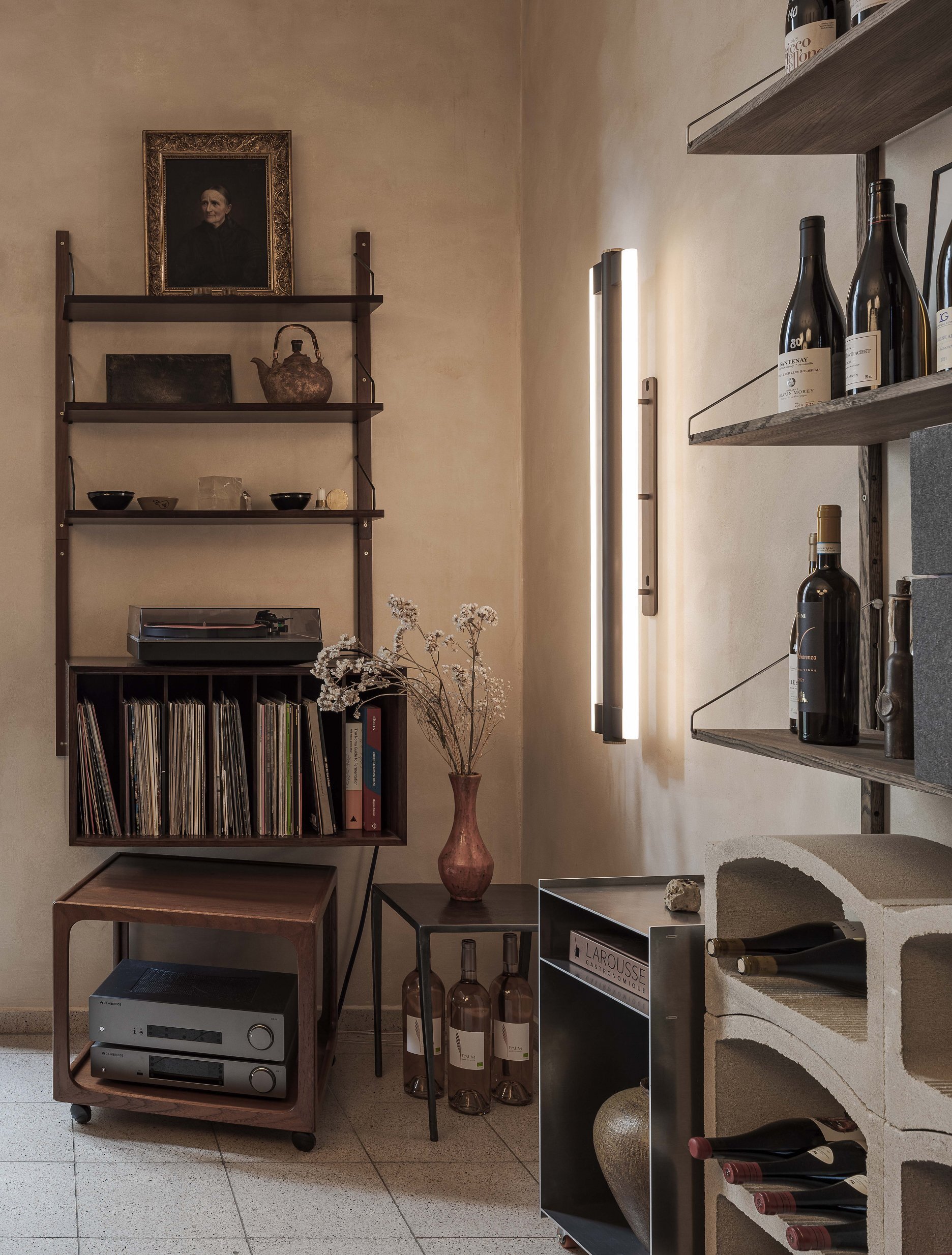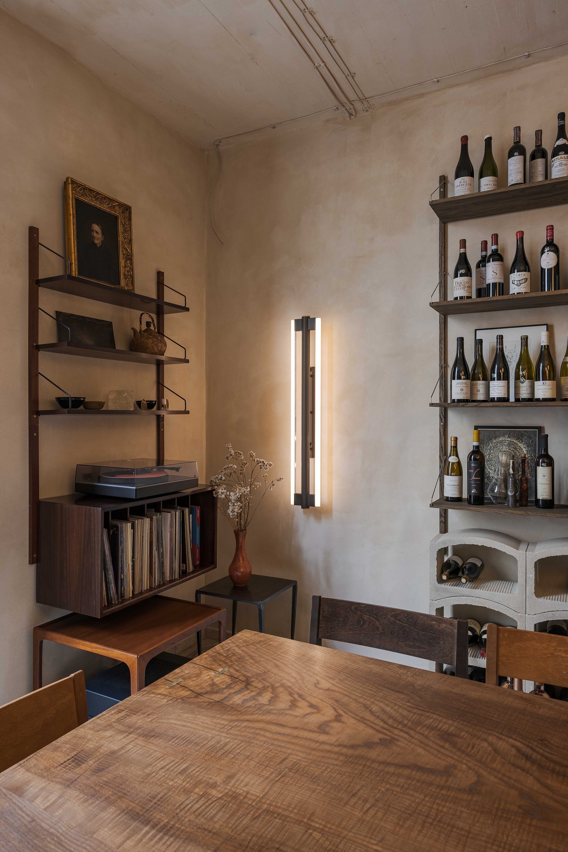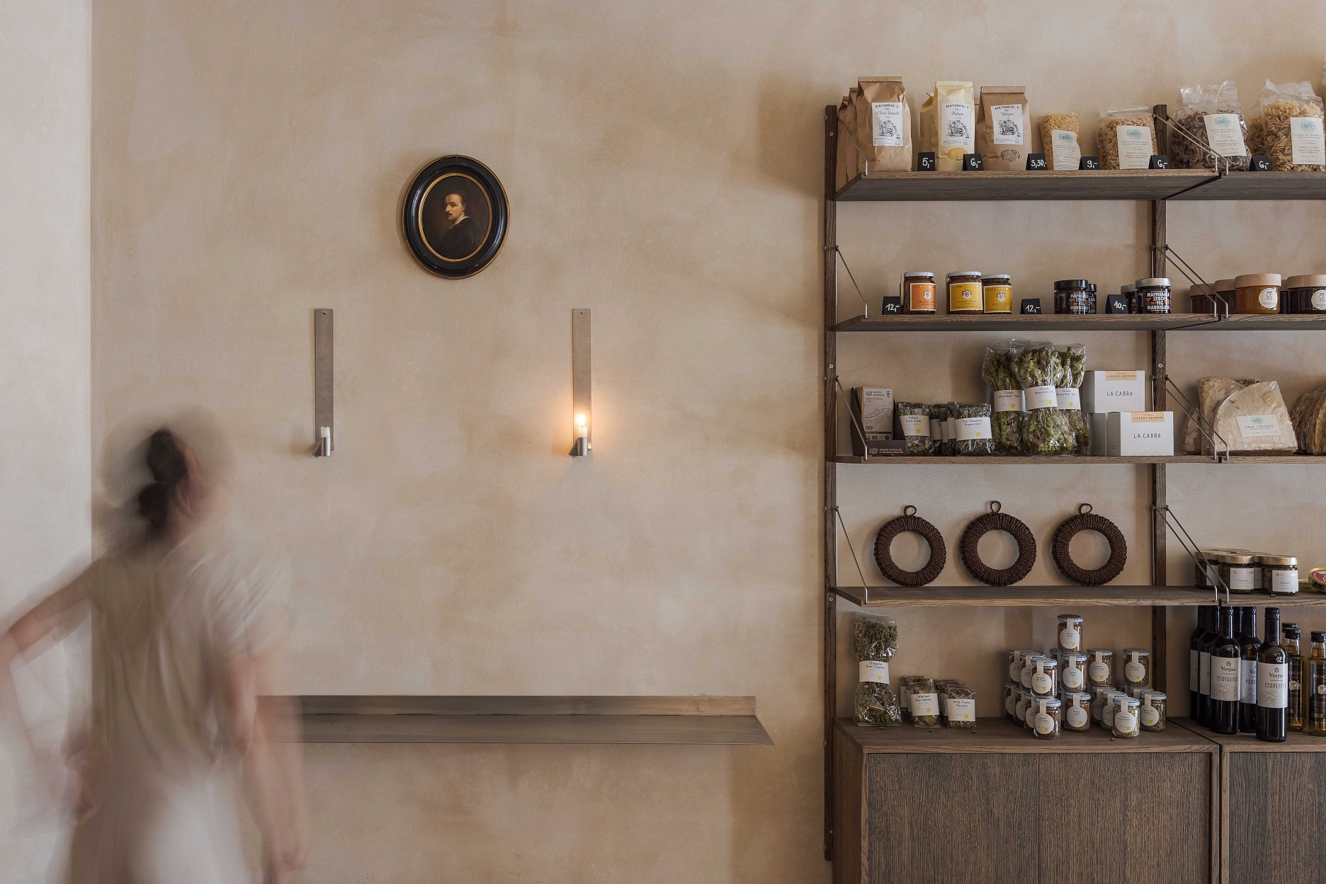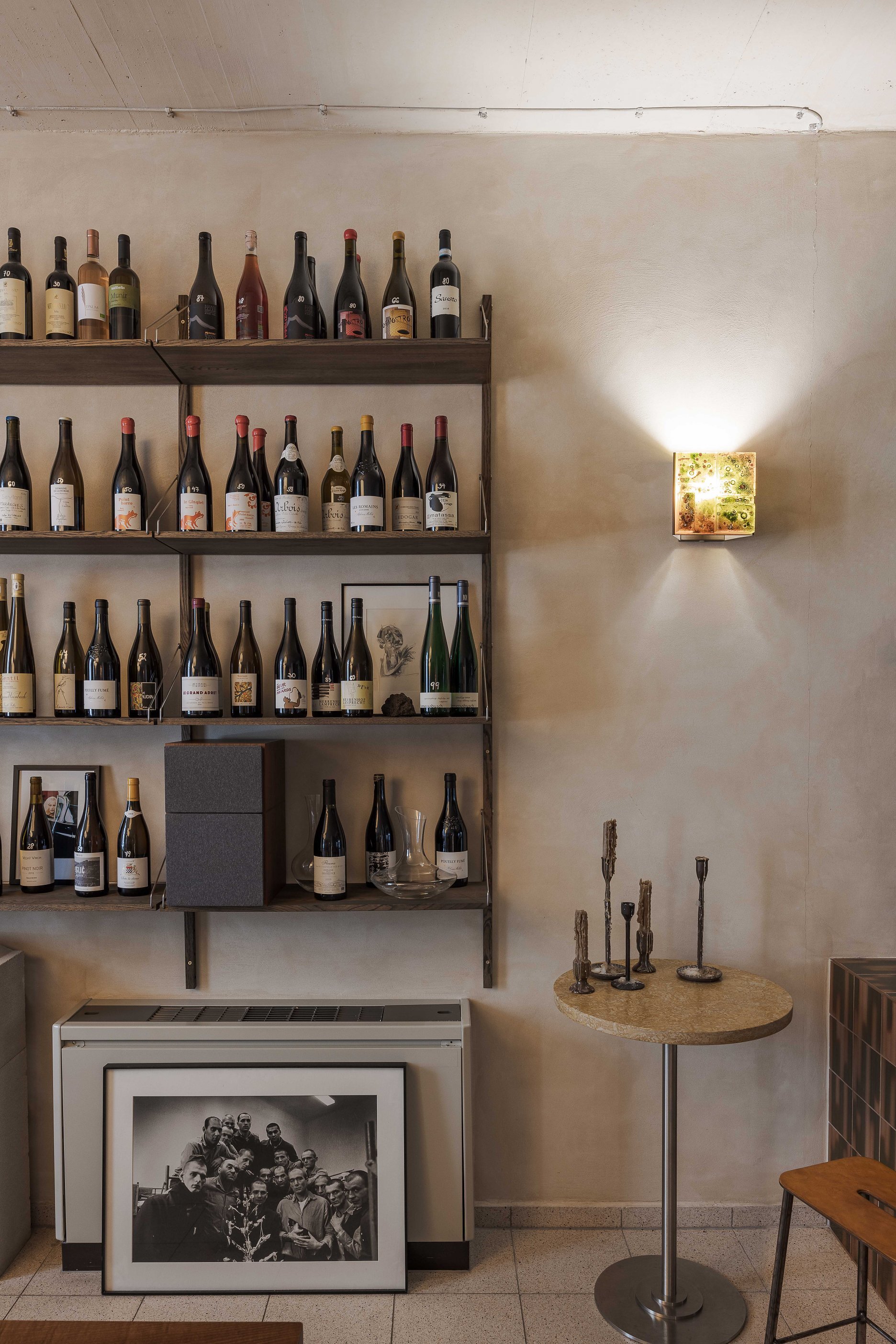 Produkty, z ktorých v bistre varia a ktoré zároveň predávajú, boli vyberané s dôrazom na kvalitu s takmer kurátorsky citlivým prístupom. Ten sa odzrkadľuje naprieč celým priestorom a vytvára zmes objektov, doplnkov, svietidiel, kvetov a iných predmetov, ktoré spolu vytvárajú oku lahodiace „cuvée.“ Táto koncentrácia vnemov nepôsobí ani rozpačito, ani preexponovane – naopak, je vyvážená a ponúka pestrú škálu podnetov, na ktorých môže zrak spočinúť.