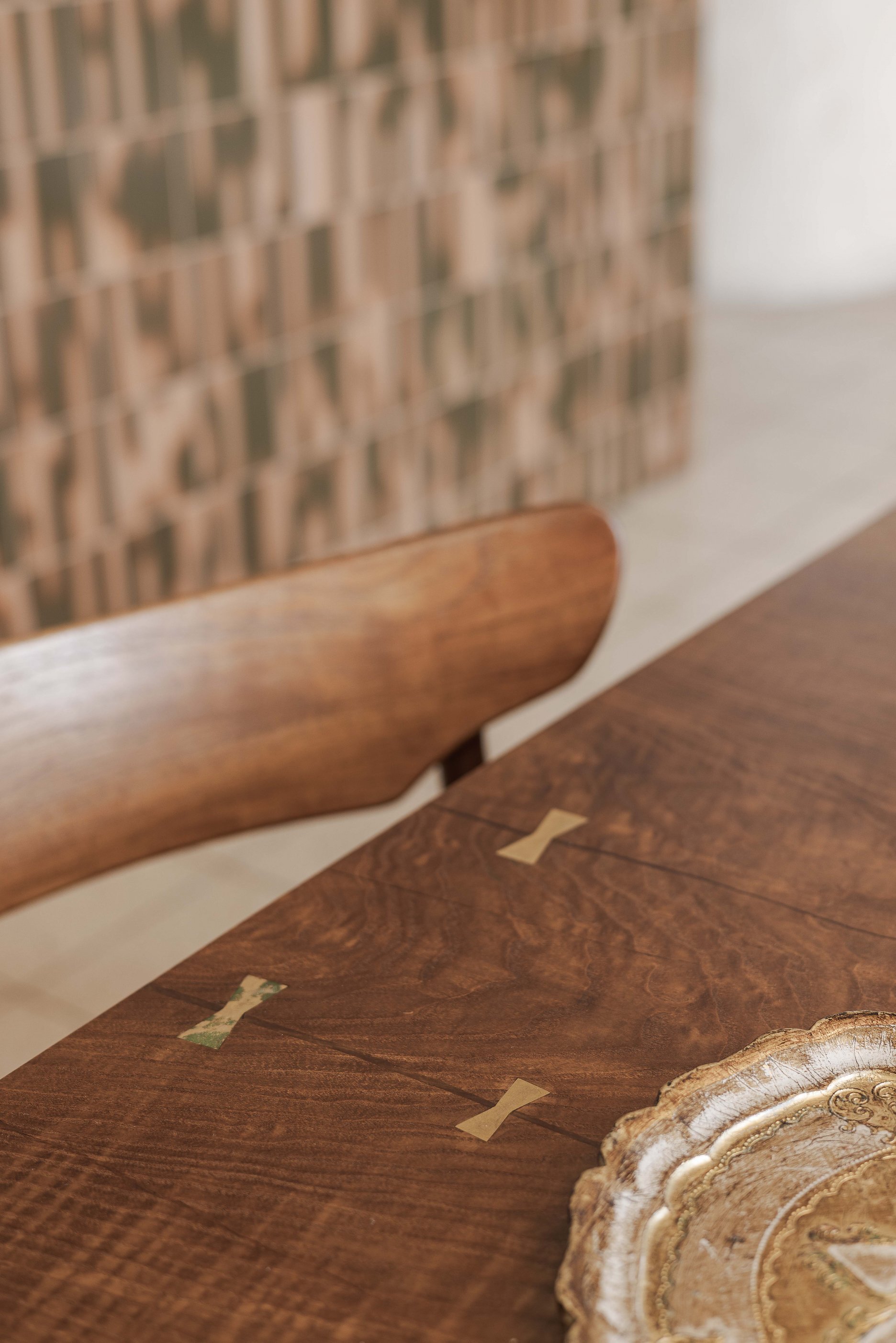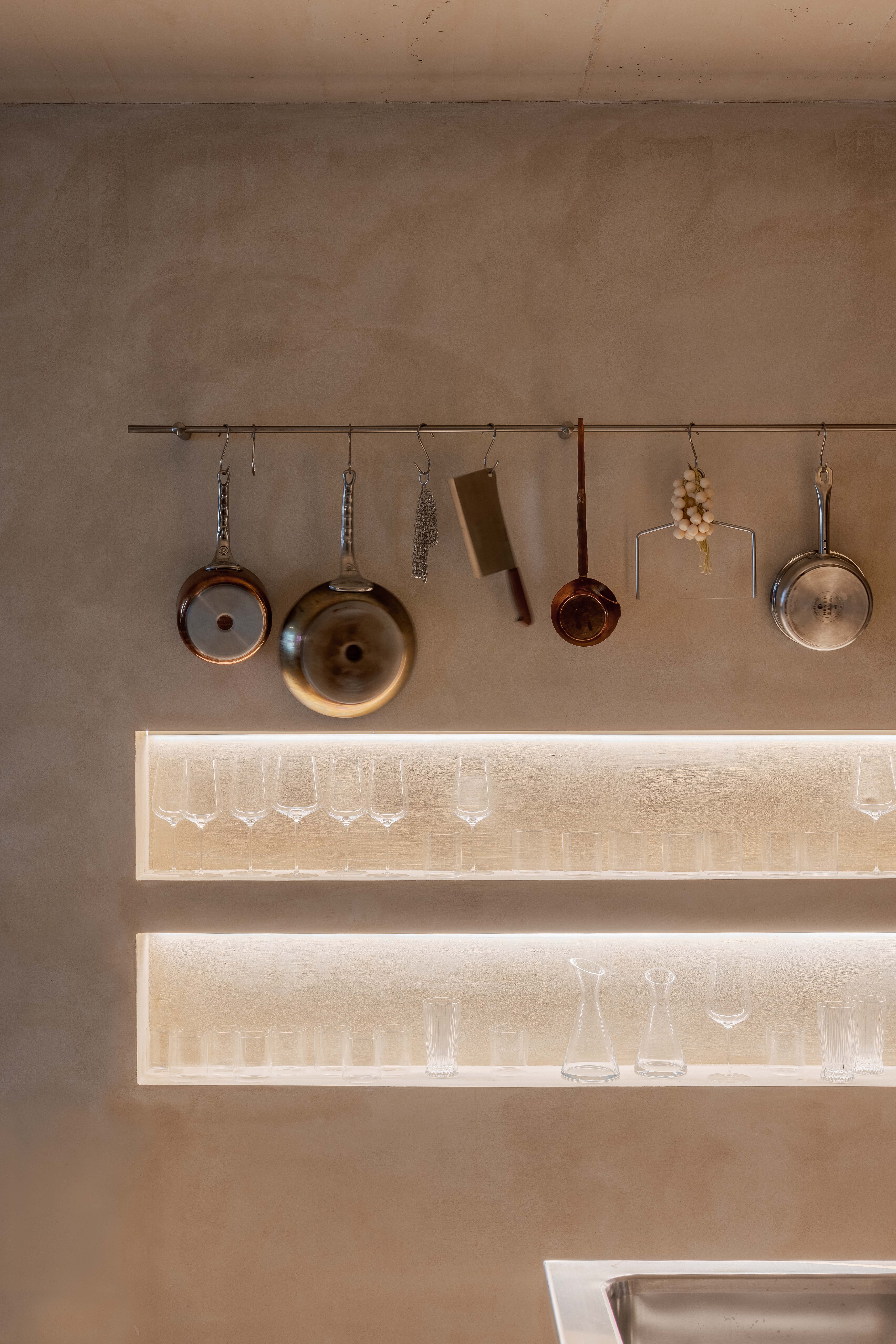 Za výberom mobiliáru stojí priamo investor a jeho vizuálne cítenie v súlade s duchom celého priestoru. V interiéri nájdeme tiež doplnky z burzy starožitností, obľúbený vydražený obraz, alebo fotografie od známych autorov. Konzumuje sa z ručne robených keramických tanierov aj pohárov z rodinného dedičstva. Každý jeden vložený prvok je originál, ktorý sa v priestore objavuje organicky no vždy s iným príbehom odrzkadľujúcim klientovu povahu.
