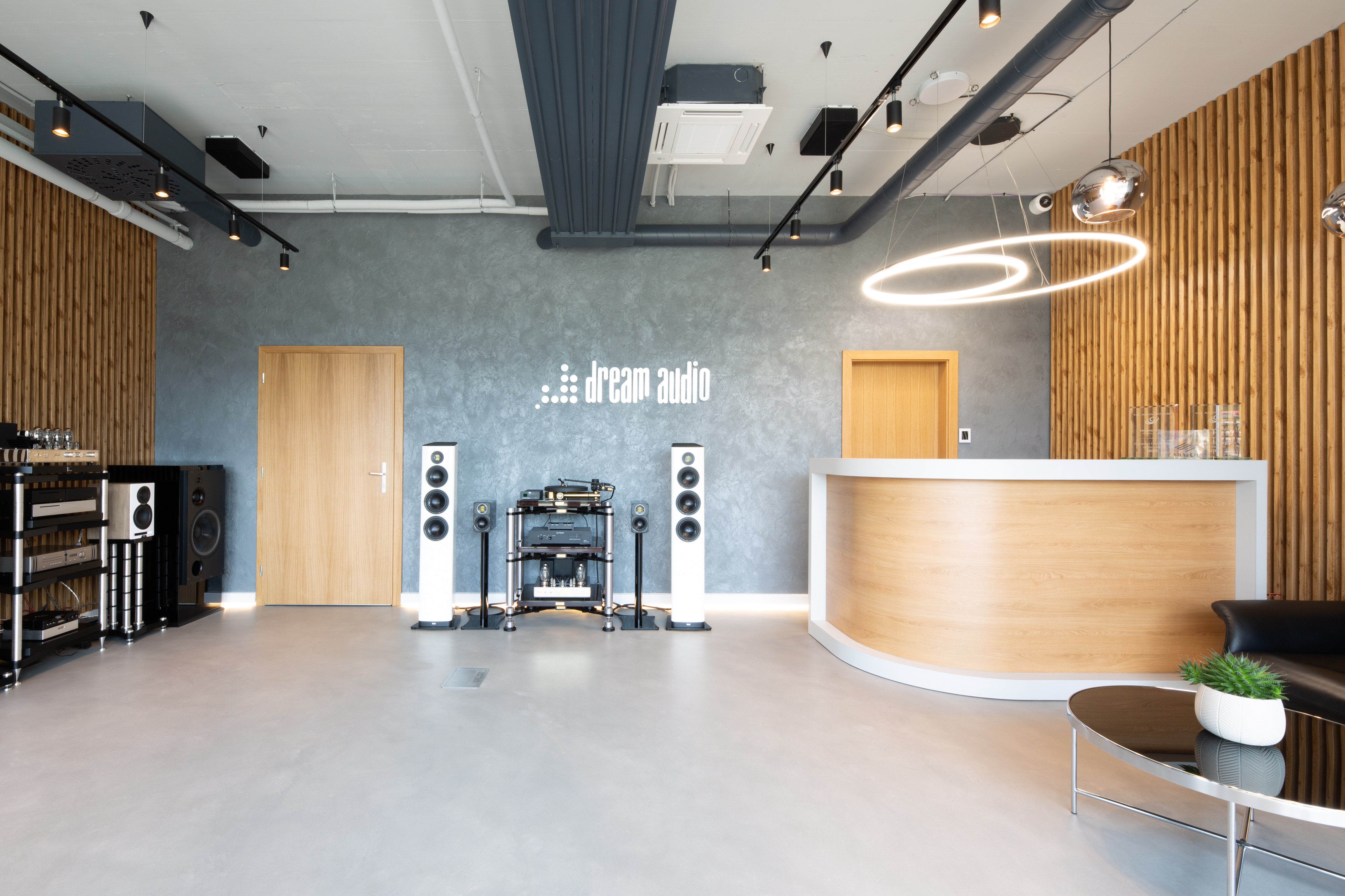 DreamAudio Showroom sa nachádza na prízemí novostavby polyfunkčného bytového domu Petržalka City 2 na Rusovskej ceste 46 v Bratislave. Vstup do prevádzky je od Chorvátskeho ramena cez celopreslenú fasádu, ktorá otvára výstavný priestor predajne verejnosti a zároveň ho príjemne dotvára svetelnou pohodou s výhľadom do zeleného parku.