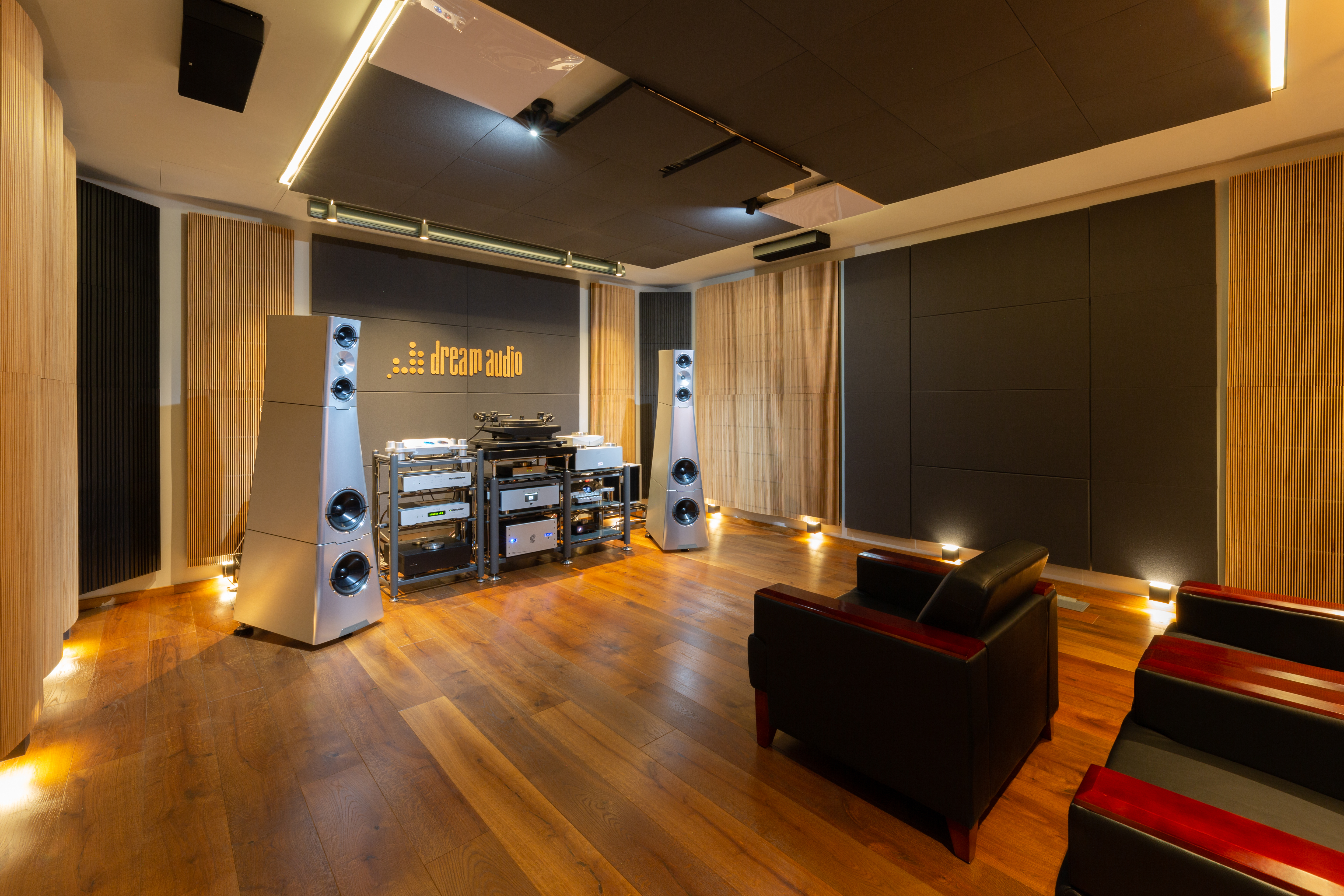 Posluchová miestnosť poskytuje dokonalý zážitok zo zvuku prezentovaného hudobnými komponentami najvyššej kvality aj vďaka dosiahnutej dobe dozvuku 0,25 sekundy. Zároveň svojim prevedením vytvára pocit pohodlia obývacej miestnosti, ktorá je citlivo doplnená svetelnou atmosférou pre zvýšenie celkového zážitku.