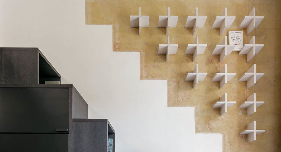 Do vinohradského dvacetimetráku se schoulil černý drak. Po jeho hřbetu je možné vyšplhat do spacího patra. Vnitro obludy skrývá malou koupelnu zářící skrze průsvitné drátosklo. Celý obytný prostor je pak světlý a prostorný, sem tam se objeví původní omítka.