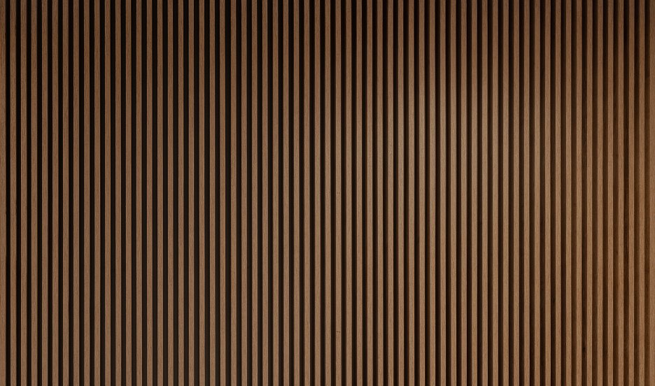 Interiér s prevládajúcimi prírodnými materiálmi je ladený do svetlých tónov, najmä v kombinácii sivej, bielej a kresby masívneho dreva. Výrazným prvkom je lamelová stena situovaná za čalúnenou posteľou.