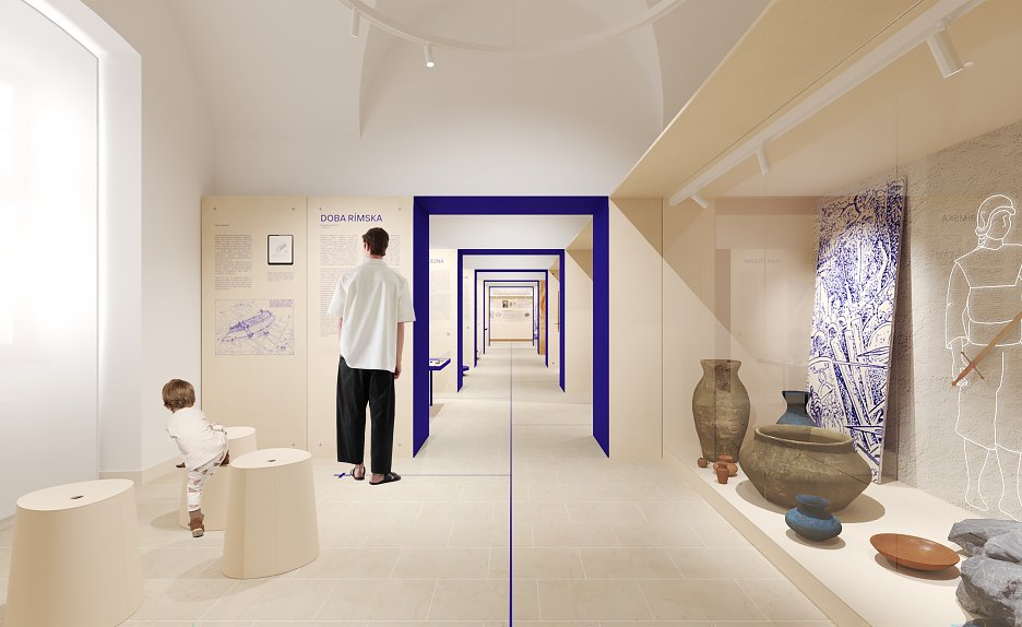 V každej miestnosti sa nachádza dostatok vitrín vzhľadom v prezentovanému časovému obdobiu. V miestnostiach, kde je prezentované iba 1 časové obdobie, bolo možné doplniť okrem vitrín aj napr. premietanie, alebo oddychovú zónu so sedením.