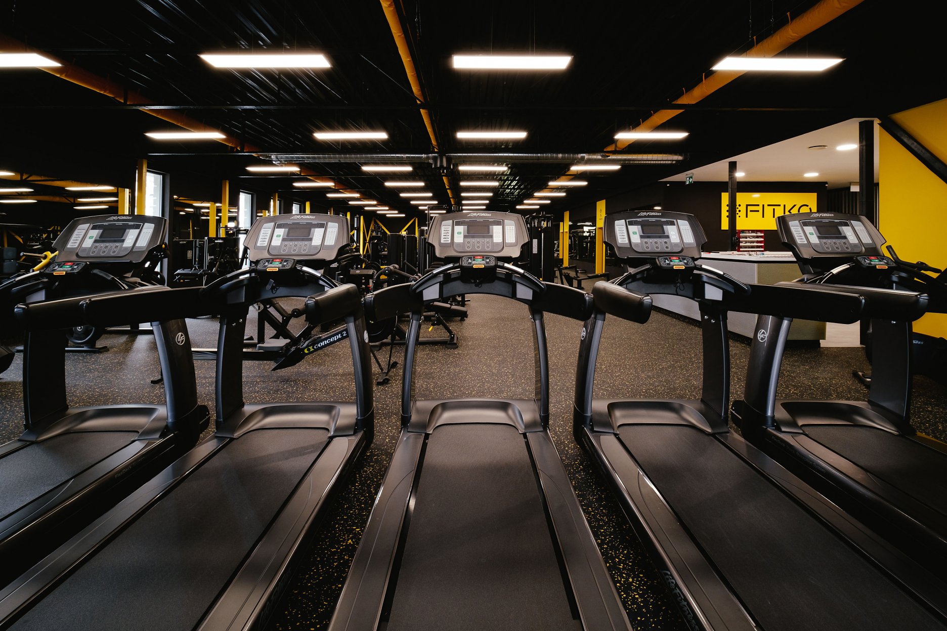 Atmosféru v interiéri navodzuje materialita a farebnosť vnútorných konštrukcií. Odhalené stropné priehradové väzníky sú natreté na čierno. Stenové stužidlá, stĺpy a rozvody vzduchotechniky kontrastujú (v duchu komplementárnosti) výraznou žltou farebnosťou. Oceľové konštrukcie dopĺňa perforovaný plech, tvoriaci čelo barového pultu a povrch stien vo vstupných a komunikačných priestoroch. Kompozícia perforovaného materiálu sa kontinuálne prelieva do typografického dizajnu samotného loga – FITKO. Farebnosť priestorov Posilňovne sa nesie v odtieňoch žltej, čiernej a sivej. Na jednej strane príjemné, na strane druhej stimulujúce.