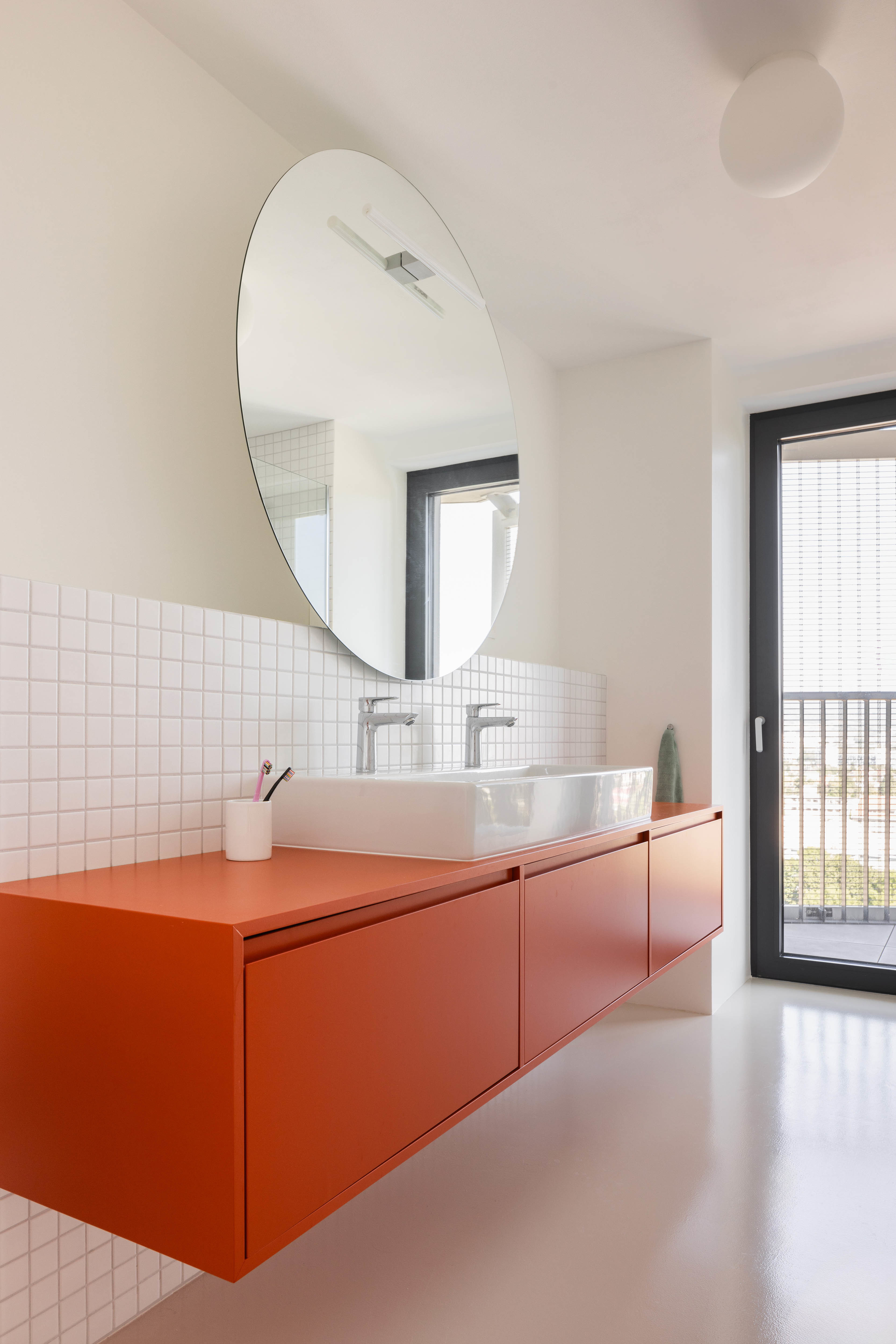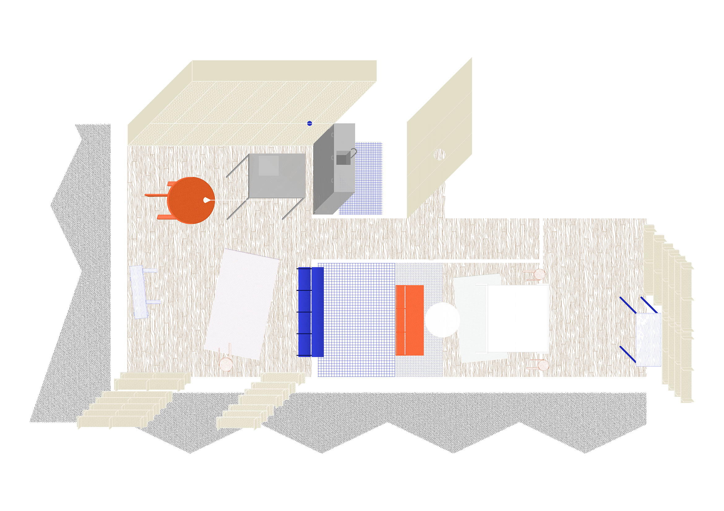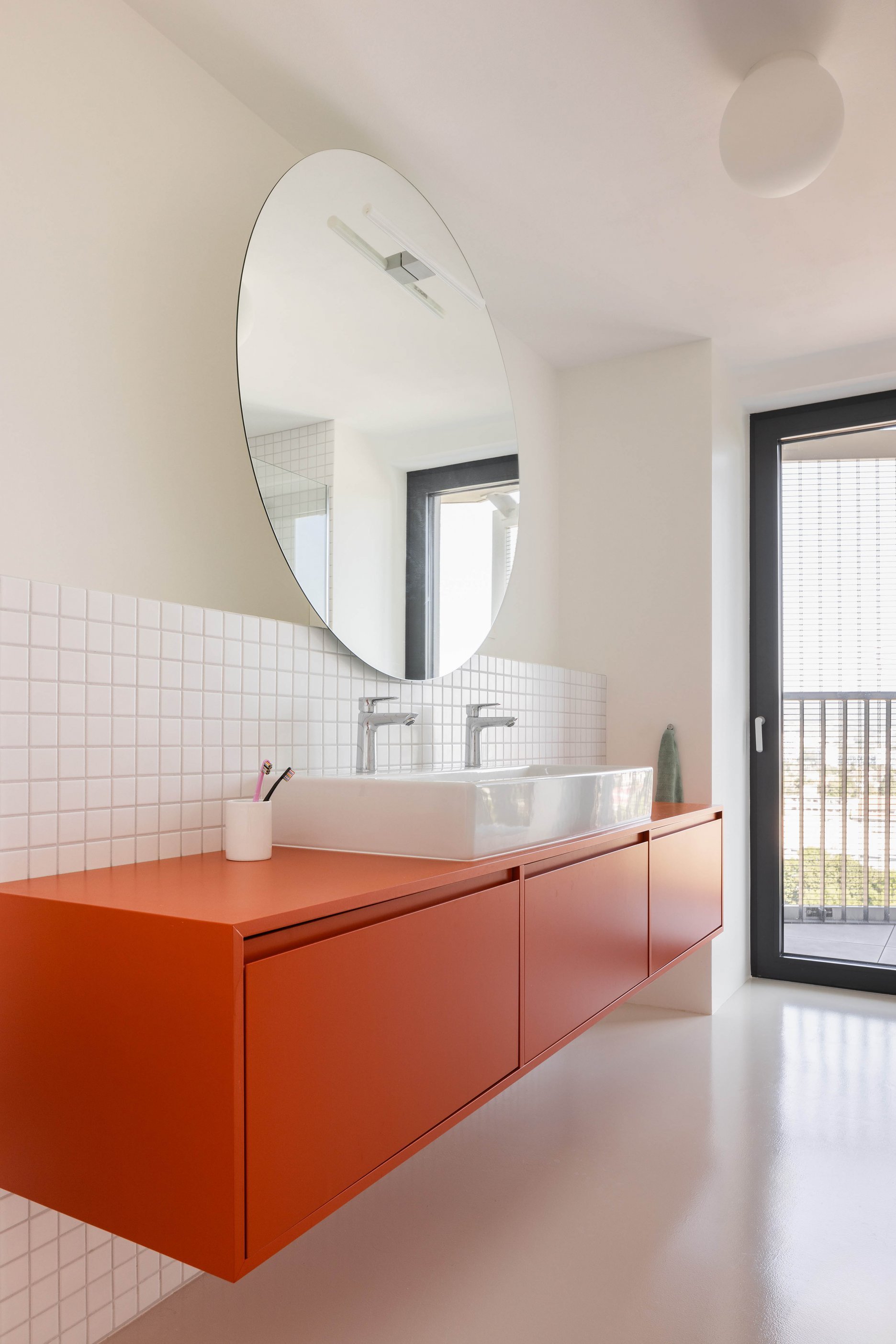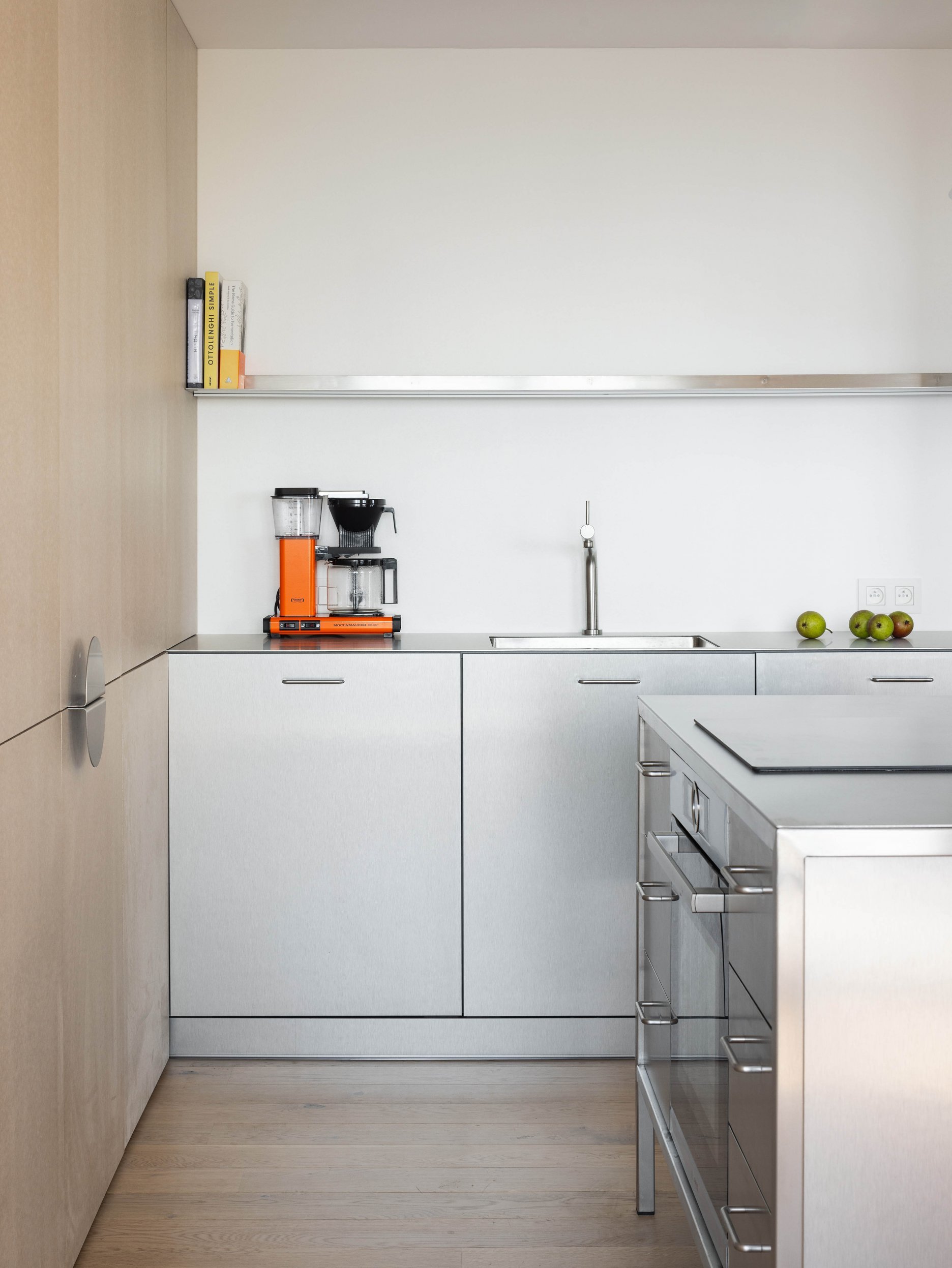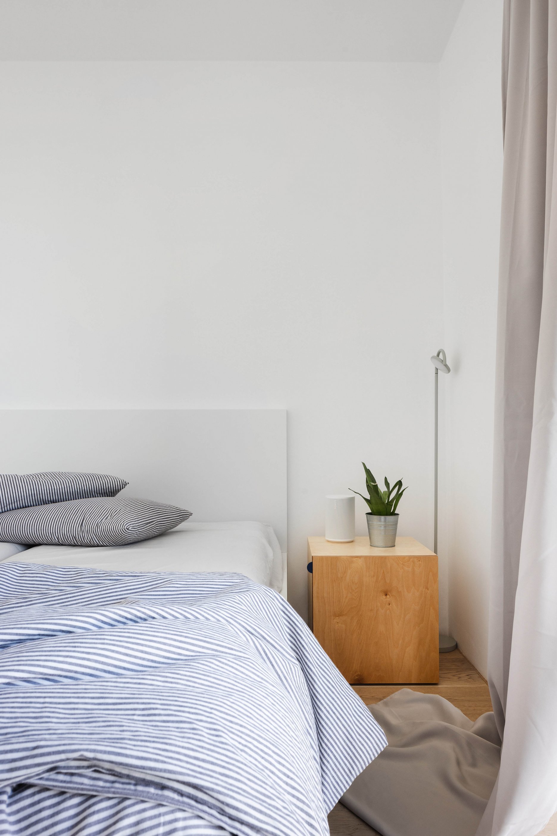 Byt v projekte Guthaus je nie celkom obvyklým zjavom medzi súčasnými novostavbami, hlavne vďaka jeho obytnej ploche a priebežnému balkónu po jeho obvode. Koncepčne sa nesnažíme o nachádzanie novej formy alebo princípu, ale prirodzene vstupujeme do už existujúceho pôdorysu. Celková transformácia spočíva v jednoduchom včlenení materiálov bez komplikovaných stolárskych prvkov a ich formou vytvárame čistý a nerušený priestor. V obývacej časti bytu si kontrujú objemný úložný priestor kuchynskej časti s objemnou no ľahkou knižnicou. V priestore medzi nimi sú scénicky rozložené funkčné stolárske objekty ktoré definujú využitie daného priestoru. Zároveň svojou subtílnosťou nevytvárajú vizuálnu prekážku. Nočná časť bytu je oprostená od zbytočného dizajnovania a ponúka nerušený čistý priestor pre spánok.