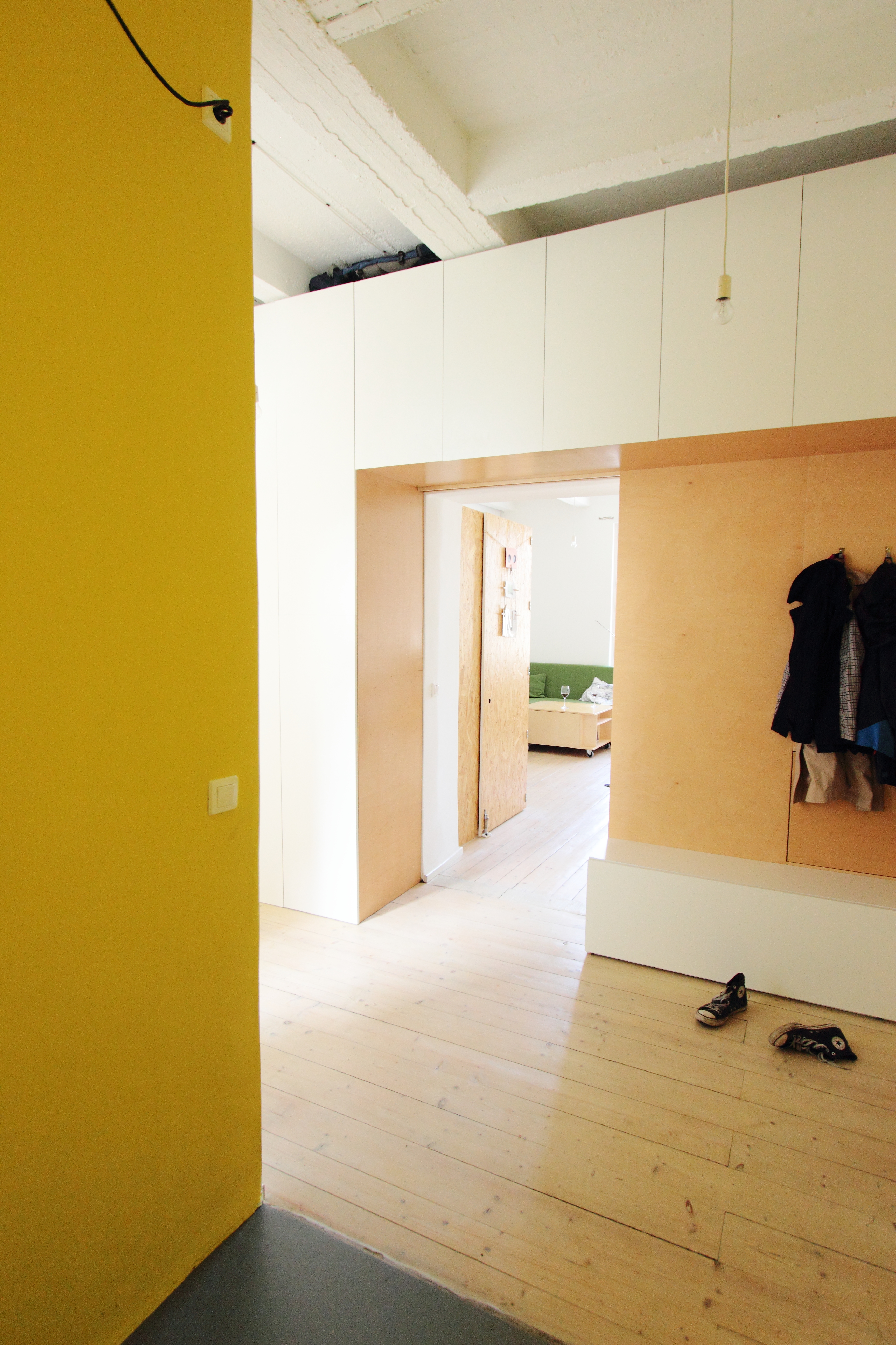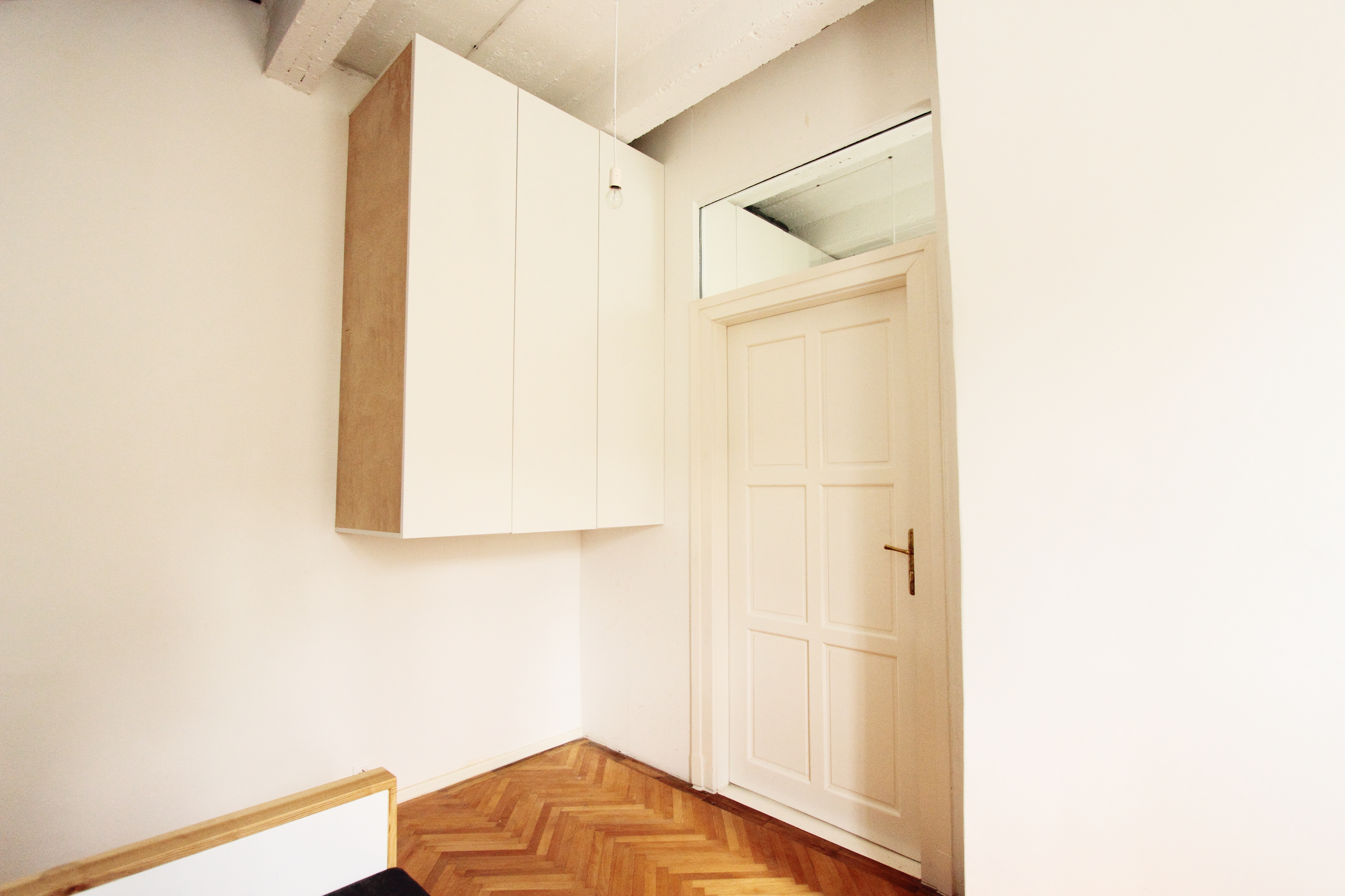 V tomto prípade sme v an!arch dostali zadanie inak ako zvyčajne. Klient prišiel s požiadavkou na kúpu bytu, ktorý by sa dal z dvojizbového prerobiť na trojizbový. Mal byť v dobrej lokalite, v starom tehlovom dome s vysokými stropmi. Vybrali sme a kúpili zašlý byt na treťom poschodí parádneho domu v tichej štvrti pri rozhlasovej pyramíde na Povrazníckej. Výhľad z obývacej izby na os Záhrebskej ulice presvedčil aj klienta, že to je on.