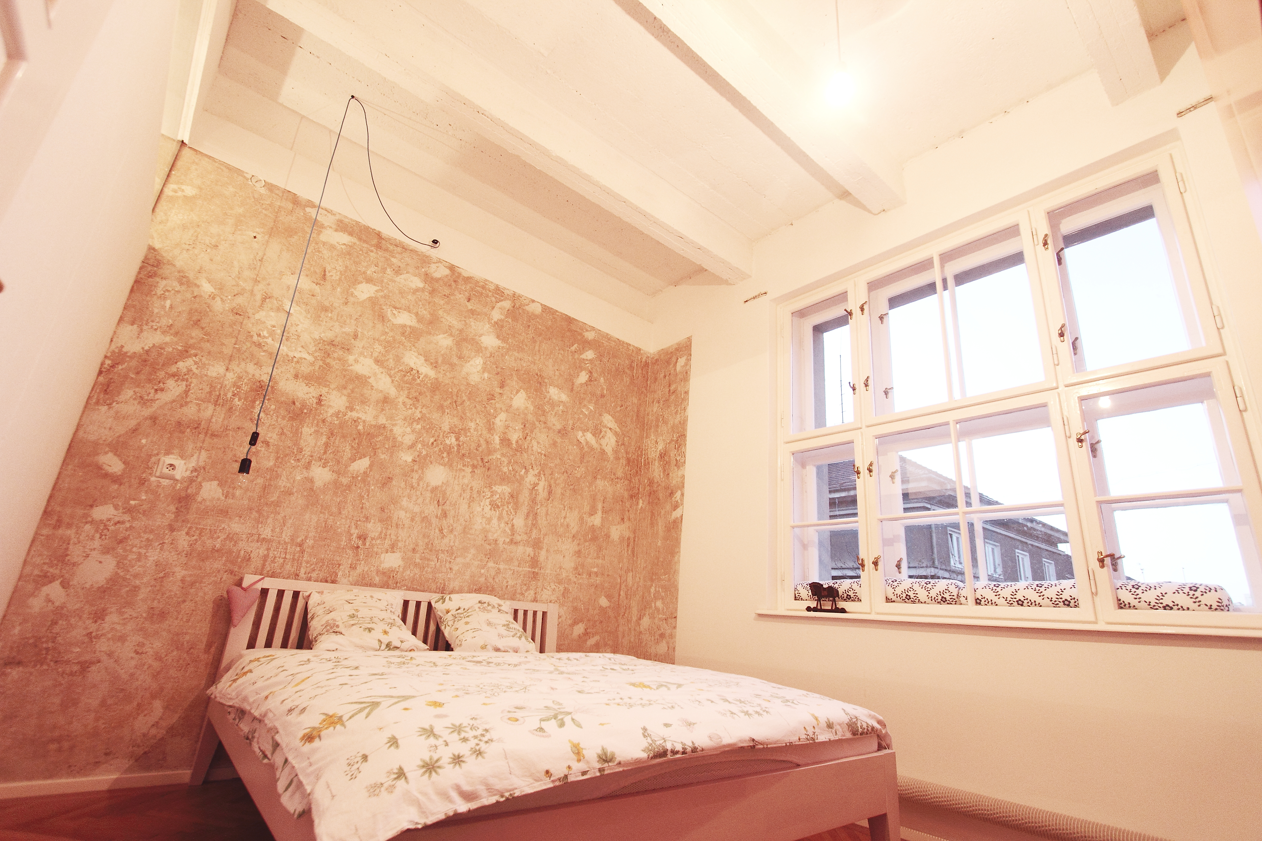 Pri stavebných prácach sme postupne odkrývali hodnotné pôvodné materiálové prvky a riešenia. Pod stierkou sa ukázala pôvodná maľovka, pod linom stará palubovka, pod nánosmi prachu parádne historické okná s pôvodnými kovaniami. A pod rákosovým podhľadom ďalších 30cm vzduchu pomedzi betónový trámový strop.
