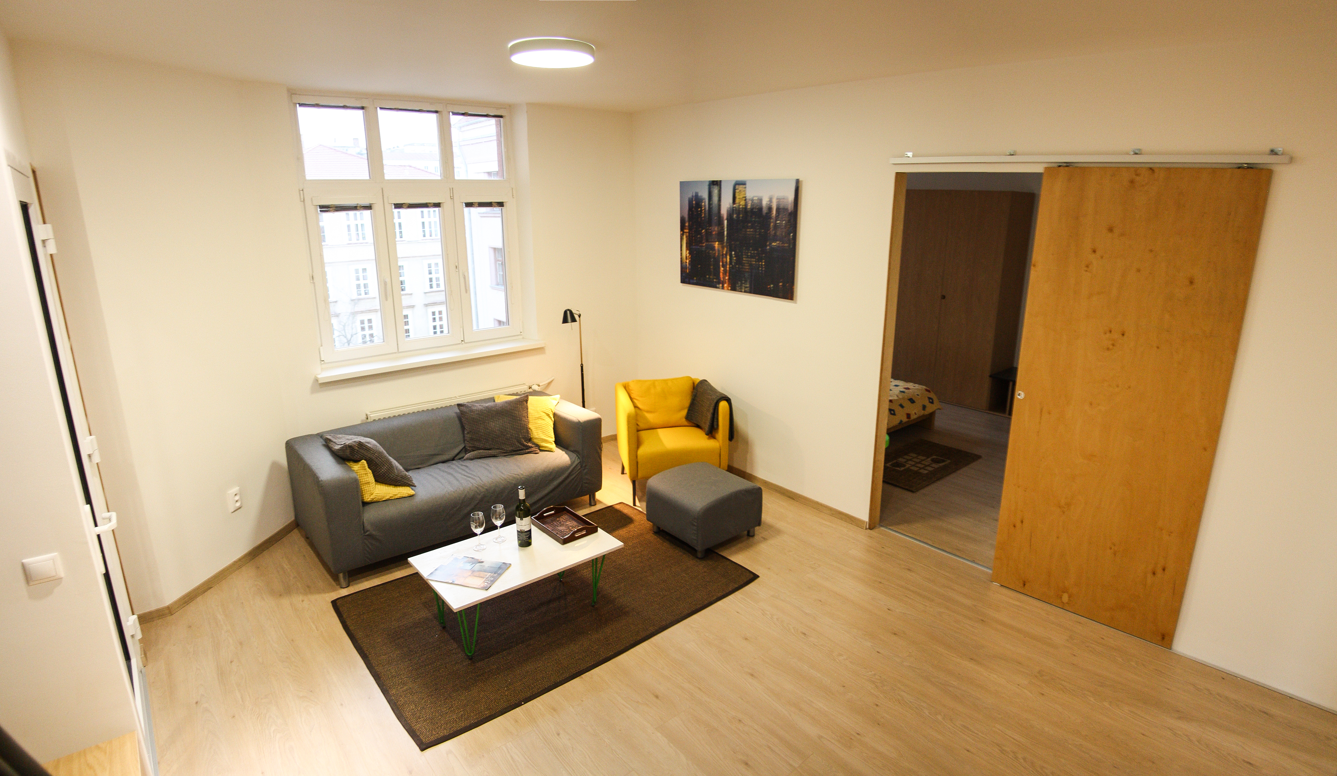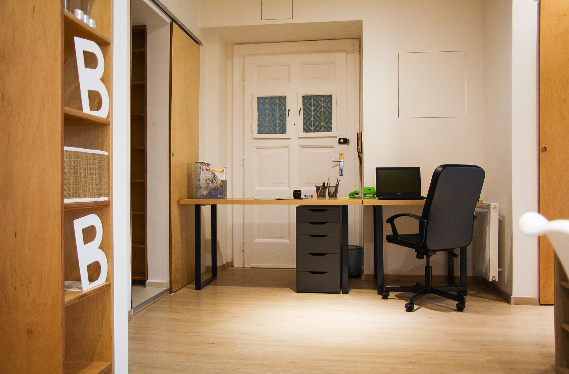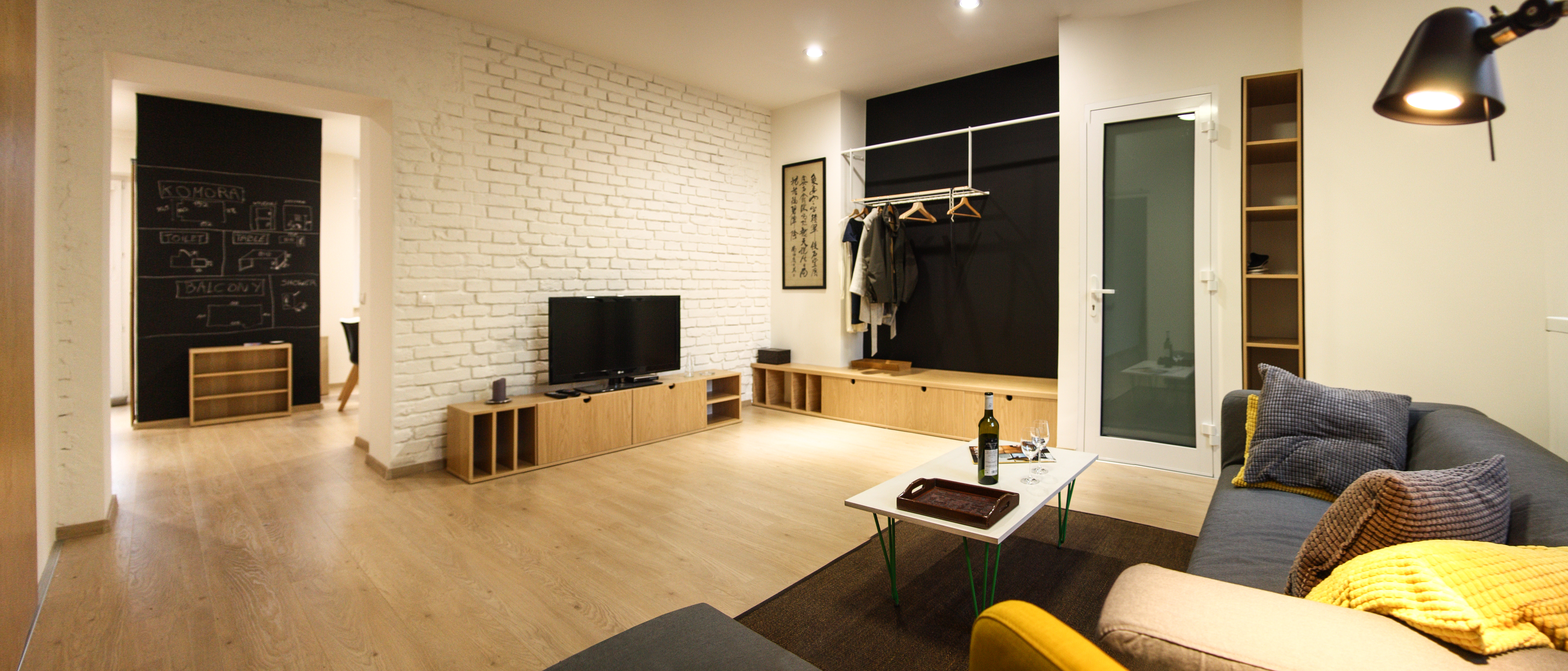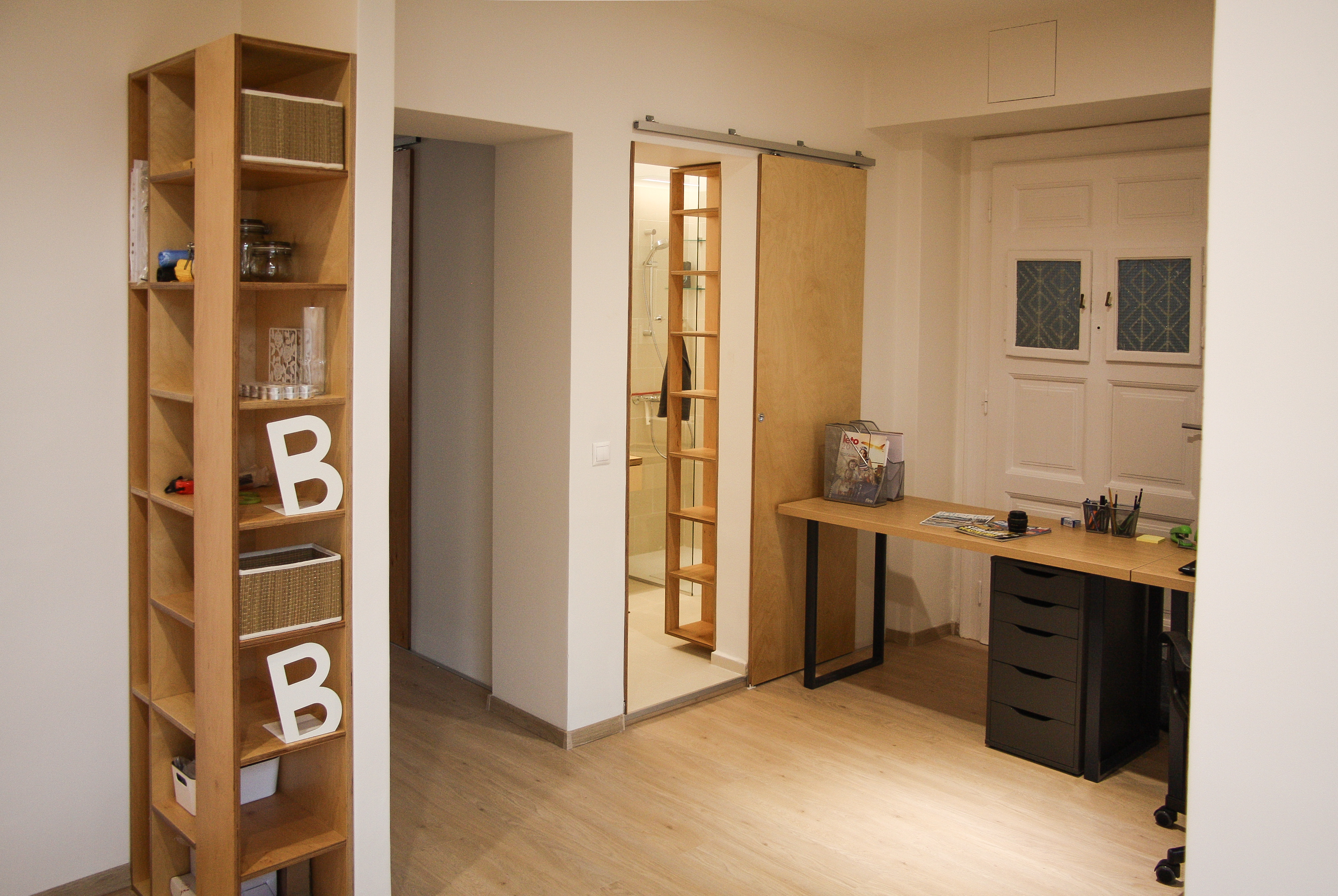 Pôvodne pomerne tmavý, 2,5 izbový byt v dome z 20‐tych rokov minulého storočia prešiel kompletnou rekonštrukciou. Nevyhovujúca dispozícia, nedostatok svetla a v neposlednom rade vek samotnej budovy sa podpísali na pôvodnom vizuálnom dojme. Využiť potenciál lokality bolo možné len kompletnou premenou - nové rozvody, podlahy, omietky, podhľady aj zmena usporiadania priestoru. Keďže už od začiatku sa počítal s využitím bytu na prenájom, tejto požiadavke bolo výrazne prispôsobené dispozičné riešenie ako aj celkov rozpočet.