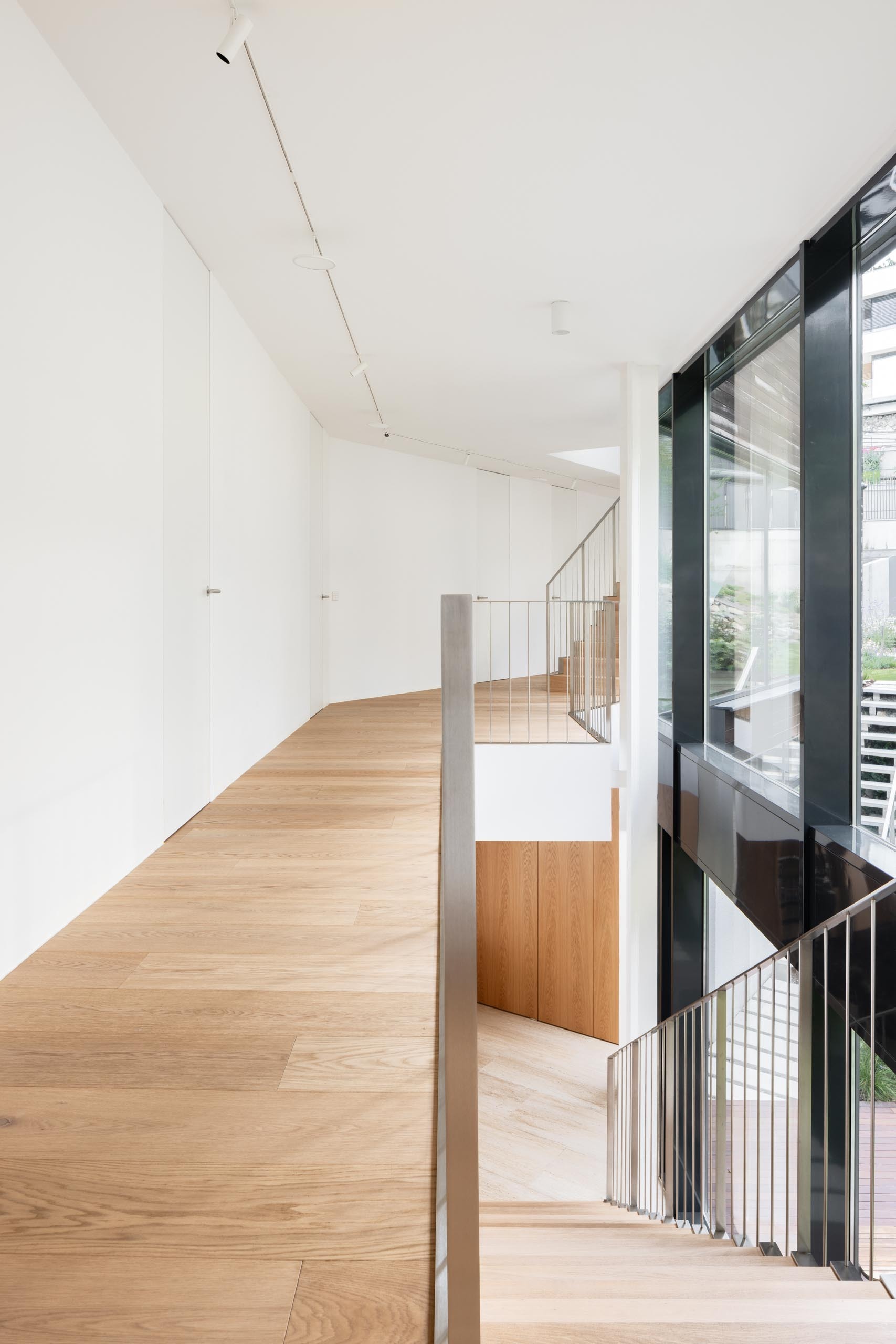 Realizácia interiérov kolektívom GRAU rozvíja potenciál domu, ktorý vznikol ako súčasť drobného developmentu na Korabinského ulici, v strmom svahu pod areálom VŠVU.
