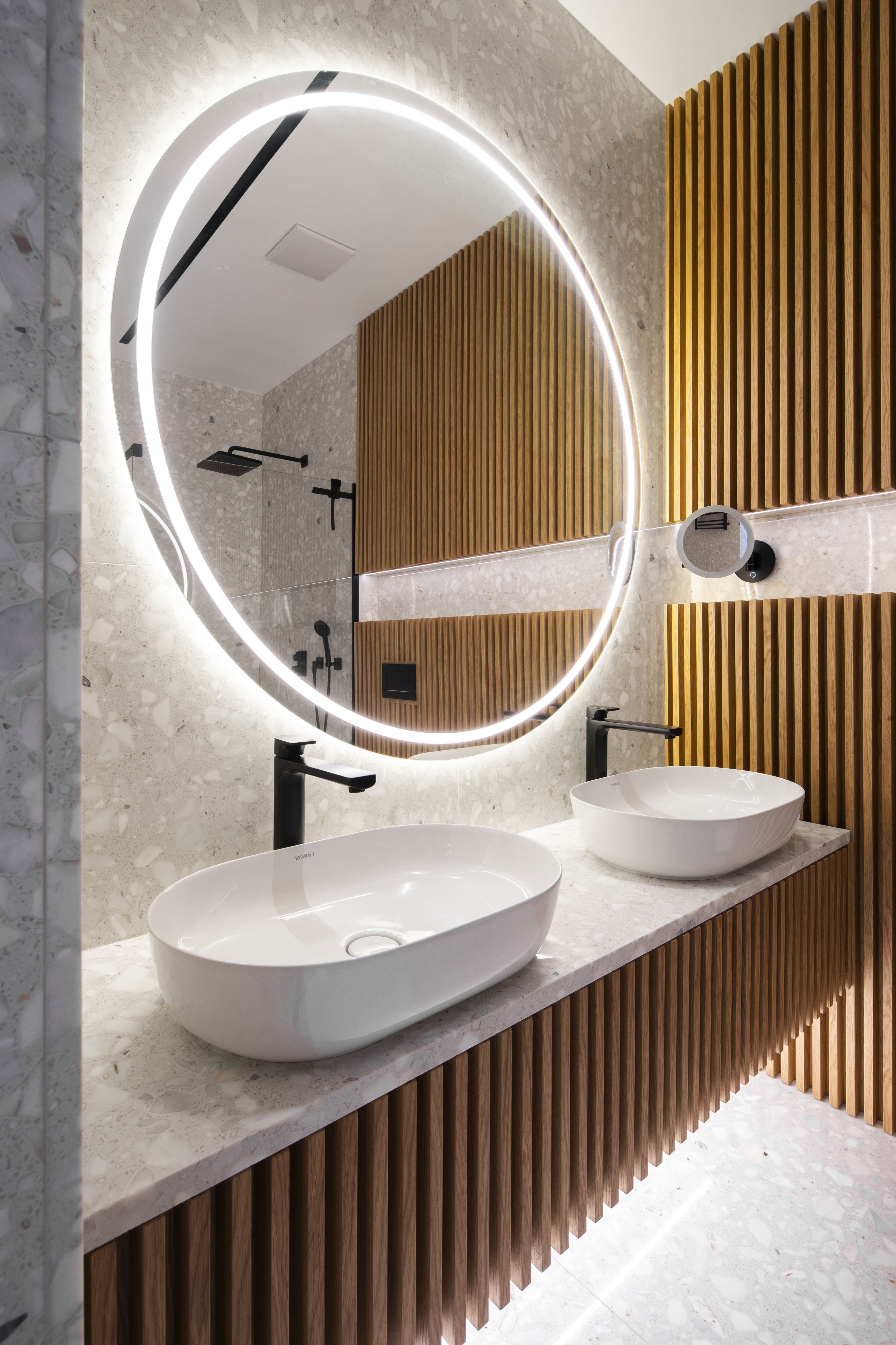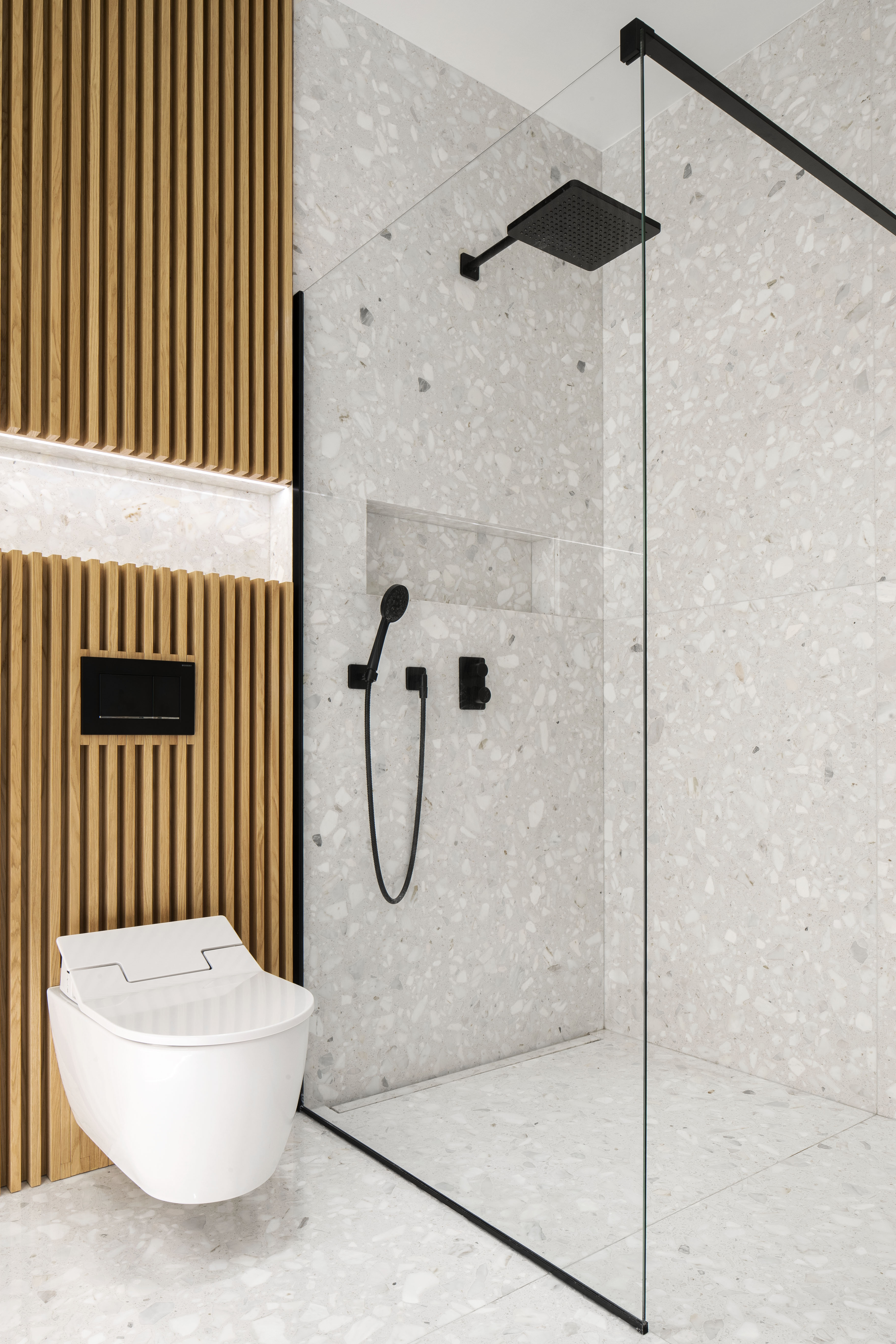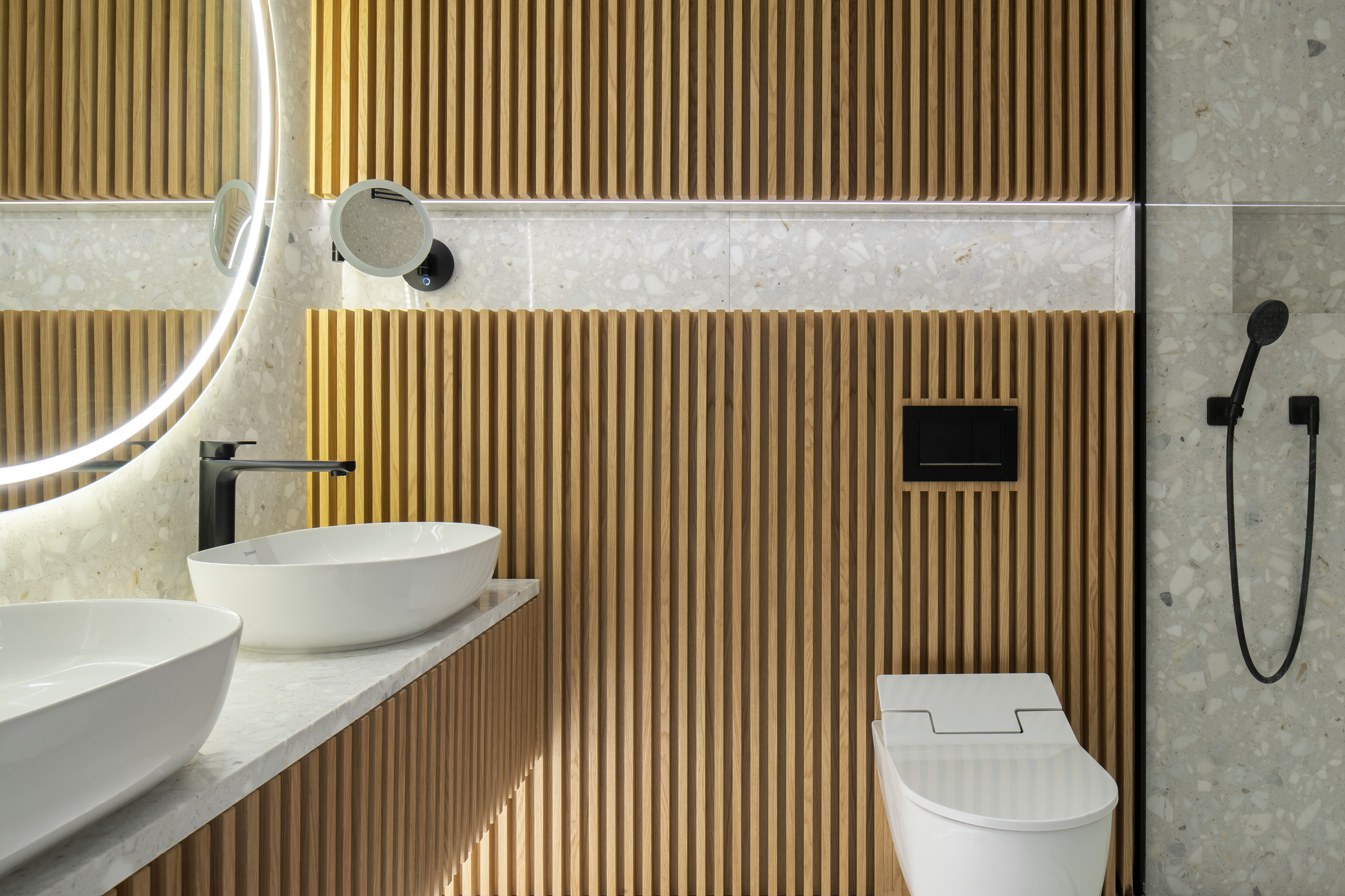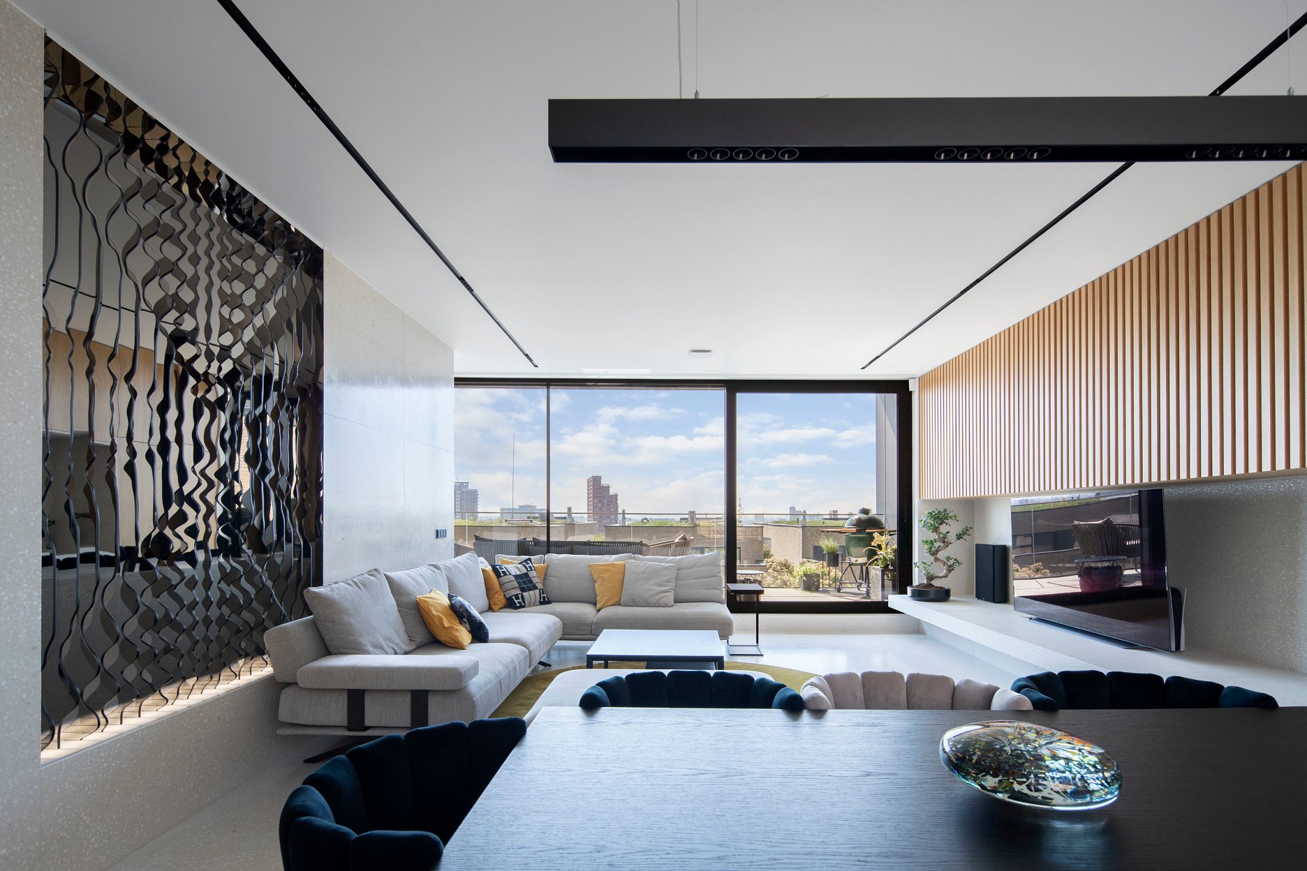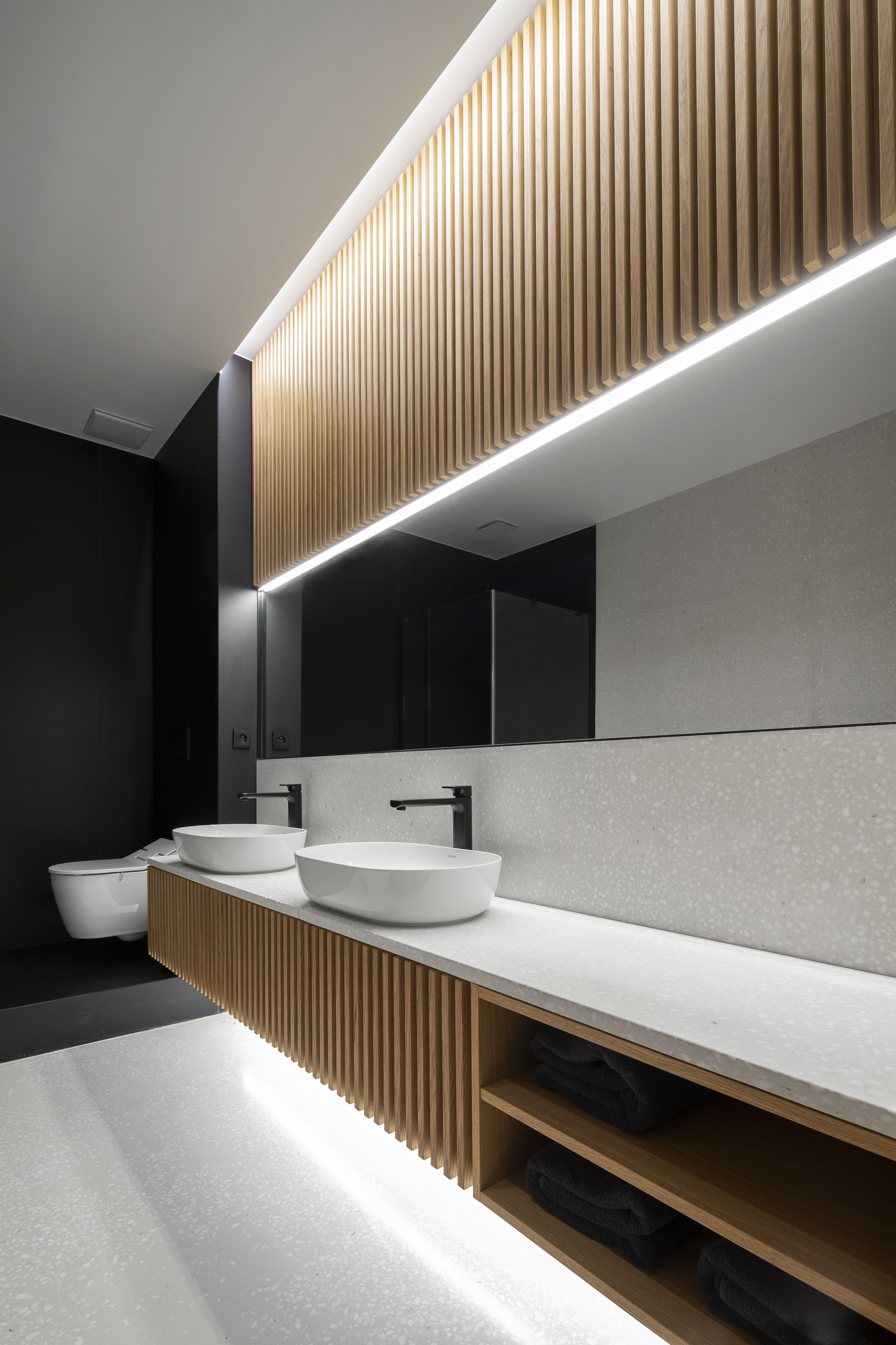 Veľkometrážne bývanie s výhľadom na panorámu Bratislavy v súbore ELEVEN Houses. Ateliér cakov+partners navrhol interiér s výmerou 180 m2 ako náhradu za dom v bratislavskom satelite. Návrh využíva pôvodnú dispozíciu a priestorovú logiku. Necháva vyznieť otvorený priestor so svetlou výškou tri metre, výhľad z obytných priestorov, alebo vlastné átrium. Dominantné terazzo, použité na podlahách, stenách a ako súčasť nábytkových prvkov, dopĺňa prírodná textúra dreva.