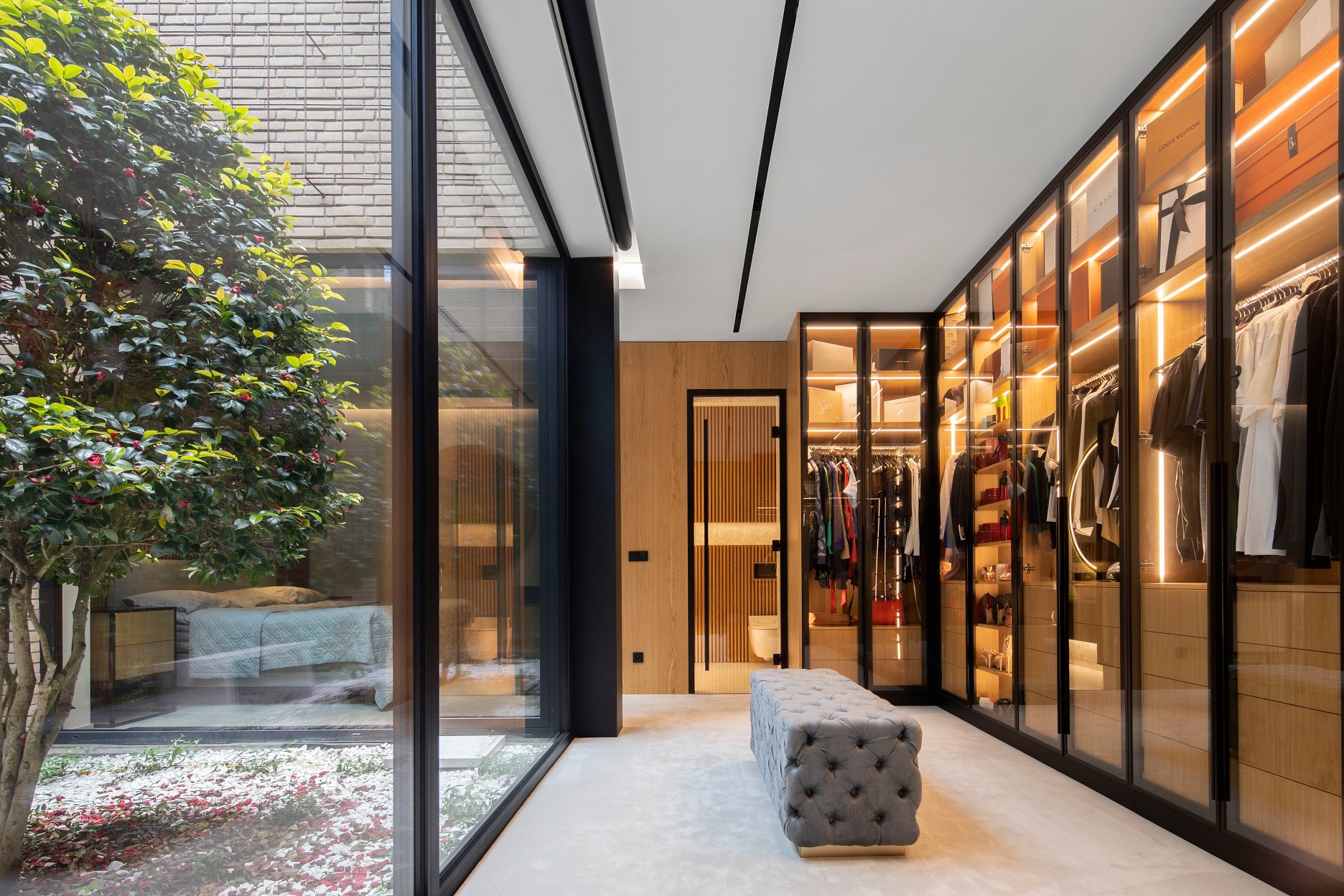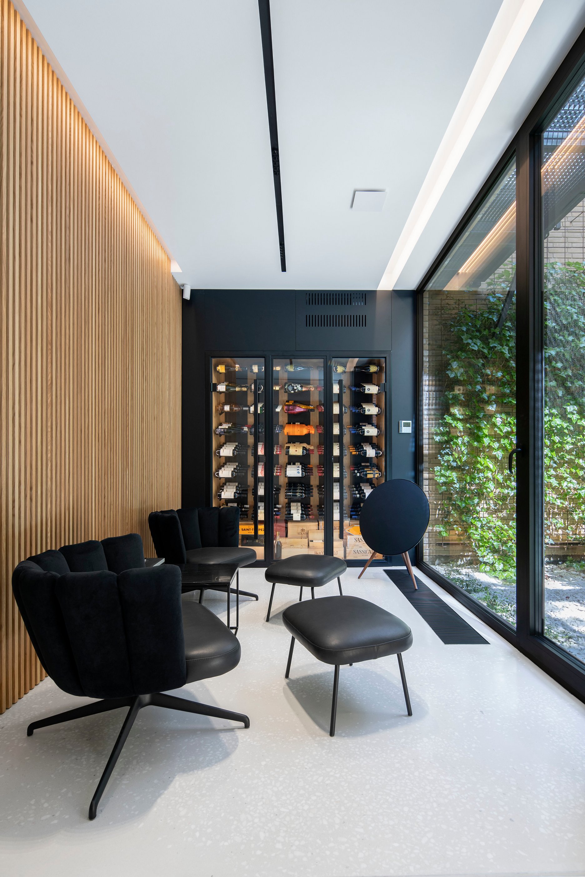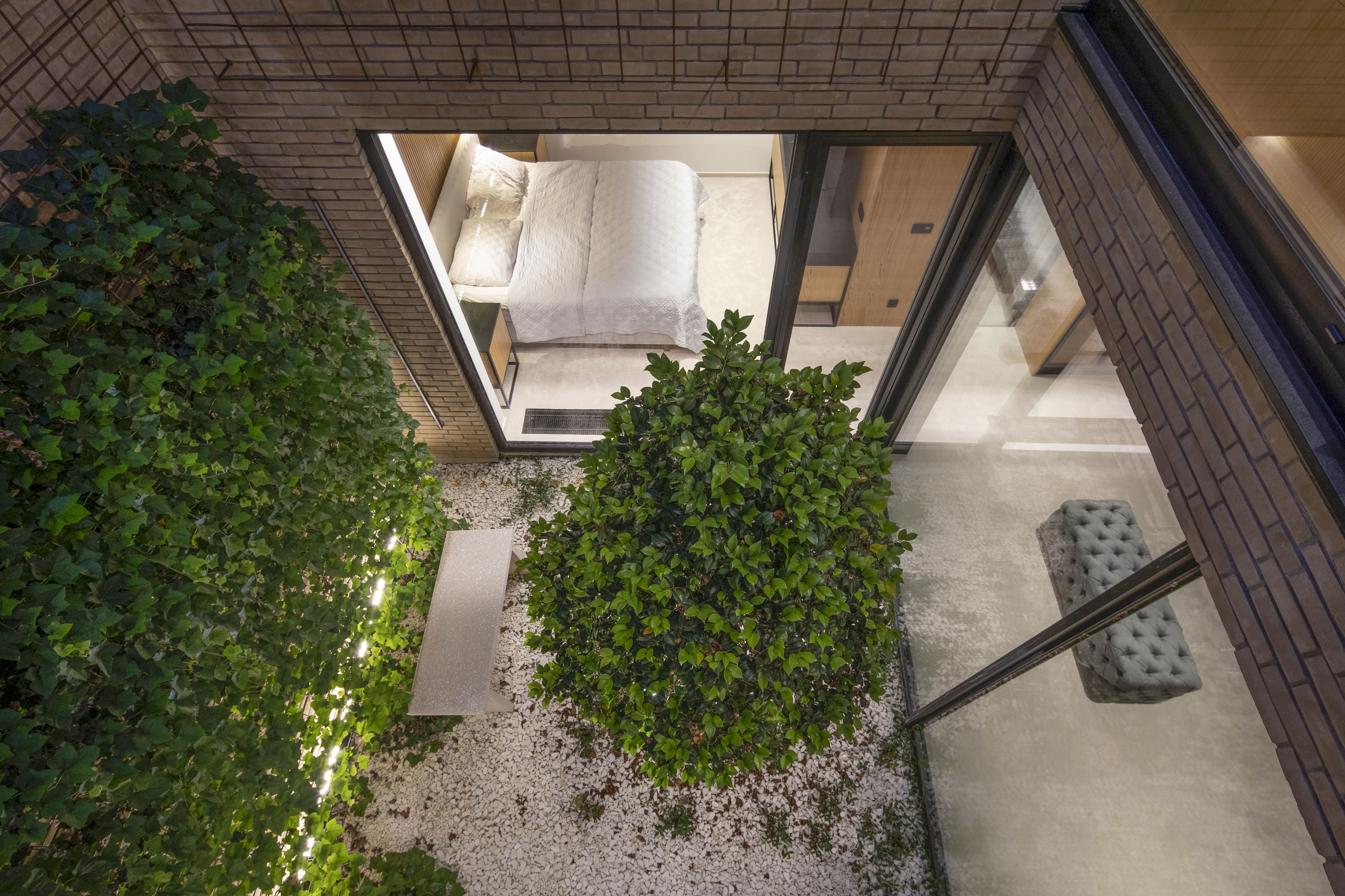 O poschodie nižšie sa nachádza nočná časť. Okolo átria sú usporiadané spálňa so šatníkom, kúpeľňa a vinotéka. Francúzske okná plynulo prepájajú priestory s exteriérom a opticky ich zväčšujú. Miestnosti zapustené do terénu majú príjemnú klímu, čo sa prejavilo najmä počas posledného horúceho leta. Naviac, sú izolované od hluku mesta.
