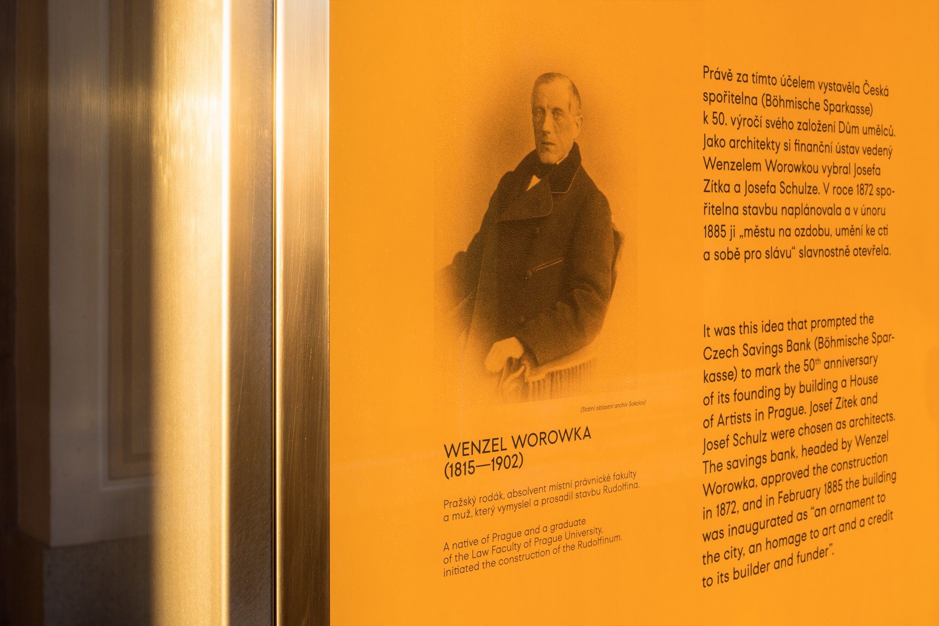 Projekt nadviazal na víťazný návrh vo vyzvanej súťaži, usporiadanej na prelome rokov 2018 a 2019 organizáciou CZECHDESIGN. Zámerom vyhlasovateľa bolo bolo otvoriť priestory predsália filharmónie pre verejnosť aj mimo času konania koncertov. Zadanie od Českej filharmónie zahŕňalo vytvorenie expozície o histórii budovy a redizajn obchodu so suvenírmi. V súťaži zvíťazil návrh Lenky Míkovej, ktorý nadviazal na pokorný prístup inak avantgardného architekta Karla Pragera pri generálnej rekonštrukcii budovy v 90.rokoch 20.storočia.