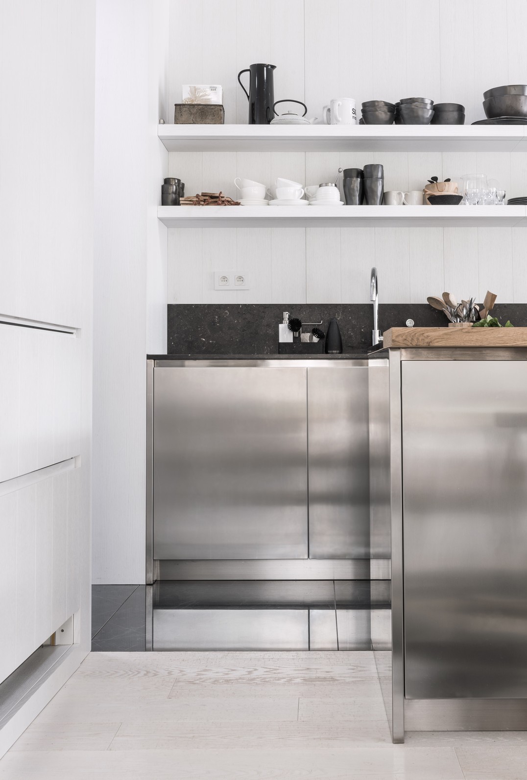 Biela farba je použitá v mnohých odtieňoch a štruktúrach na drevených olejovaných podlahách, na hrubo brúsenom dubovom nábytku alebo bielom mramorovom obklade. Prechádza aj do textilu - biely ľan na obliečkach a závesoch. To všetko v kombinácii s detailmi z masívneho dreva.