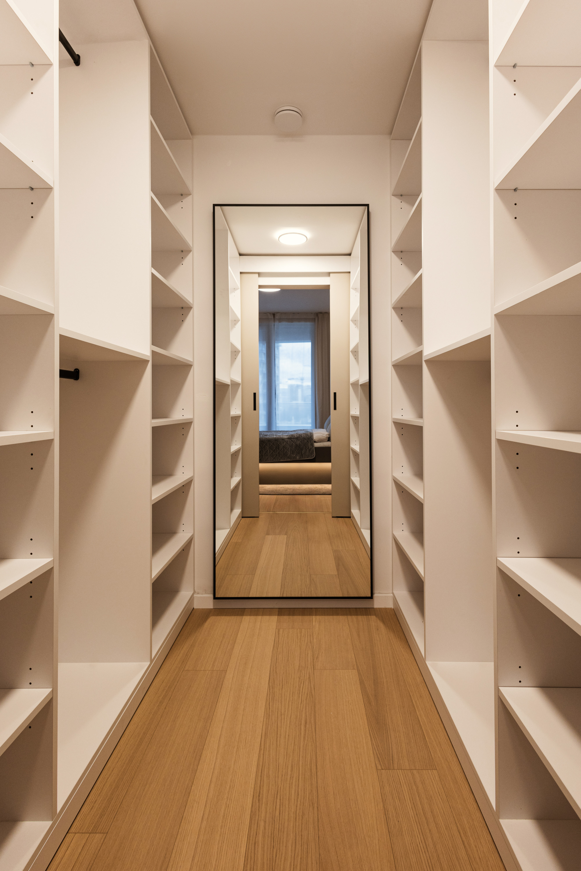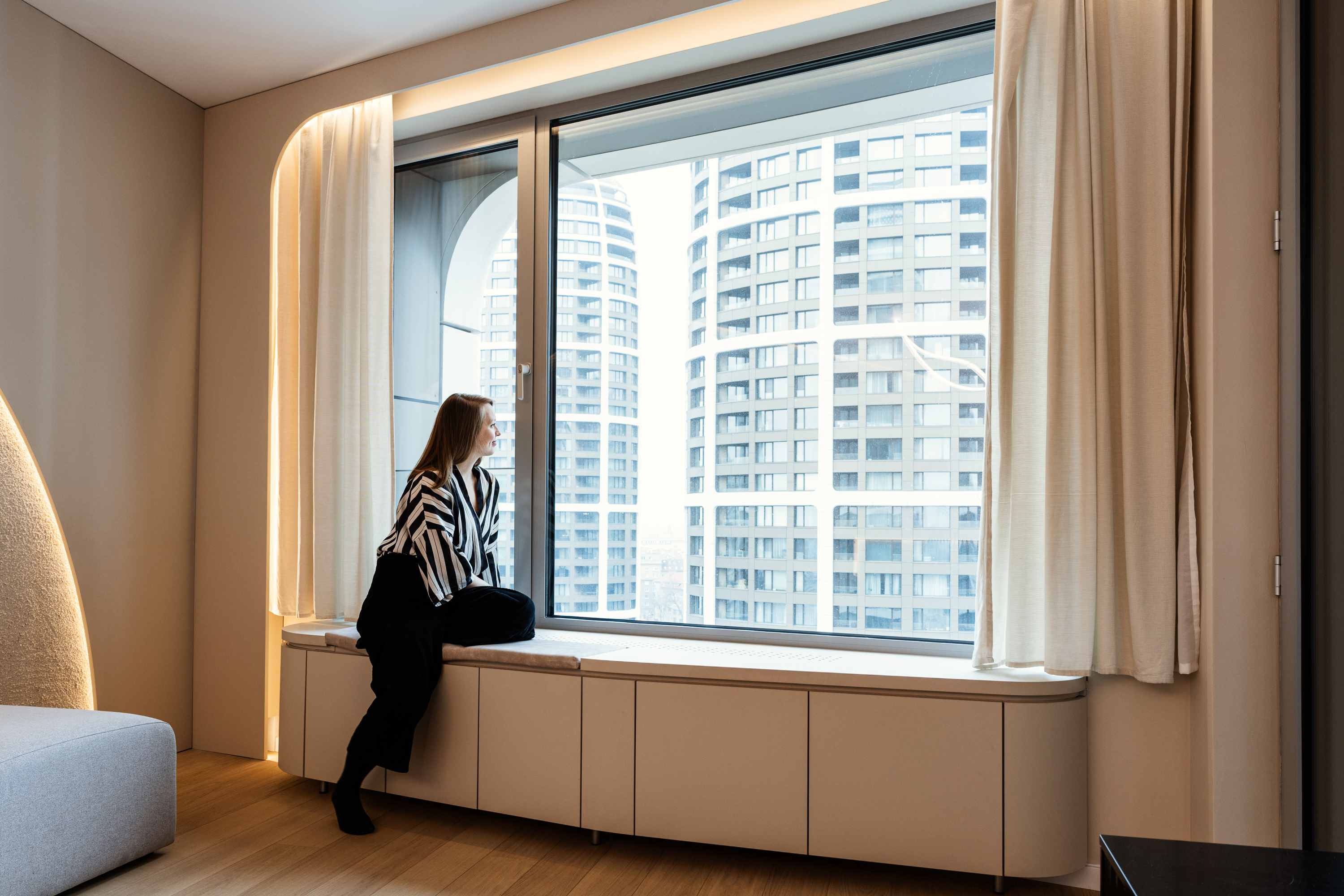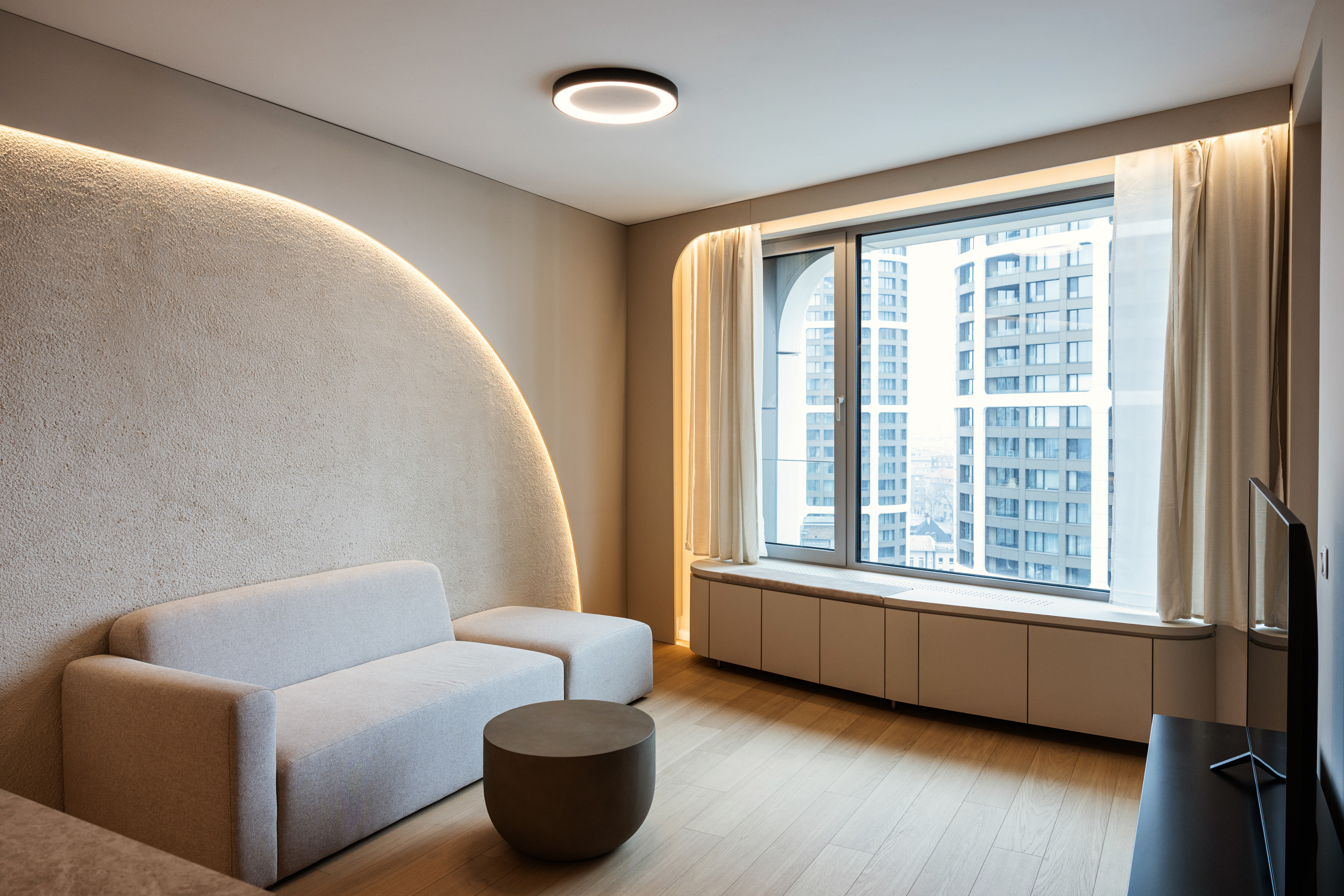 V bytovom komplexe Sky Park (veža č. 4) sme od nášho dlhodobého klienta dostali príležitosť navrhnúť a realizovať dva takmer identické dvojizbové byty. Obe jednotky sme riešili s rovnakým dizajnovým rukopisom. Základný koncept rozvíja témy, ktoré priniesla samotná architektúra ateliéru Zaha Hadid Architects – oblé, organické tvary a hra so svetlom. Tieto prvky sme sa snažili preniesť do interiérov.