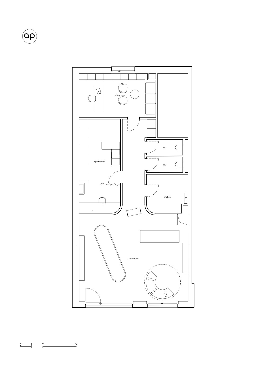 Showroom pre obchod s nezávislým dizajnom okuliarov. Nejedná sa len o klasickú prevádzku optiky, ale o vytvorenie priestoru pre nezávislý dizajn. Architektúra interiéru sa odvoláva na vystavené produkty - rámy z prírodných materiálov, ktoré vznikajú ručnou prácou. Základ materiality interiéru tvoria hlina, drevo a oceľ.
