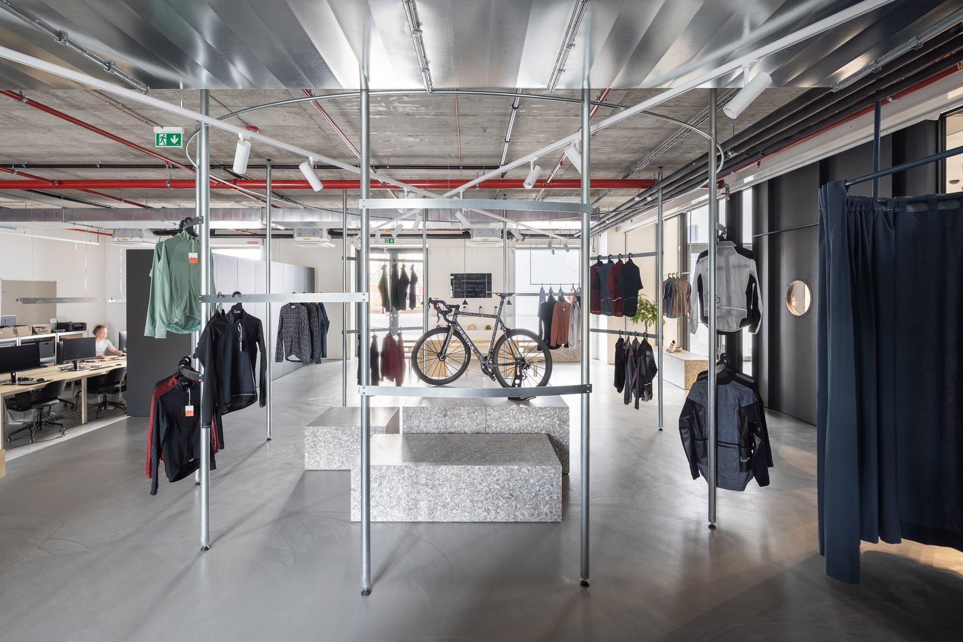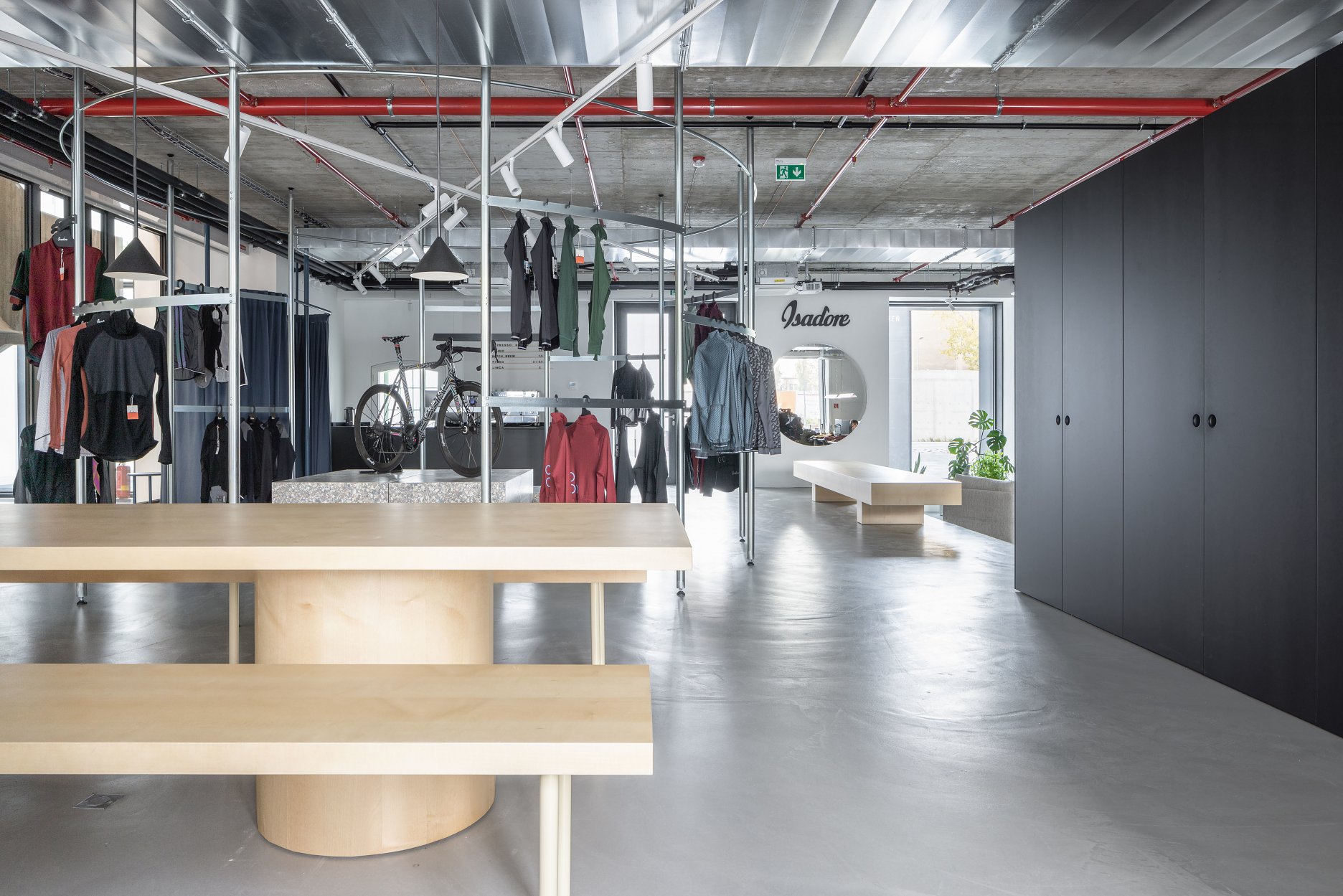 Interiér obchodu pre úspešnú značku cyklistického oblečenia Isadore Apparel založenú bratmi Velitsovcami je situovaný v novo vznikajúcom mestskom bloku na Mlynských Nivách. Súčasťou bloku je aj objekt bývalej pradiarne so silocentrálou, v parteri ktorej sa prevádzka nachádza.