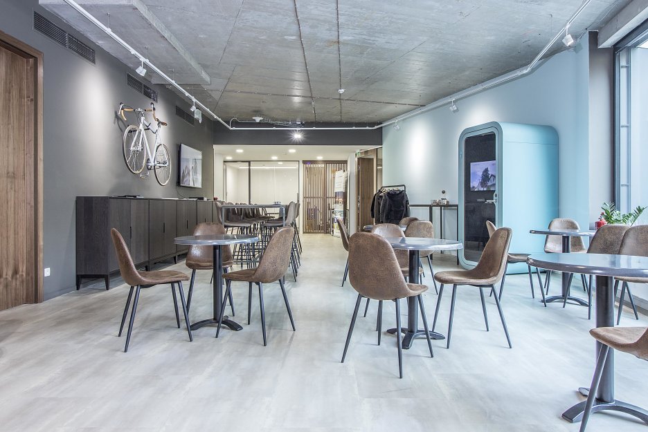 Uvoľnenú atmosféru podporuje aj priznaný betónový strop, vďaka ktorému je svetlná výška miestnosti až 3,6 metra. V celom priestore je inštalovaný flexibilný systém rampového osvetlenia, ktoré sa dokáže prispôsobiť akýmkoľvek potrebám. Môžu sa tu konať rôzne eventy, panelové diskusie, fotenie či prezentácie.