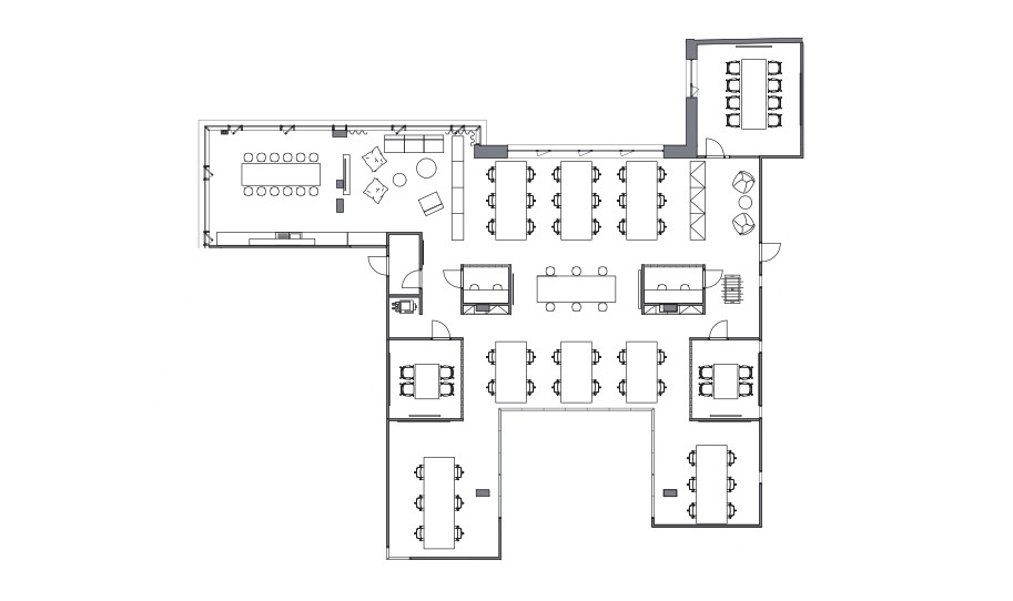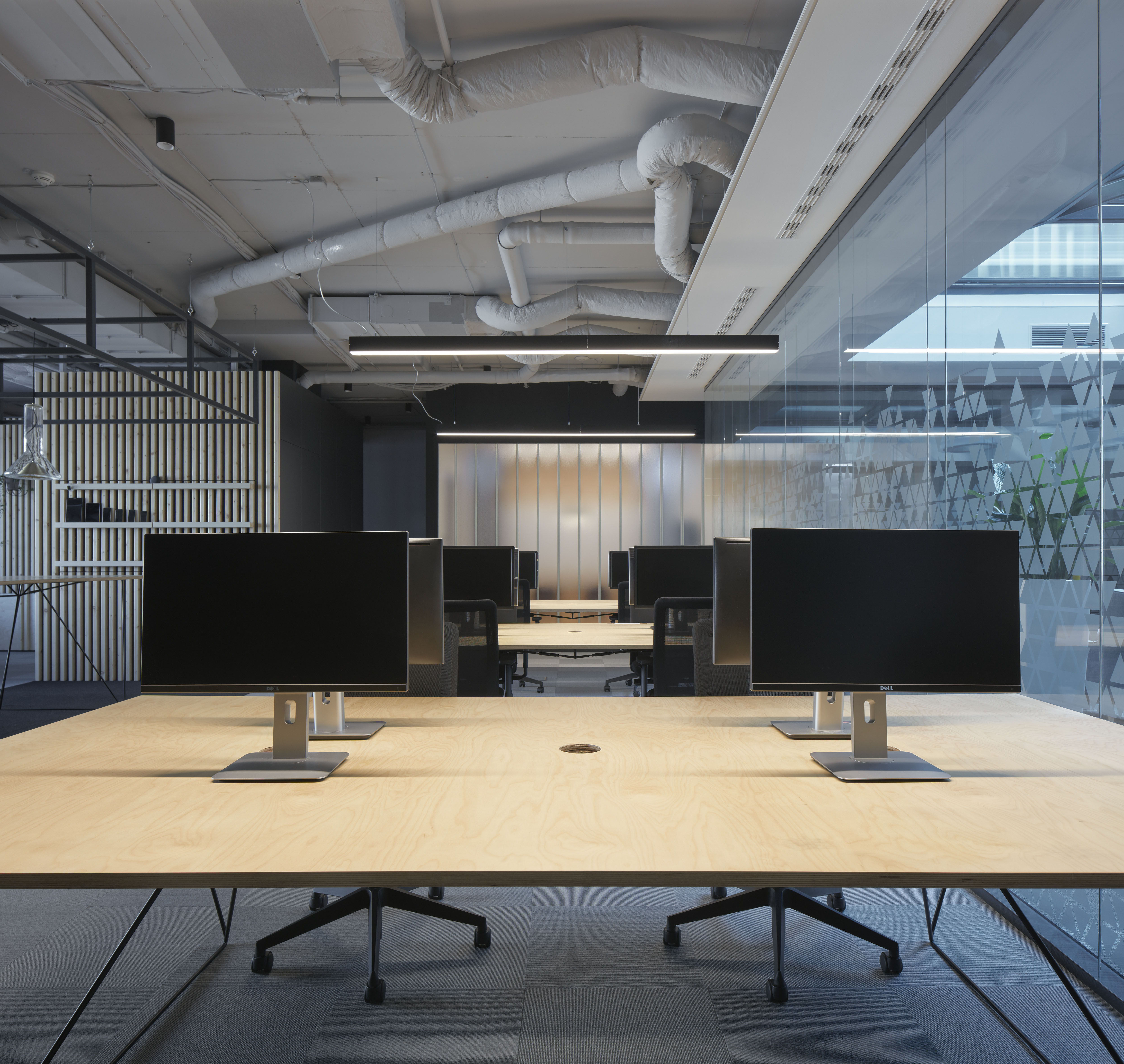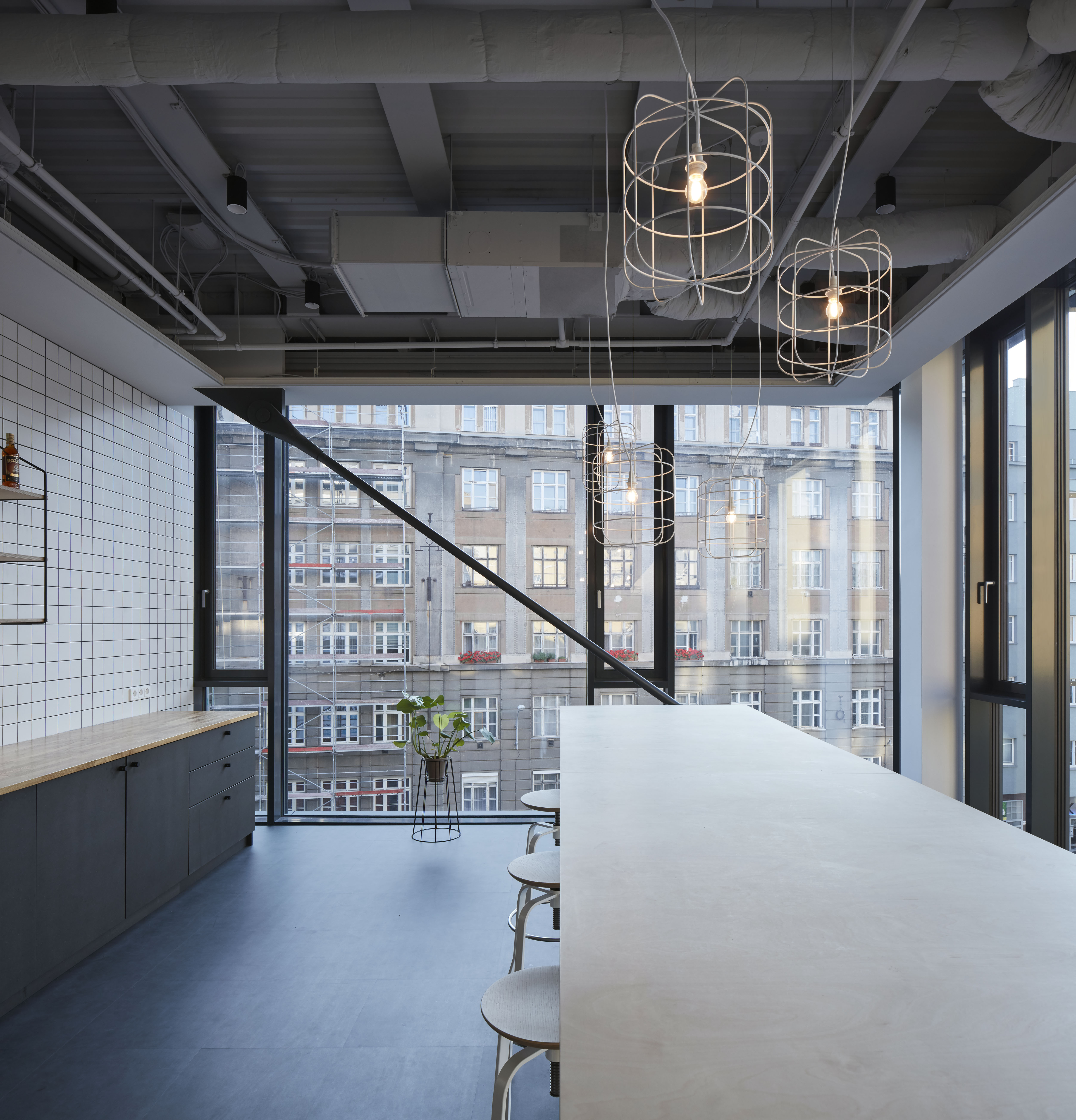 Dostatok priestoru umožnil realizáciu komplexne vybaveného kancelárskeho prostredia. Pracovisko je rozšírené o priestrannú komunitnú zónu, ktorú obsluhuje firemná kuchyňa. Ideálne miesto na organizovanie spoločenských akcií a eventov.