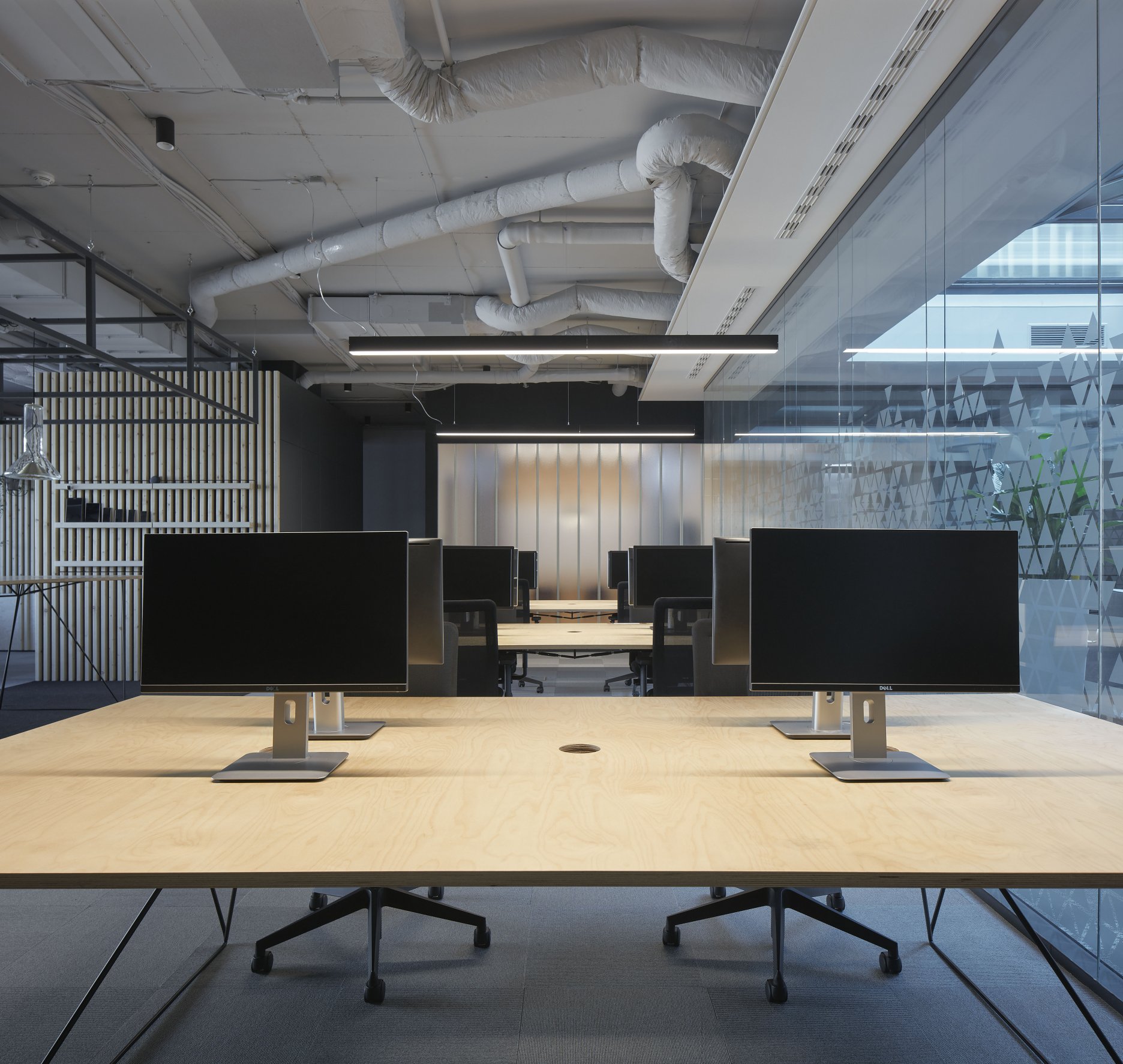 Pracovisko pre štyridsaťdva členný tím developerov, programátorov a dizajnérov navrhli architekti z ateliéru Perspektiv. Autori sa nesnažili zakryť pôvodnú funkciu priestoru. Naopak, pracovali s pozostatkami jeho svojráznej estetiky. Výrazná šikmá vzpera a oceľové tiahlo plynúce pozdĺž fasády naznačujú, že nešlo o štandardné kancelárske podlažie. Architekti dostali do rúk prázdny priestor, ktorý umožňoval voľný a otvorený prístup k riešeniu dispozície.