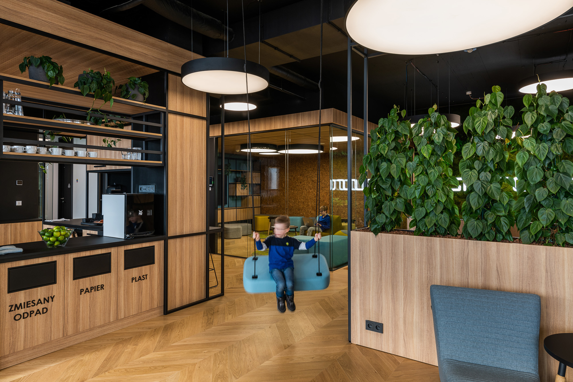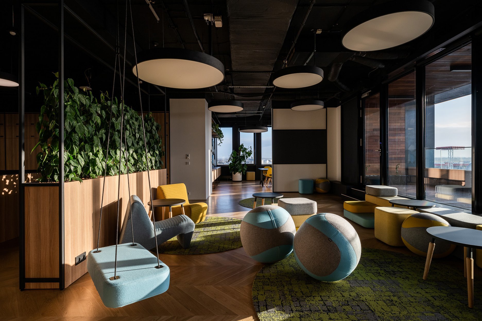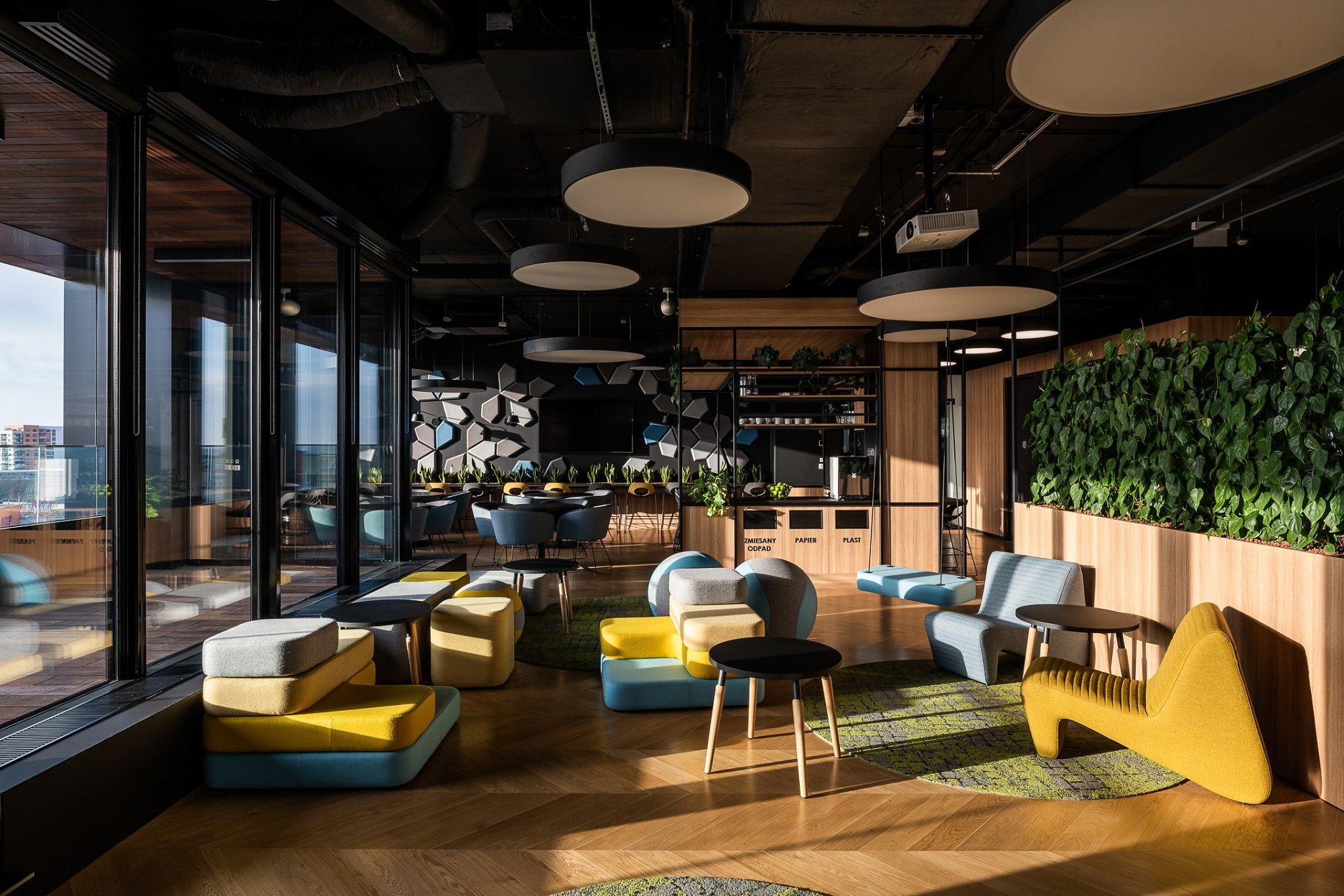 Koncepcia dispozície je postavená na členení priestoru podľa jednotlivých typov práce, pokrývajúcich všetky potreby jednotlivcov aj tímov, ale aj rôzne typy pováh v tíme a samozrejme činností, potrebných pre vývoj softvéru, ktoré sa prelínajú s priestormi určenými pre psychický alebo tiež fyzický relax. Zamestnanci tak počas pracovnej doby migrujú (pomyselnou) "kancelárskou krajinou". Uzatvorené kancelárie, "call roomy" rôznych veľkosti (1 až 4 miest) pre sústredenú prácu alebo citlivú komunikáciu, video hovory ale aj menšie brainstormingy sa striedajú s multimediálne vybavenými zasadačkami rôznych veľkostí či tímovými "open mind" pre operatívne alebo projektové pracovné stretnutia s kolegami alebo obchodné jednania s biznis partnermi.