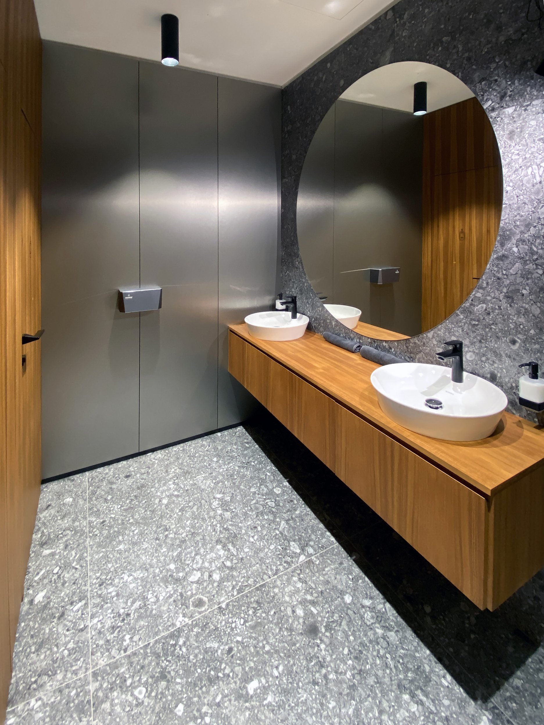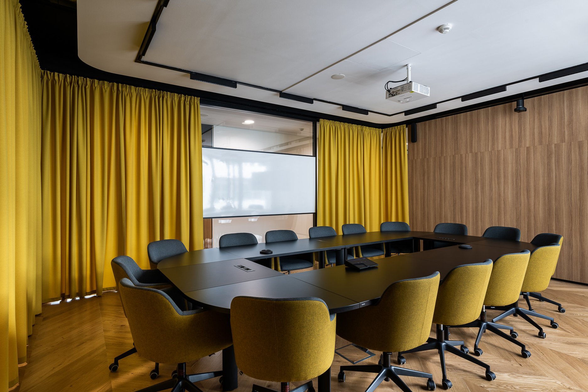 Južné krídlo parteru administratívnej budovy GBC V predstavuje integrálnu súčasť firemných priestorov spoločnosti Asseco CE, v ktorej je situovaná variabilná interaktívna zóna, koncipovaná ako agilné pracovisko. Jej hlavnú sálu je možné prepojiť s jednou alebo oboma zasadačkami vďaka skladacím priečkam. Bez stavebných zásahov, dodatočného personálu a v krátkom čase tak vzniknú otvorené priestory pre konferencie, školenia, prednášky či firemné podujatia a prezentácie podporujúce na jednej strane kreativitu a spoluprácu, s modulárnym nábytkom, ale aj s tichými samostatnými pracovnými zónami v prípade potreby. K dispozícii je kuchyňa so zázemím pre catering a toalety pre návštevníkov.