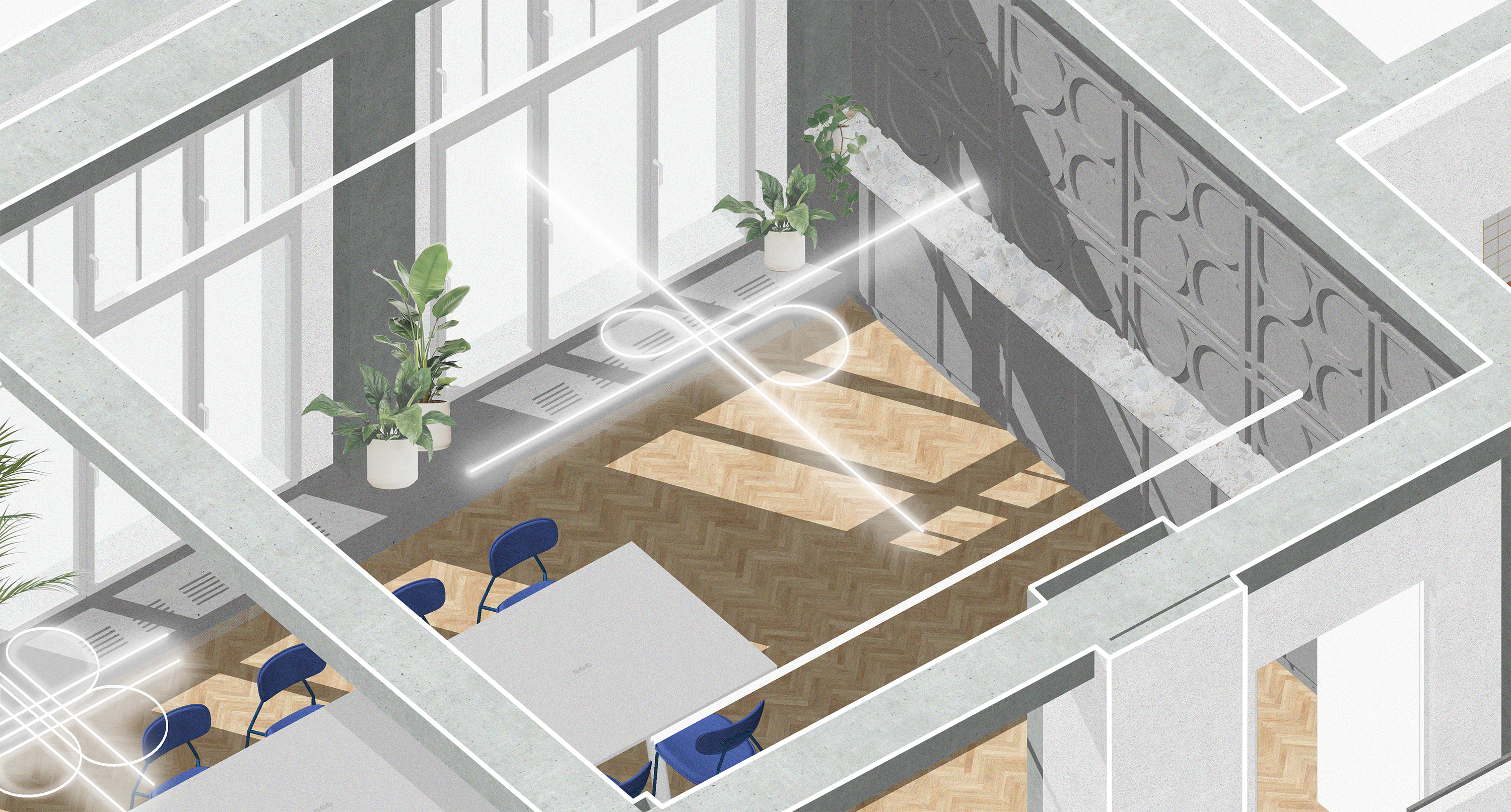 Zásadným východiskom návrhu, ktorý vo všetkých fázach spracoval ateliér Studio COSMO, bol rešpekt k architektonickému charakteru budovy. Rekonštruované priestory boli cielene očistené od nánosov necitlivých zásahov. Odstránené boli vstavané priečky, podhľady, sokle či povrchom vedená kabeláž. Interiér sa vrátil k svojmu pôvodnému tvarosloviu a materialite, pričom riešenie necháva vyniknúť pôvodný betónový skelet. Dôležitá je tiež práca s prirodzeným svetlom a prírodnými materiálmi.
