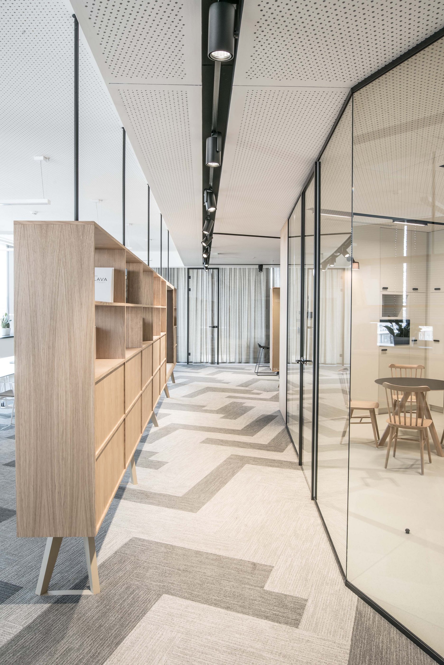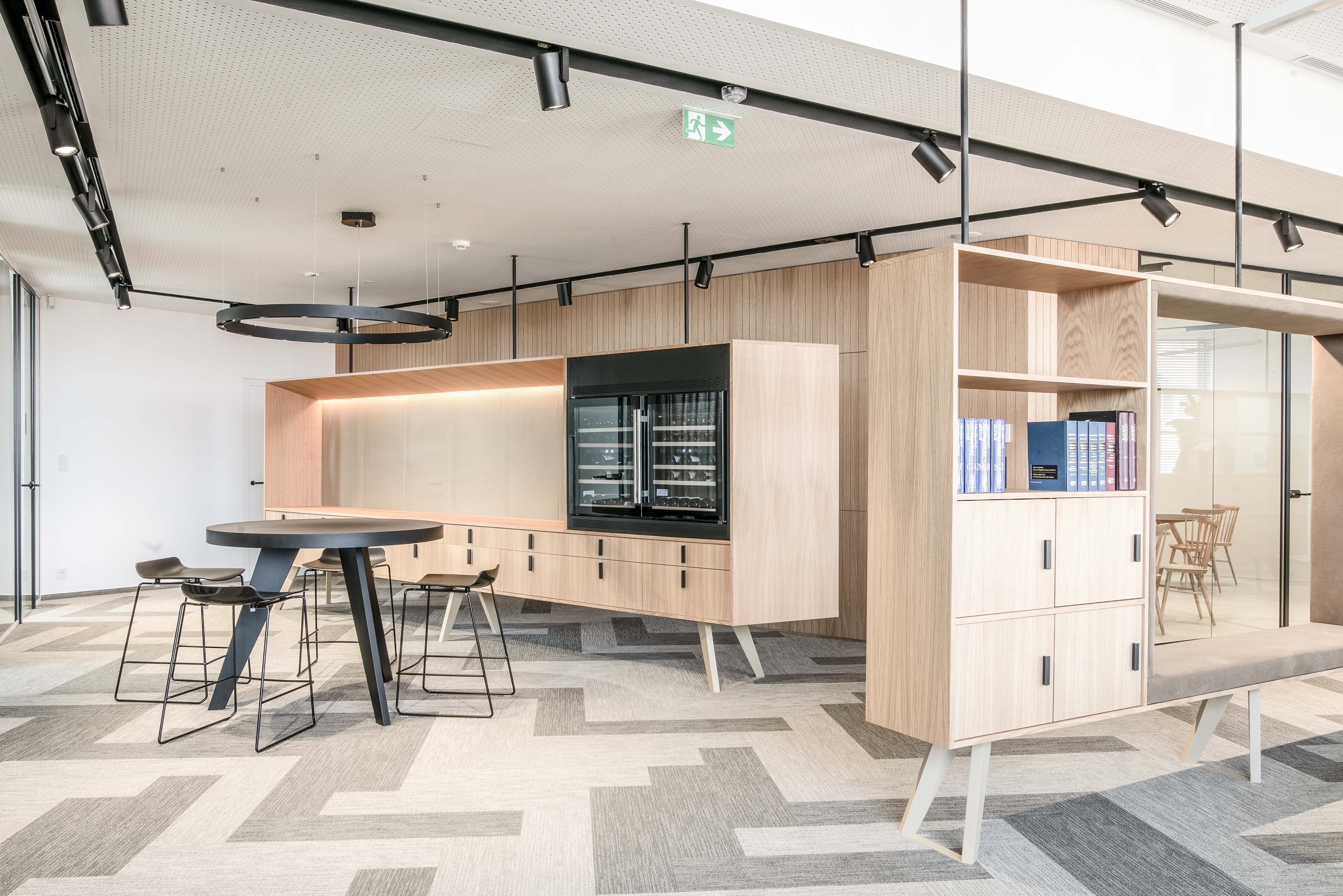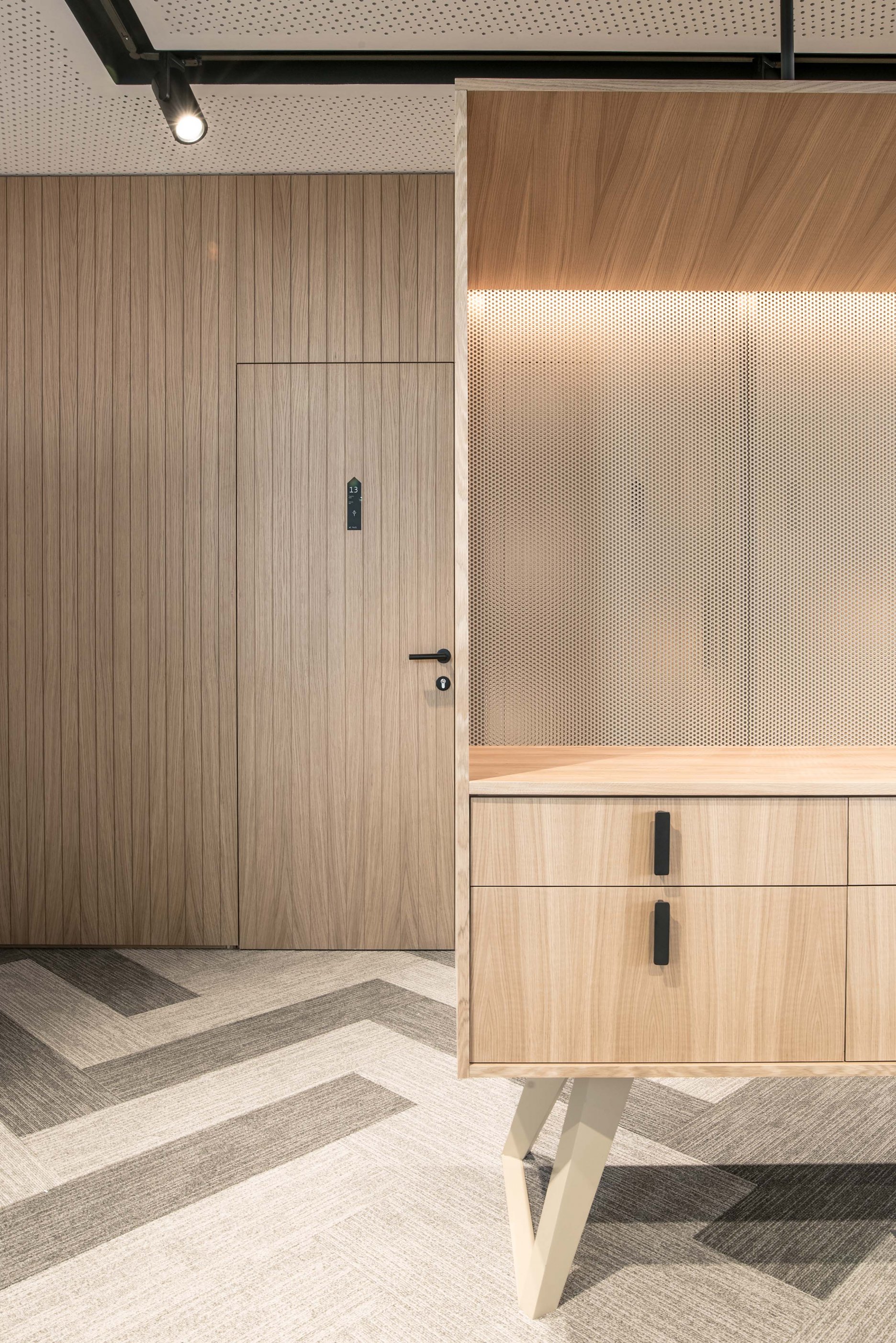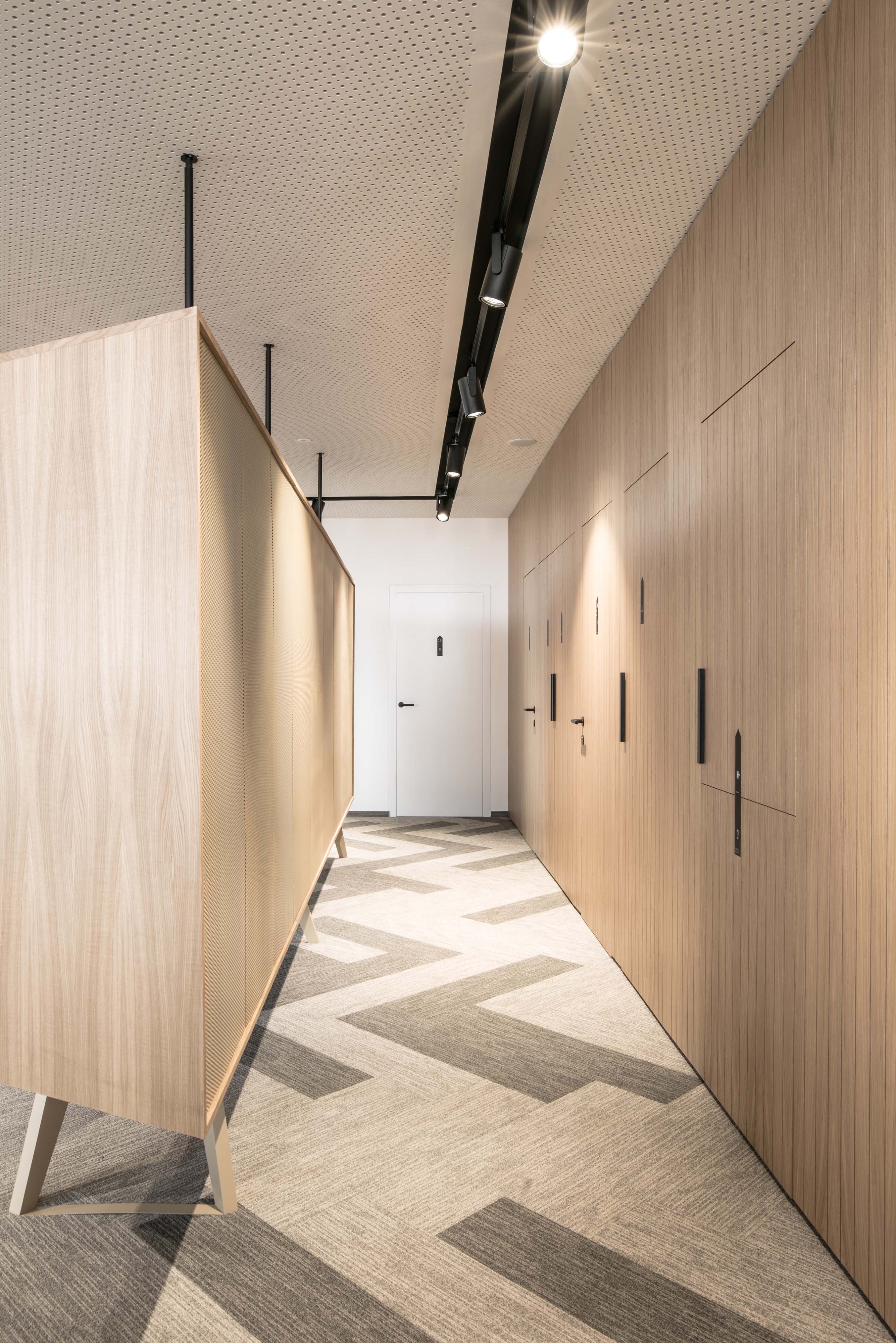 Charakteristická vlastnosť na mieru vyrábaných stolárskych komponentov je integrácia funkcií a definovanie samotného priestoru z prevádzkového a pocitového hľadiska. Použitá materiálová skladba a monochromatická farebnosť je predpokladom neutrálneho a príjemného pôsobenia na užívateľa priestoru a nadčasového vzhľadu do budúcnosti. Multifunkčné využitie chodbových priestorov (posedenie, občerstvenie,...) povyšuje úroveň priestoru vhodnú na spoločenskú aktivitu.
